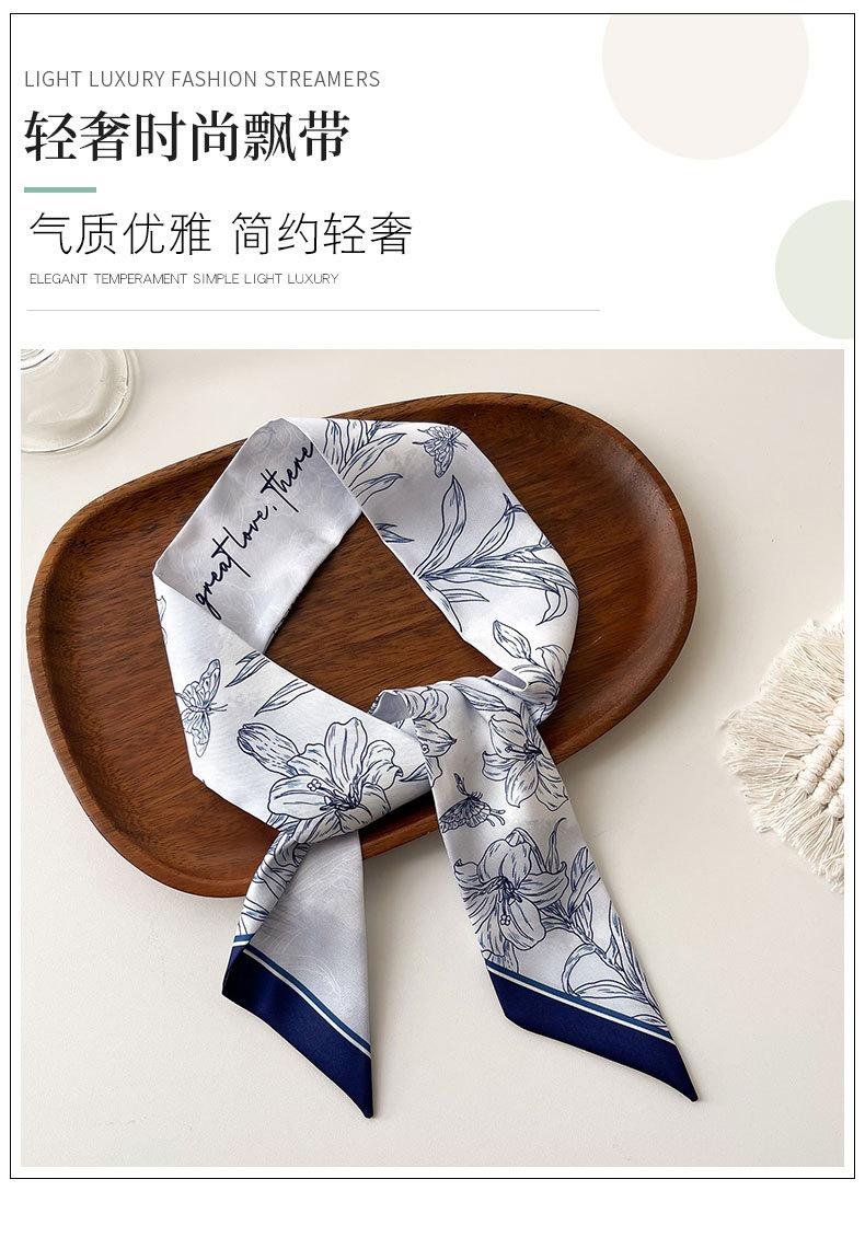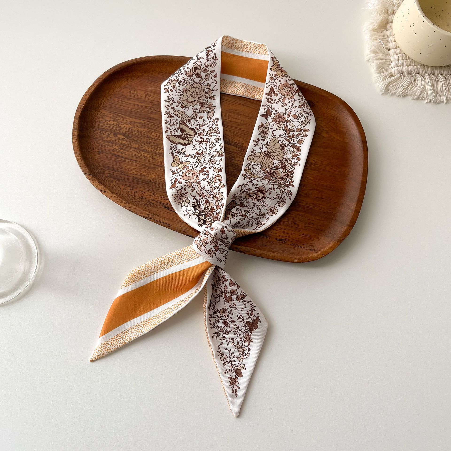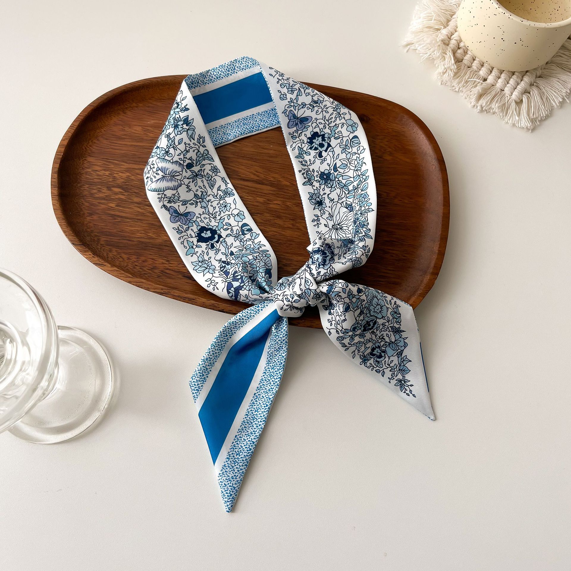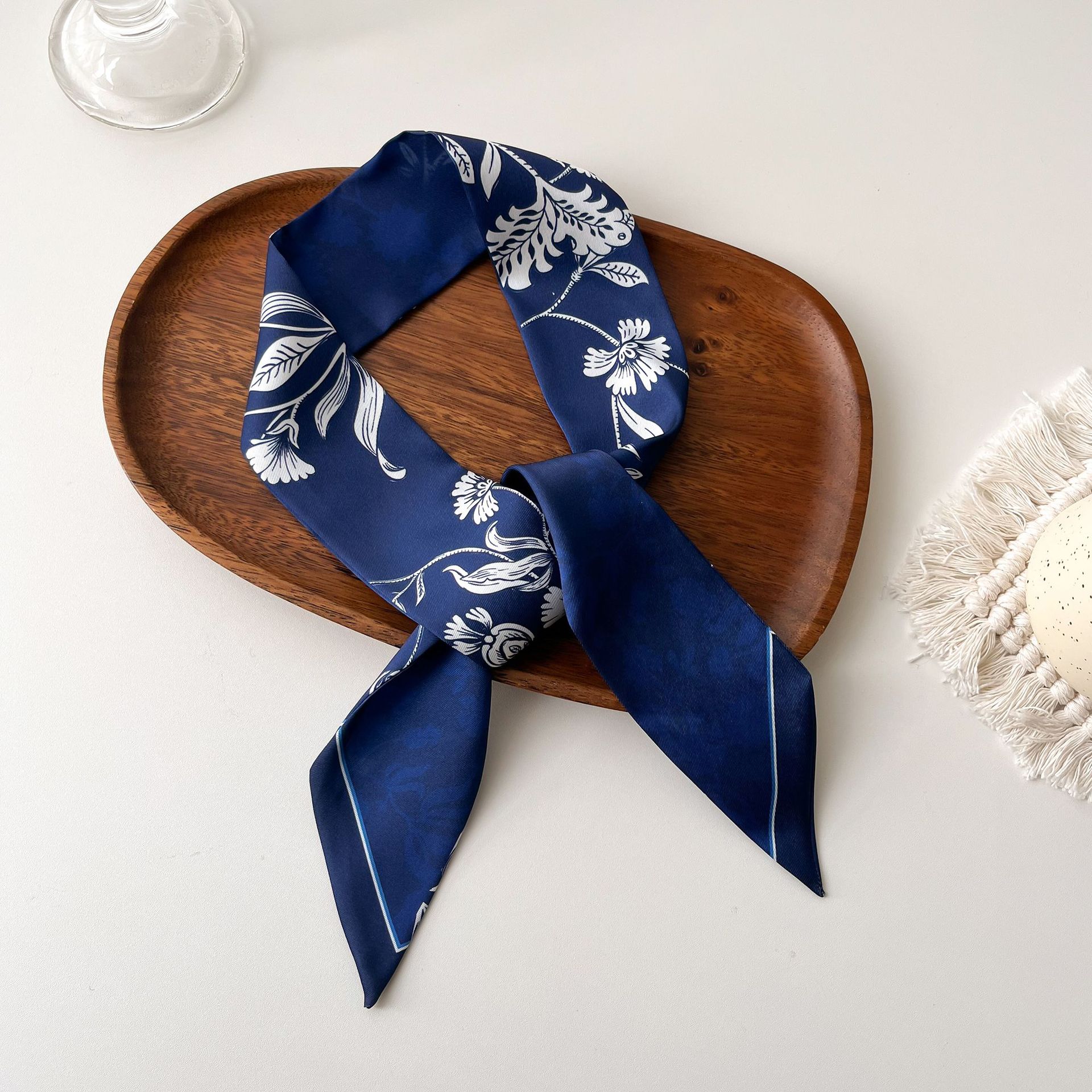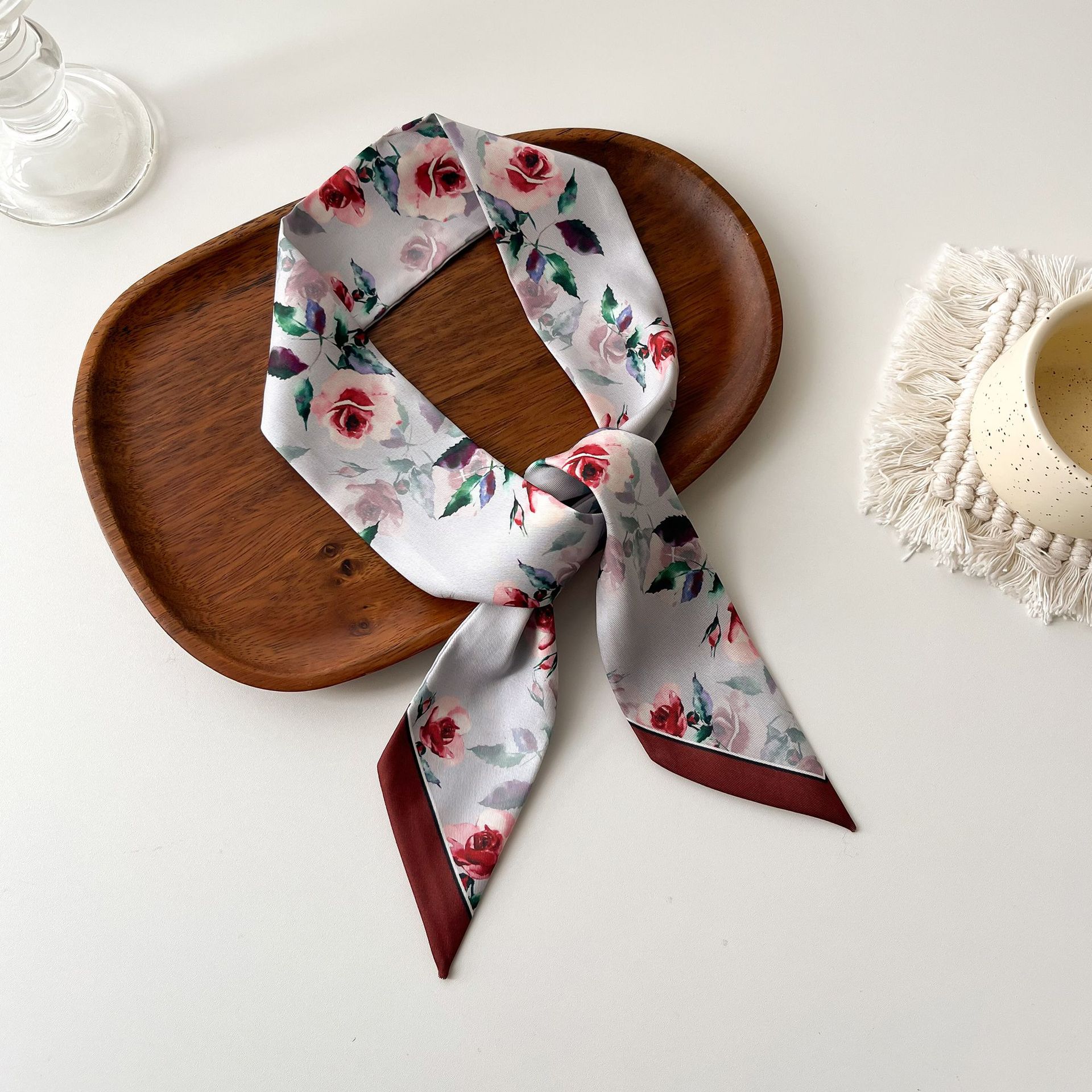 Pañuelo de seda pequeño estilo francés, banda para el pelo, lazo largo, estilo coreano, vintage, combinable, decorativo, para mujer.