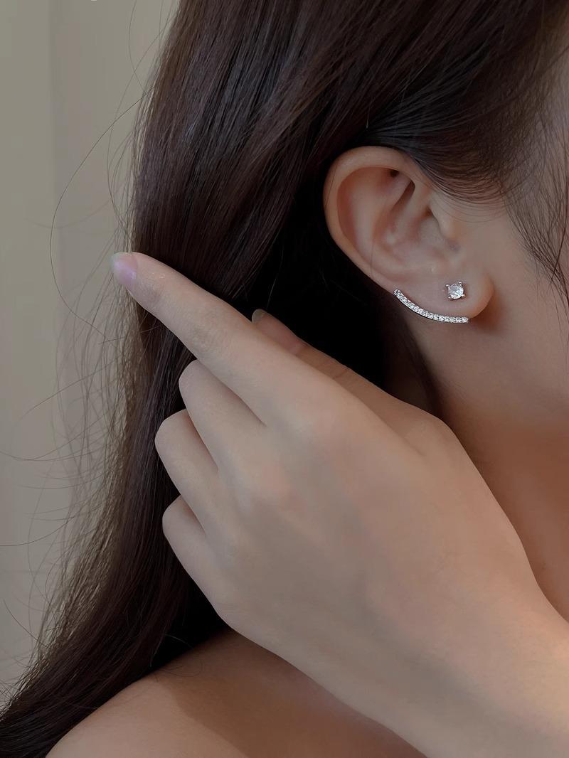 Unos Pendientes de Circonita Colgantes Traseros de Dos Usos para Mujer, Nuevo Estilo 2025, Pendientes de Nicho Únicos, Pendientes Elegantes y de Alta Gama