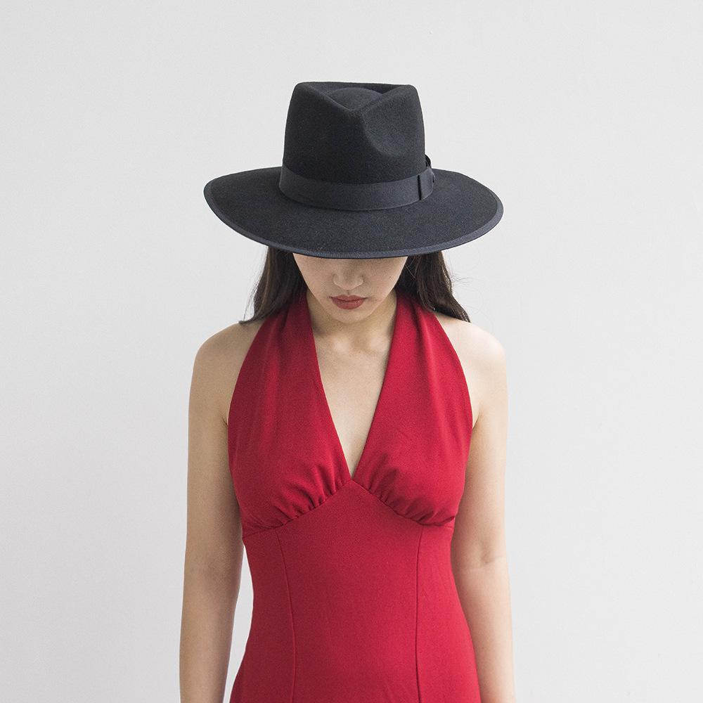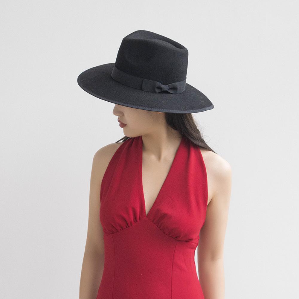 Sombrero de jazz de lana con corona envolvente y lazo informal de nueva moda para otoño e invierno, sombrero rojo de red cálido para compras para mujer