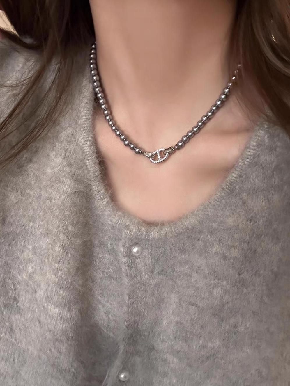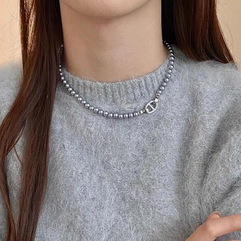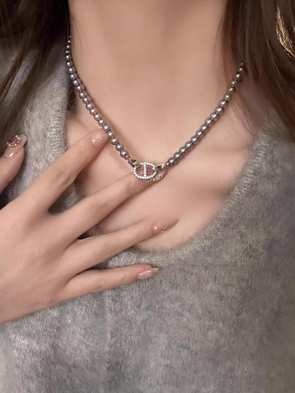 Collar de perlas con costura de nariz de cerdo para mujer, diseño nicho de lujo ligero, exquisita cadena para clavícula, moda versátil, cadena para suéter