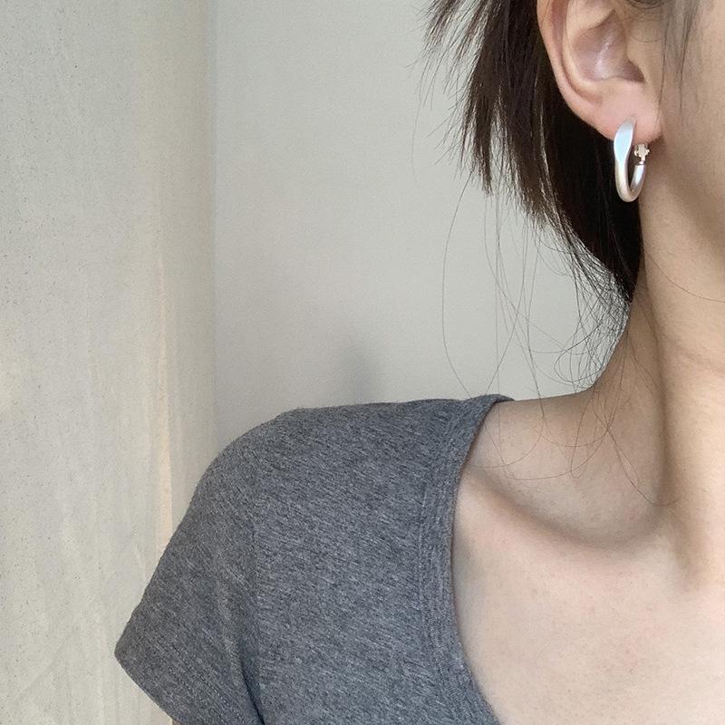 Compra Pendientes minimalistas de plata S925 con forma de C de Corea del Sur, estilo frío, con hebilla circular de gran sentido, para mujer 454 al por mayor en Joom.pro