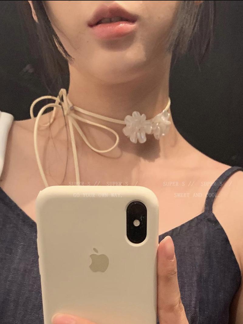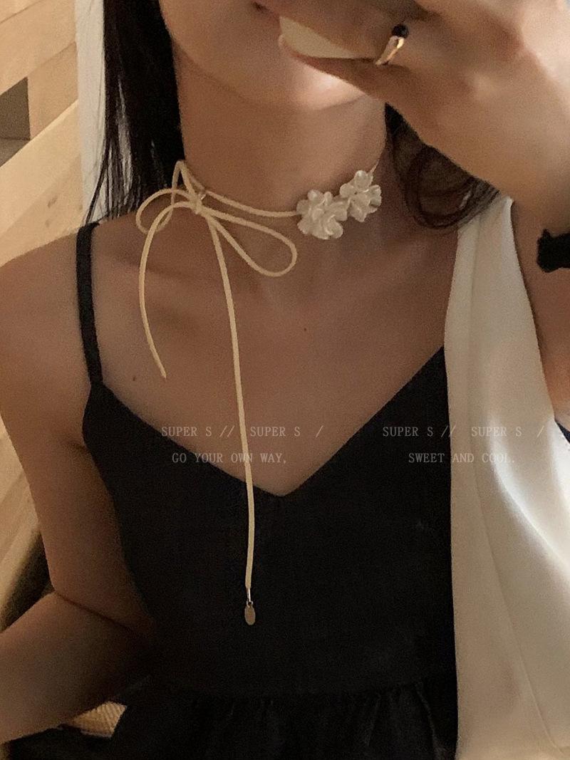 Collar con correa de flor de camelia, collar con cinta para mujer, accesorios para el cuello Mori, correa para el cuello, gargantilla, cadena