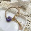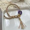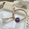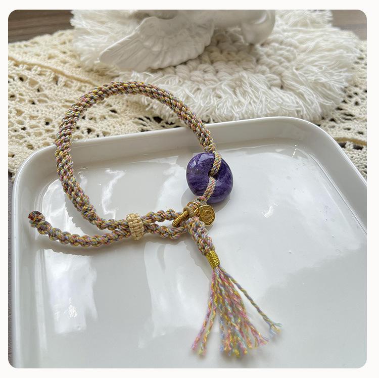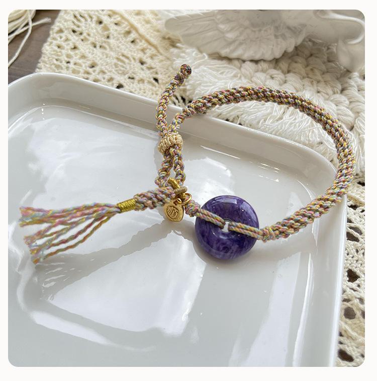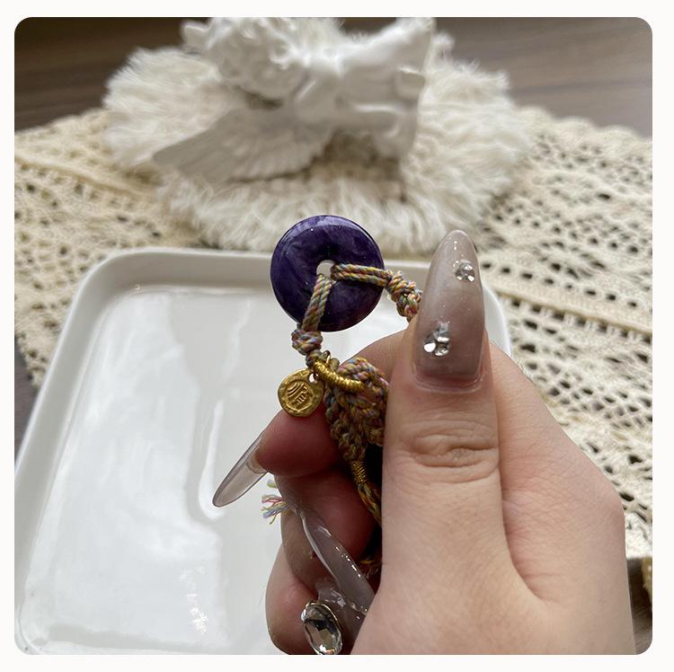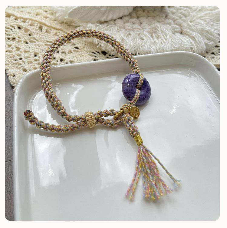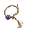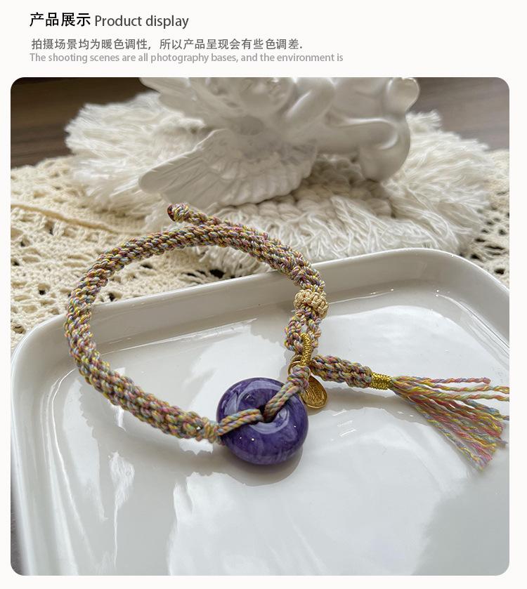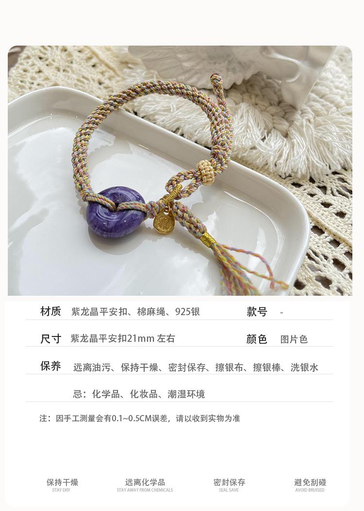 Qiaoen Estilo Chino Nuevo Tejido a Mano Algodón y Cuerda de Cáñamo para Mujer Púrpura Oscuro Amatista Hebilla Ping An Plata S925 Accesorios Marca Shun