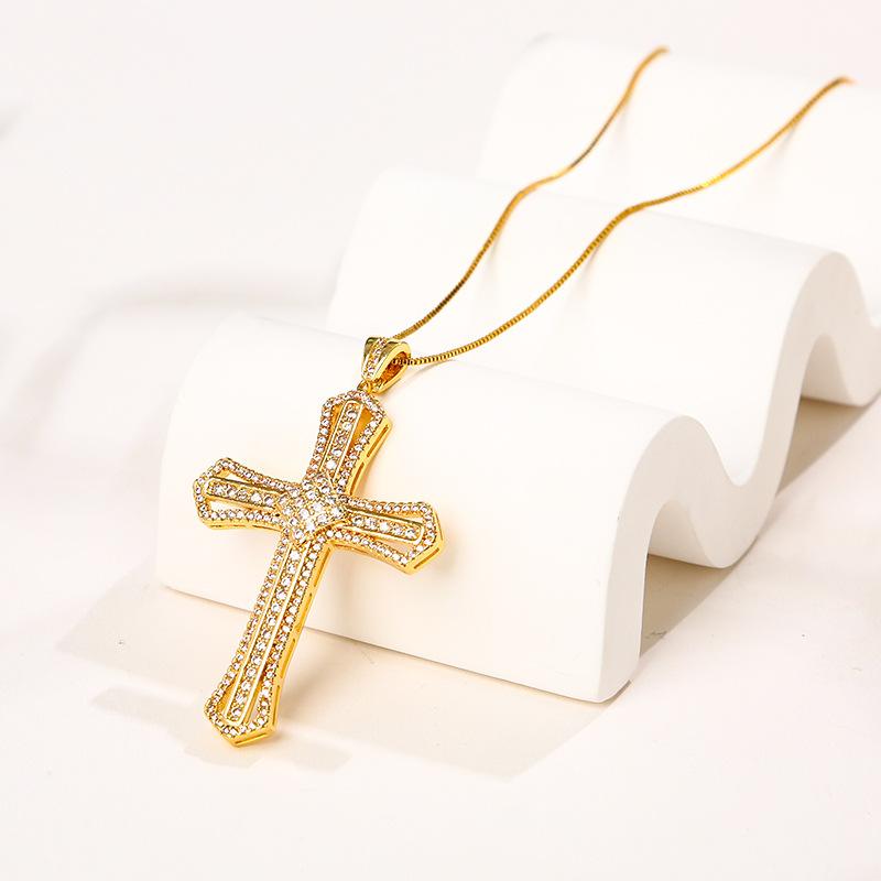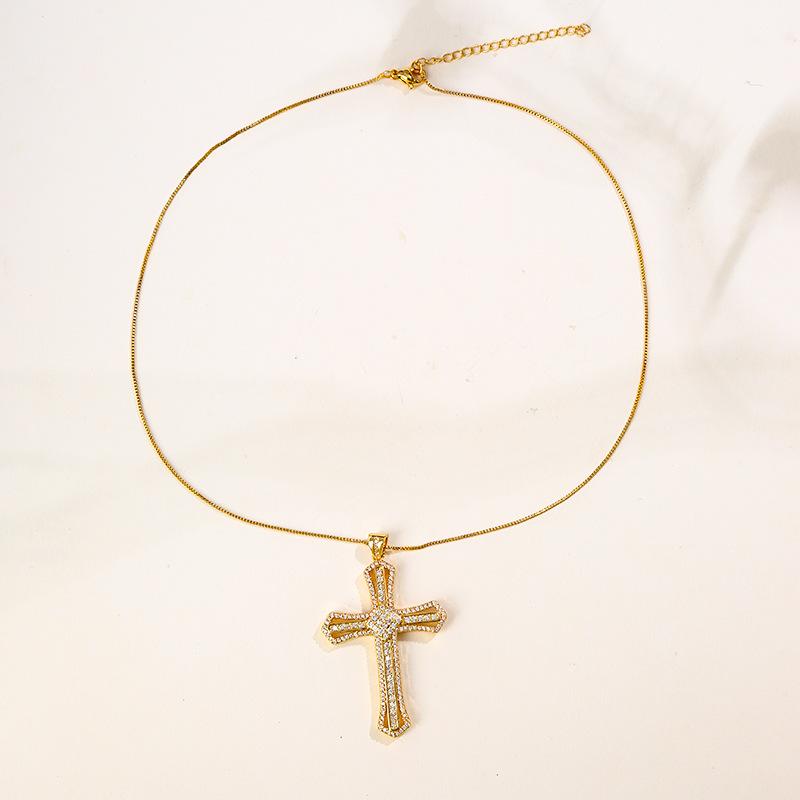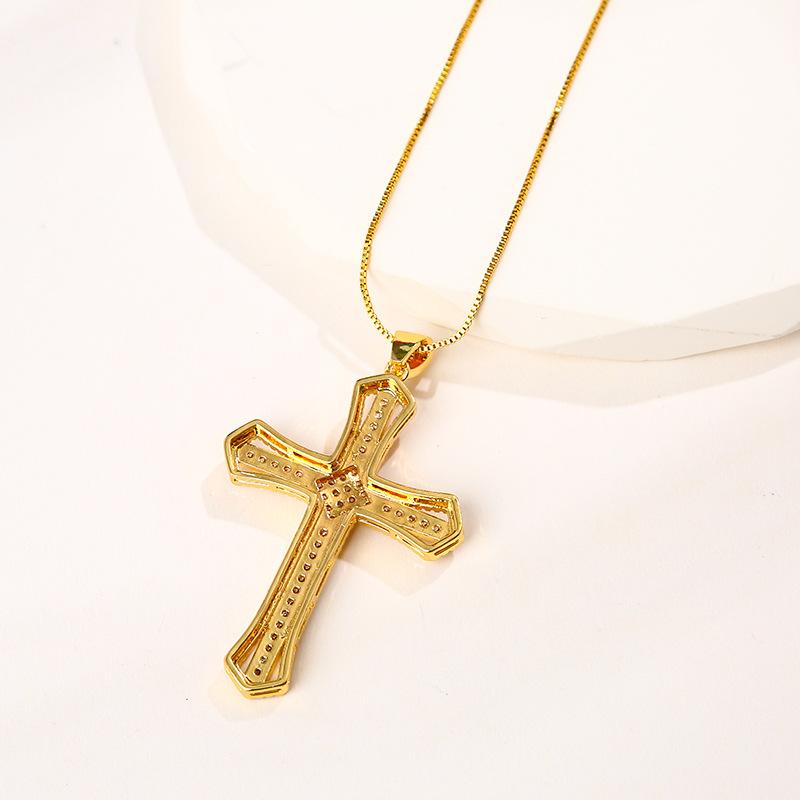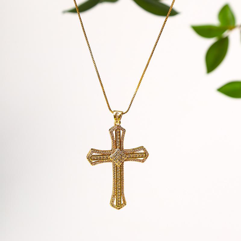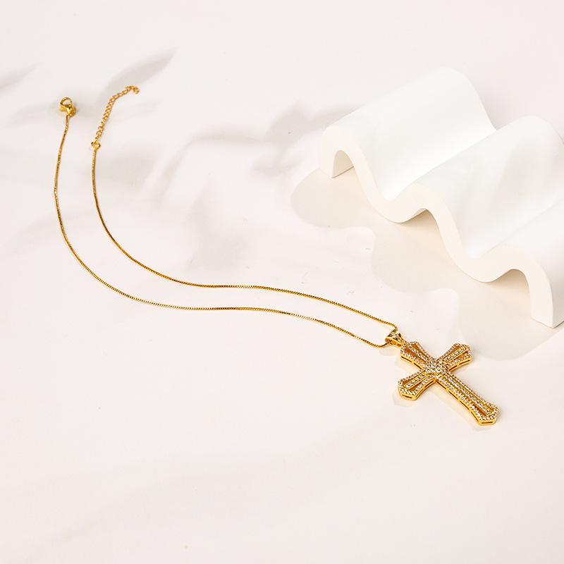 Compra Nuevo collar de temperamento versátil con colgante de cruz retro francés transfronterizo de cobre de alto color con incrustaciones de circonita para mujer al por mayor en Joom.pro