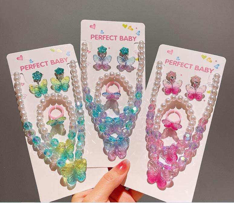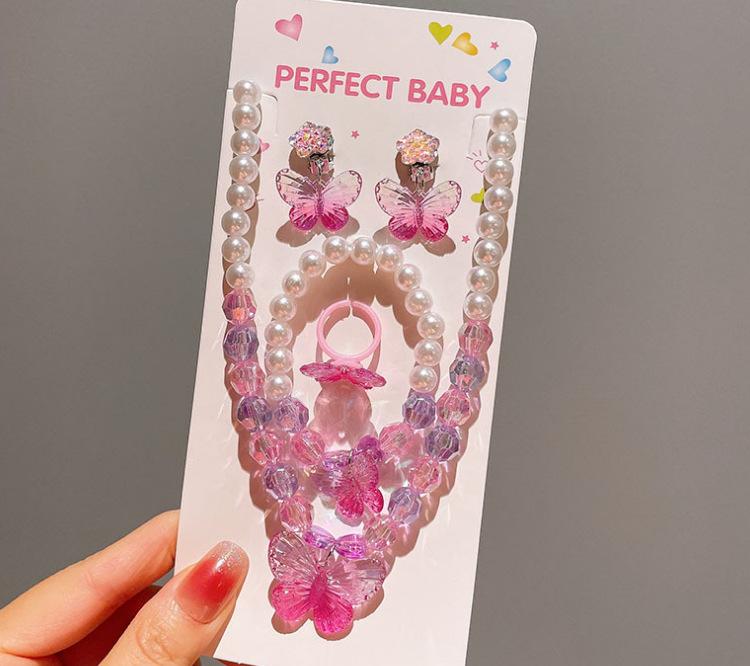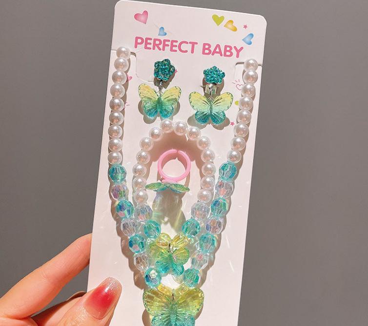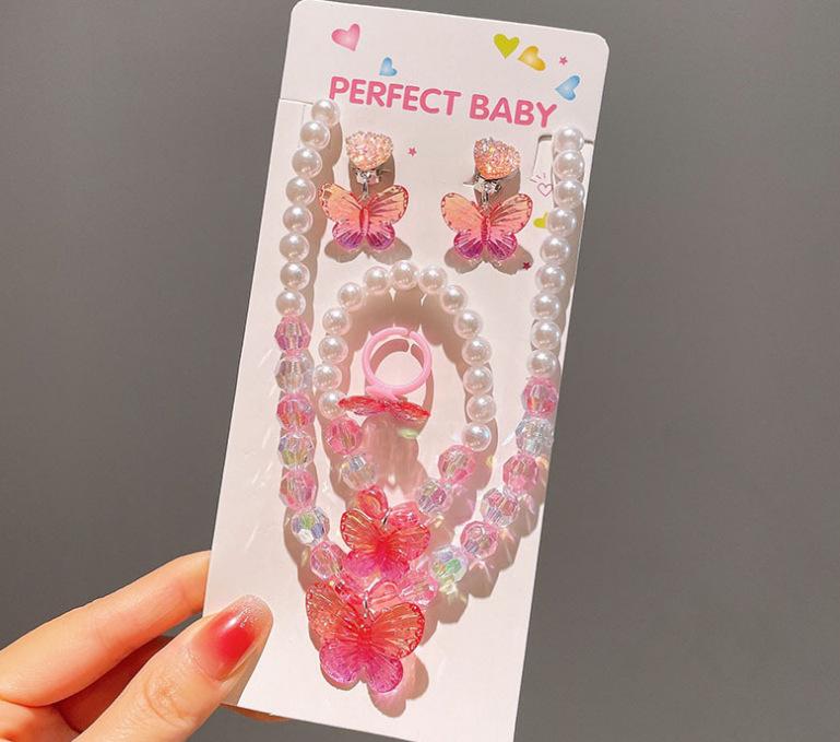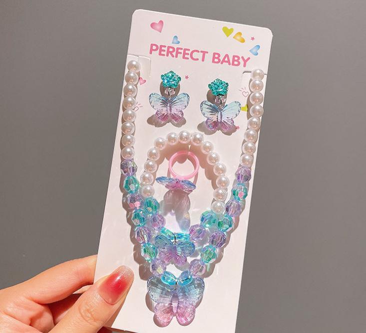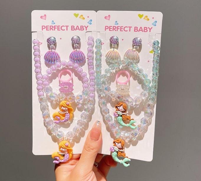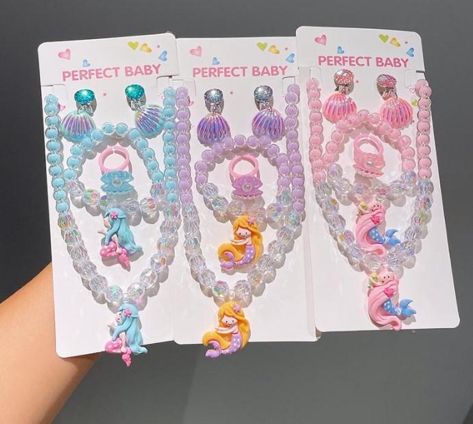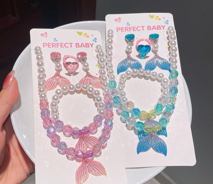 Collar de cuentas con dibujos animados para niños, accesorios, anillo, pulsera, clip para las orejas, traje de princesa sirena, joyería