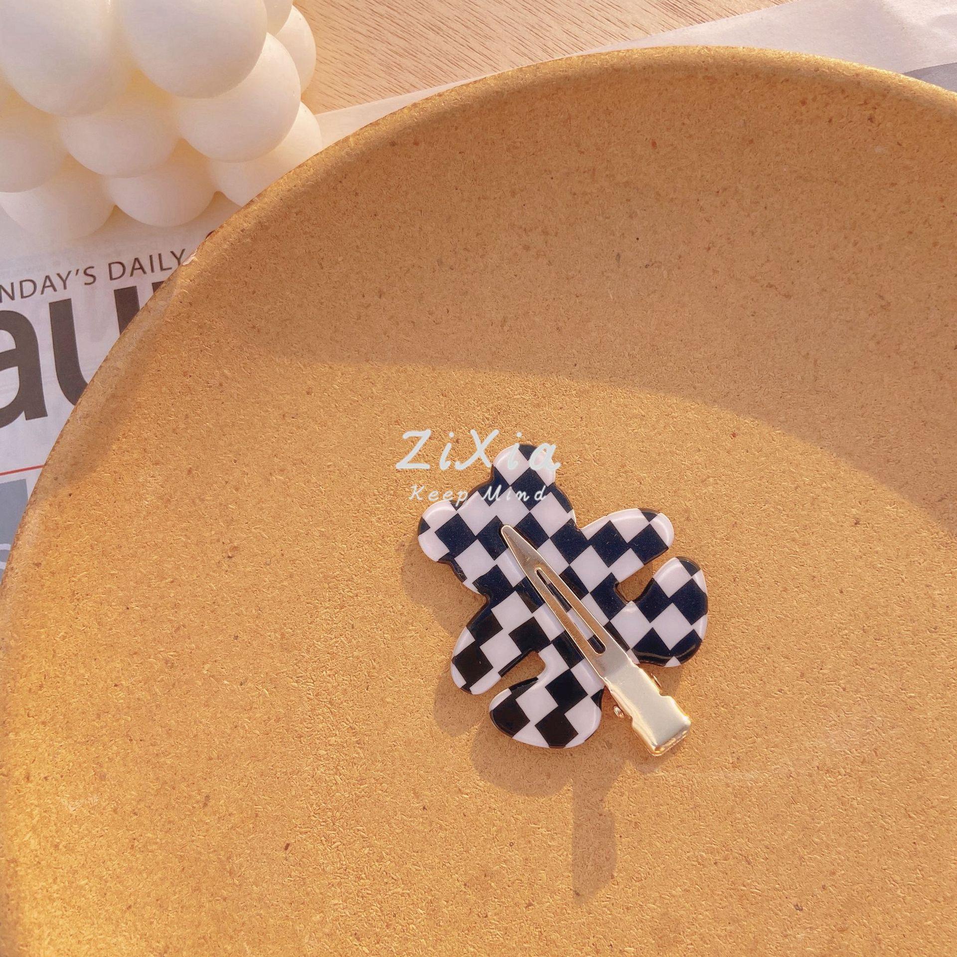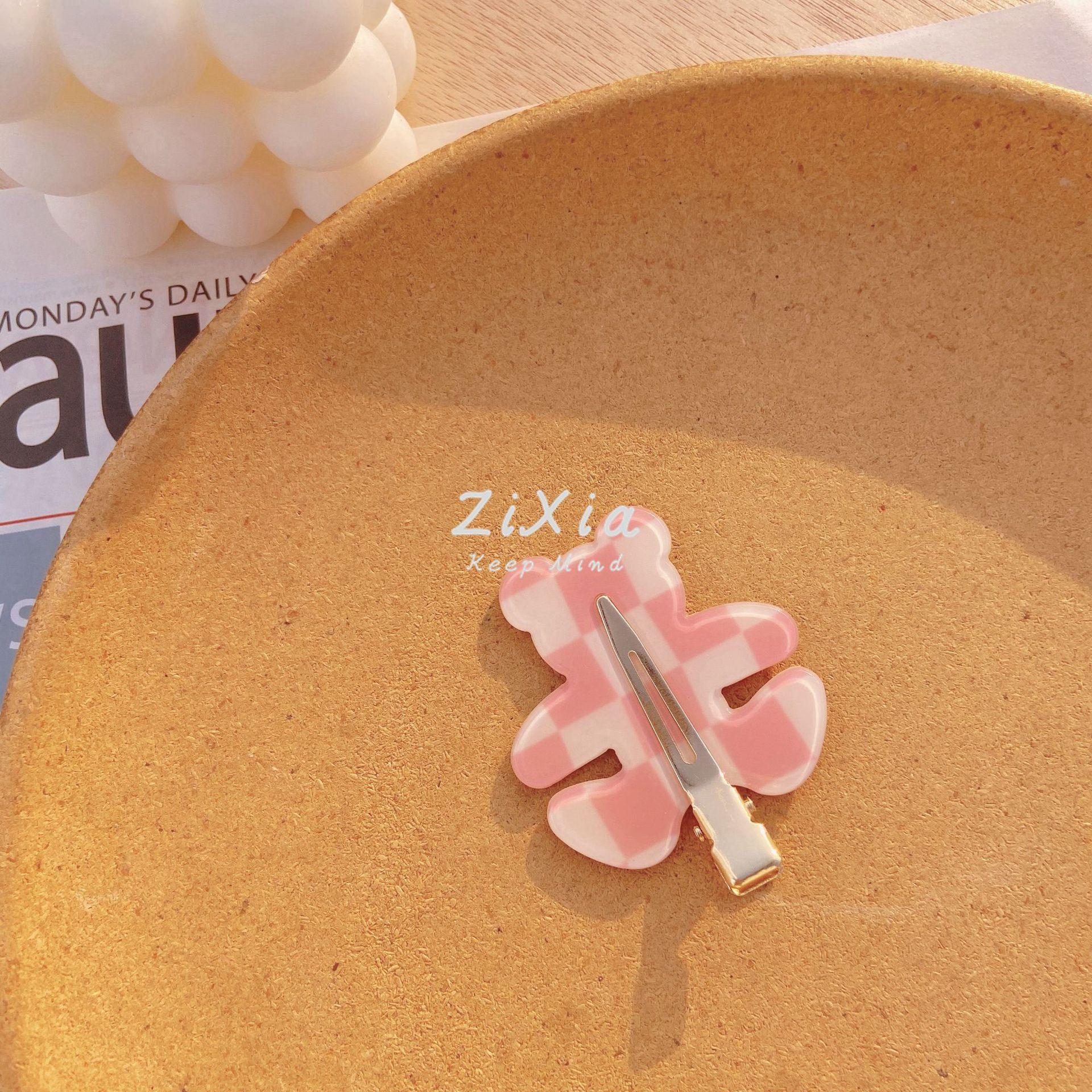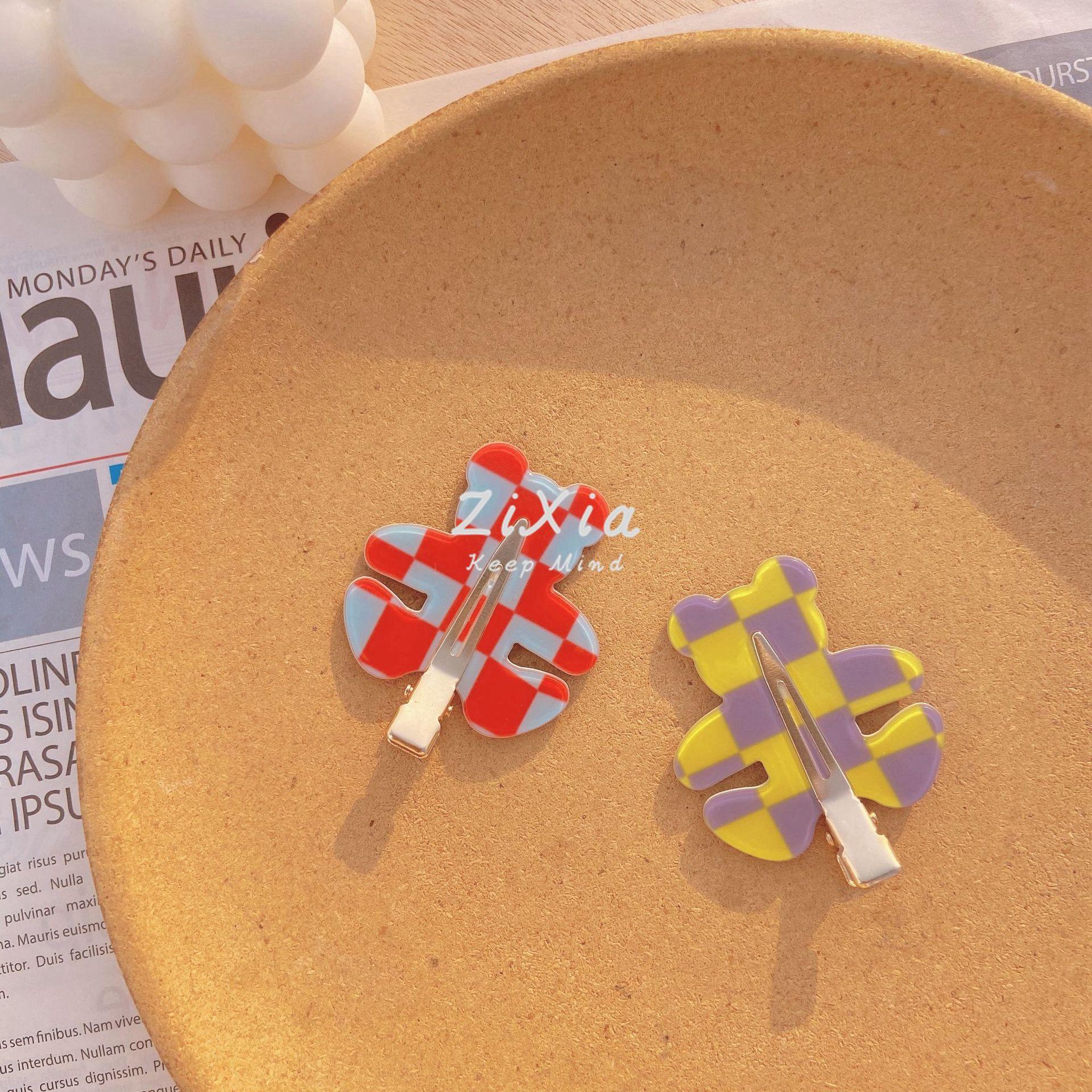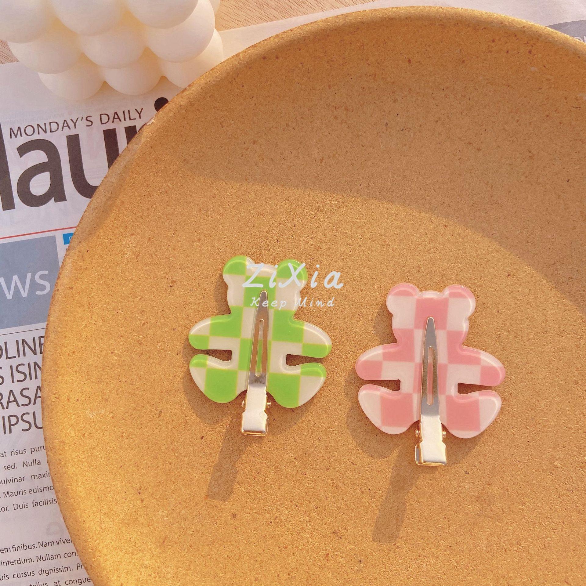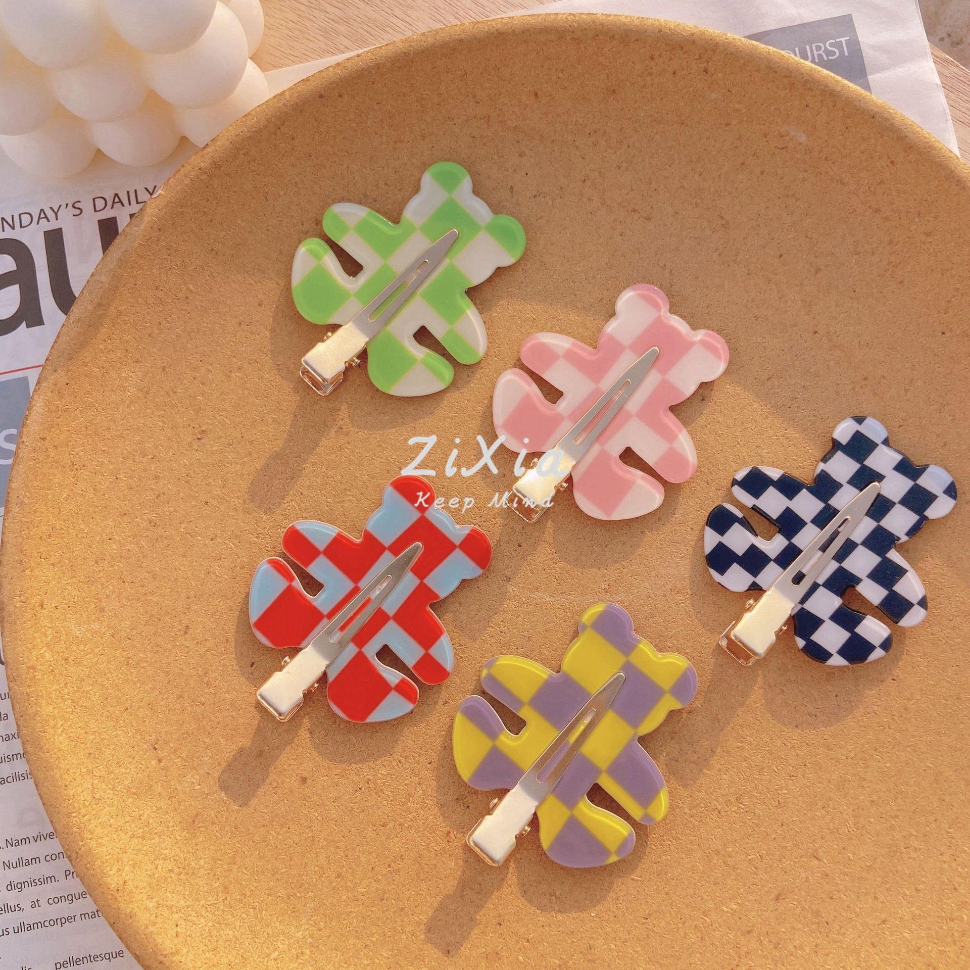 Horquilla de cuadros popular con diseño de oso sin costuras, pinza para flequillo de cuadros de colores, pinza para maquillaje de chica dulce, pinza lateral