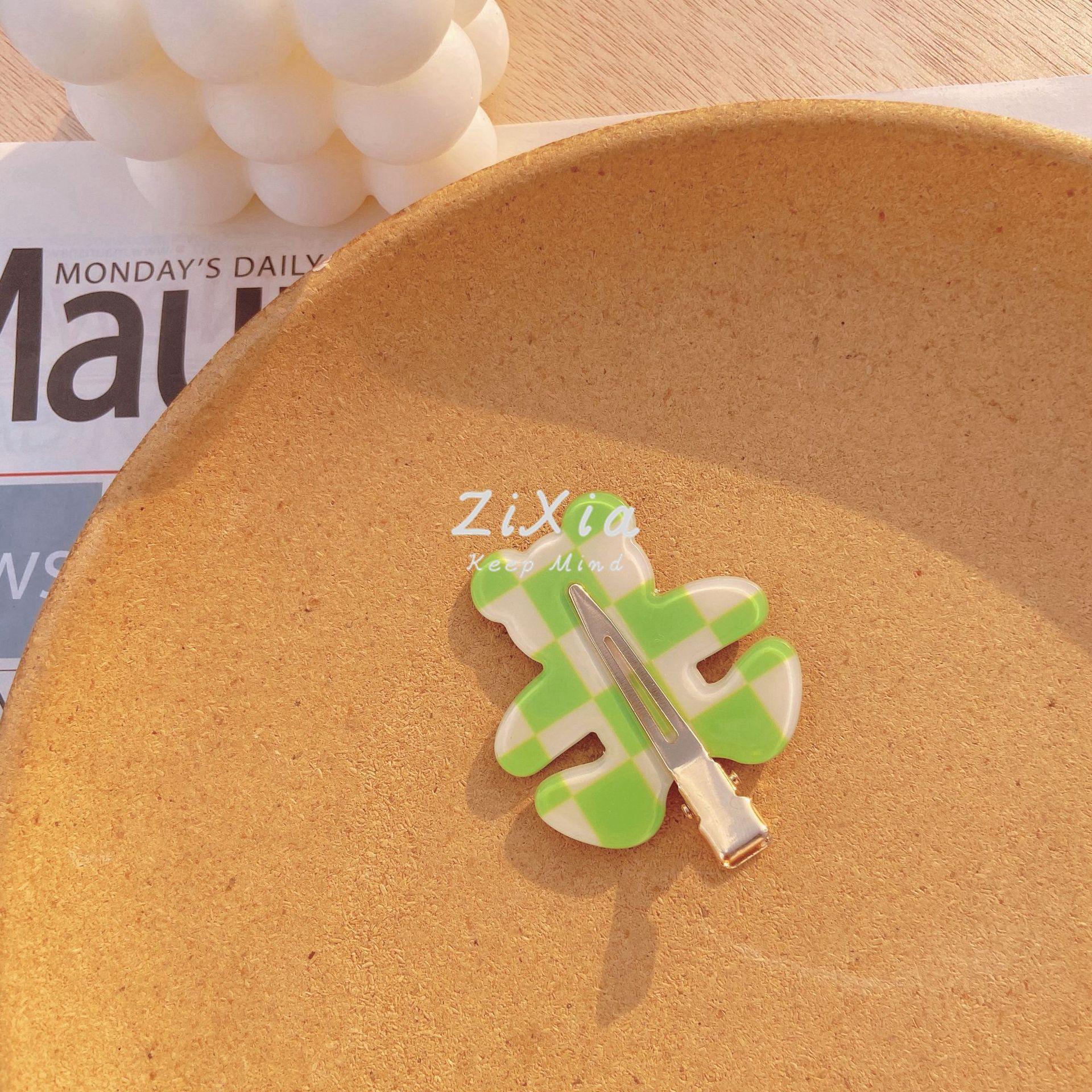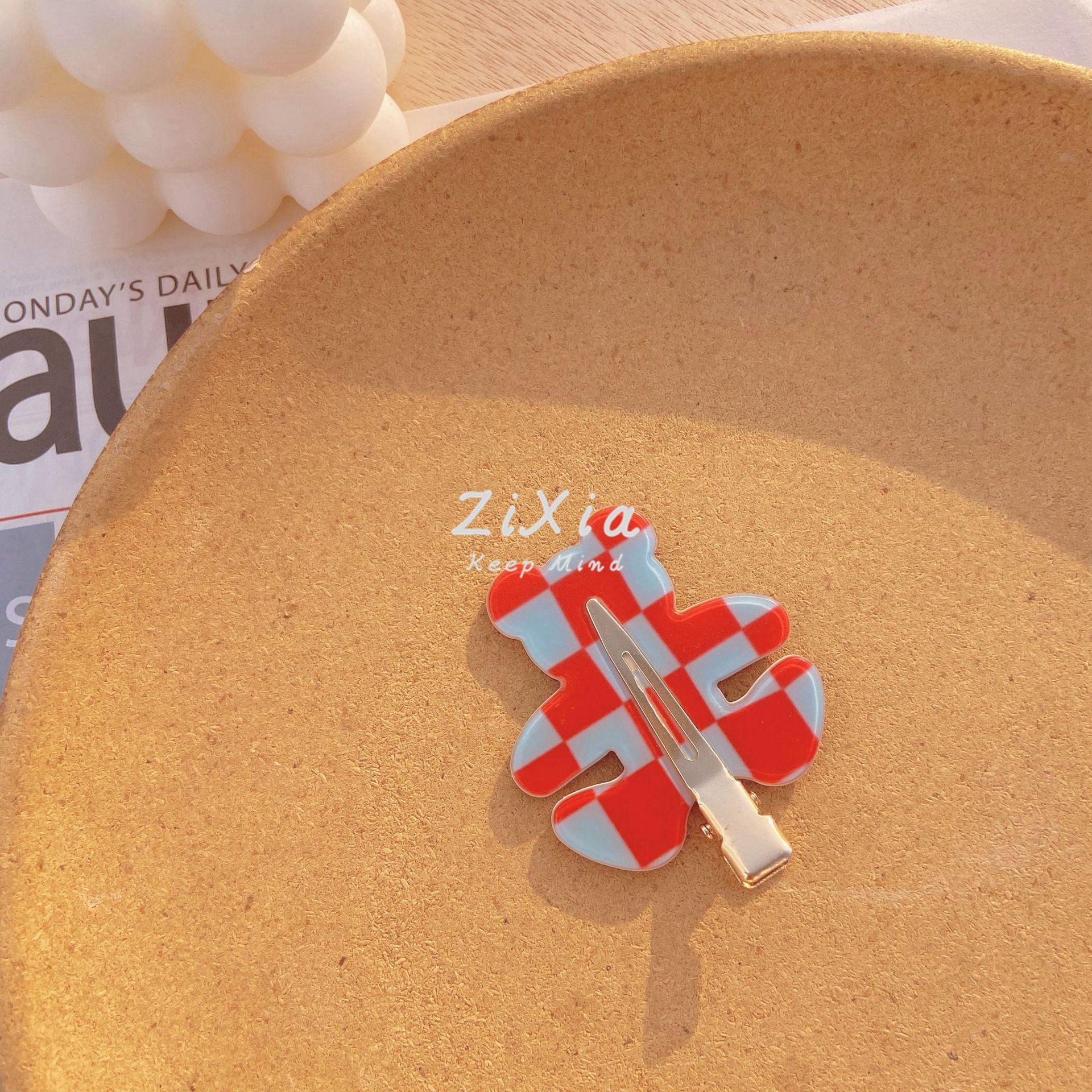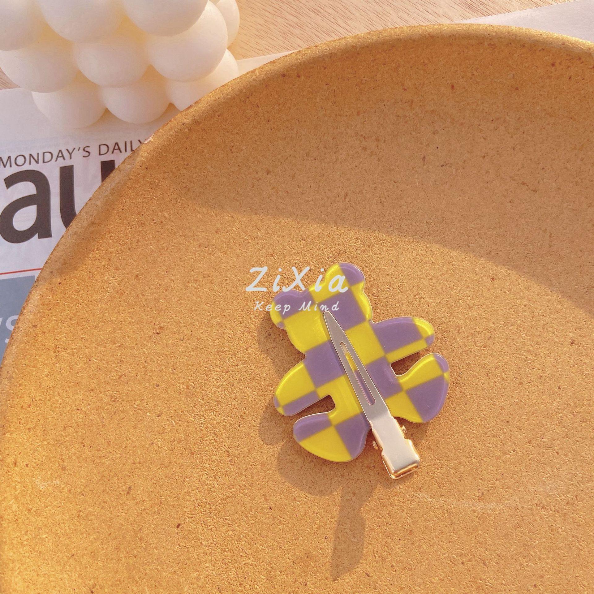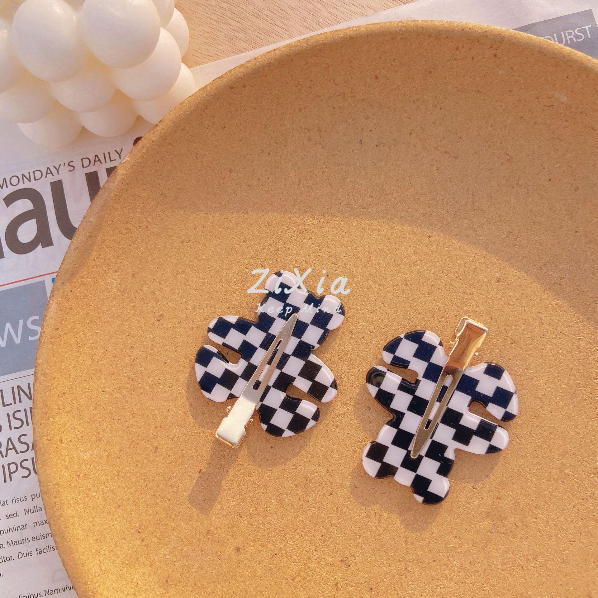 Horquilla de cuadros popular con diseño de oso sin costuras, pinza para flequillo de cuadros de colores, pinza para maquillaje de chica dulce, pinza lateral