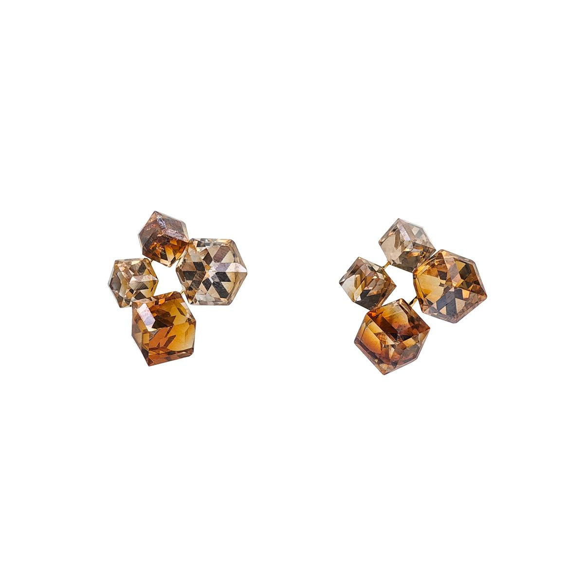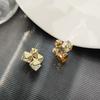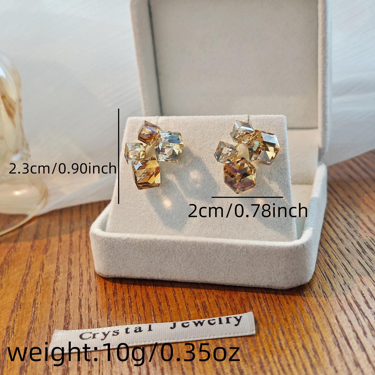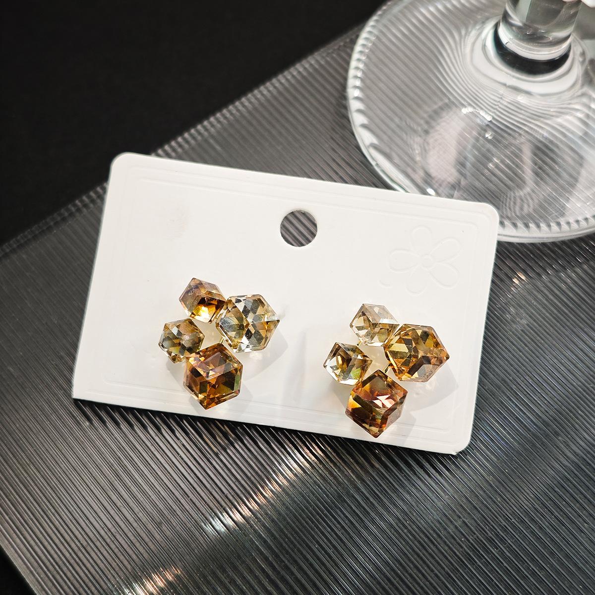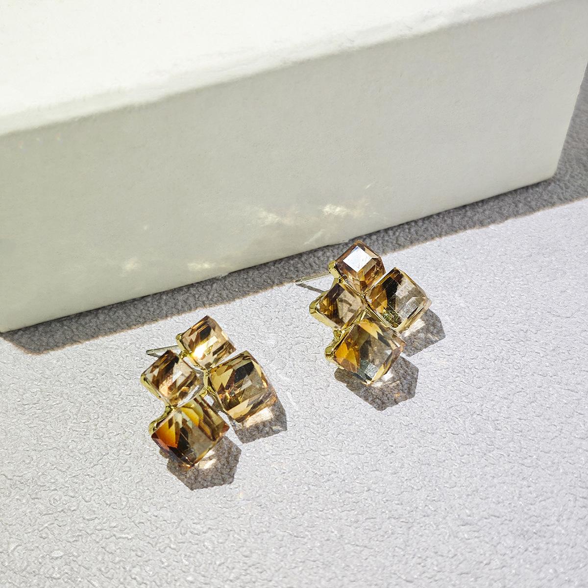 Aretes de aguja plateada de lujo ligero de alto sentido tridimensionales de vidrio cuadrado temperamento retro marrón aretes de personalidad única al por mayor
