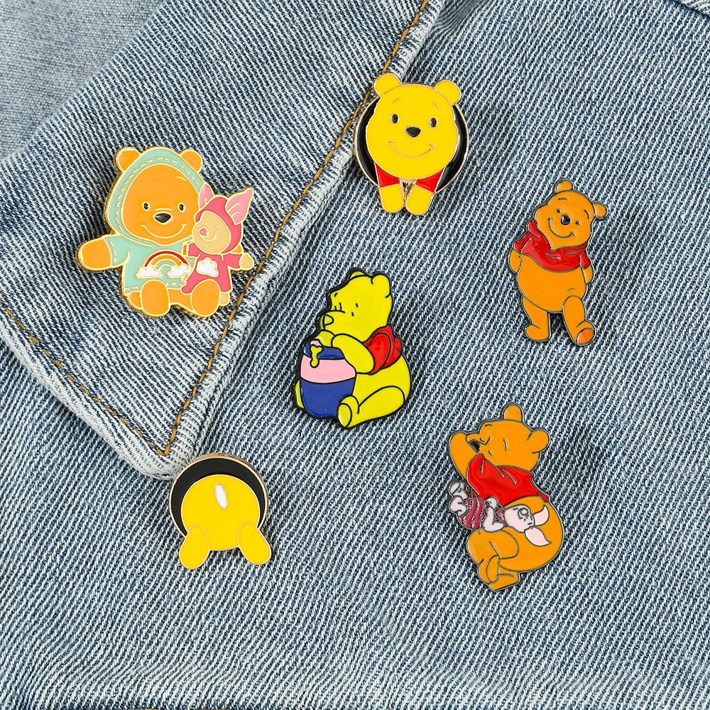 Pin de pintura de dibujos animados, broche de Winnie the Pooh, insignia de metal con el personaje de tres ojos