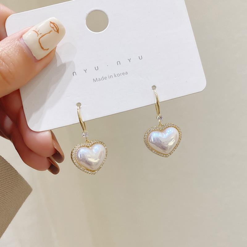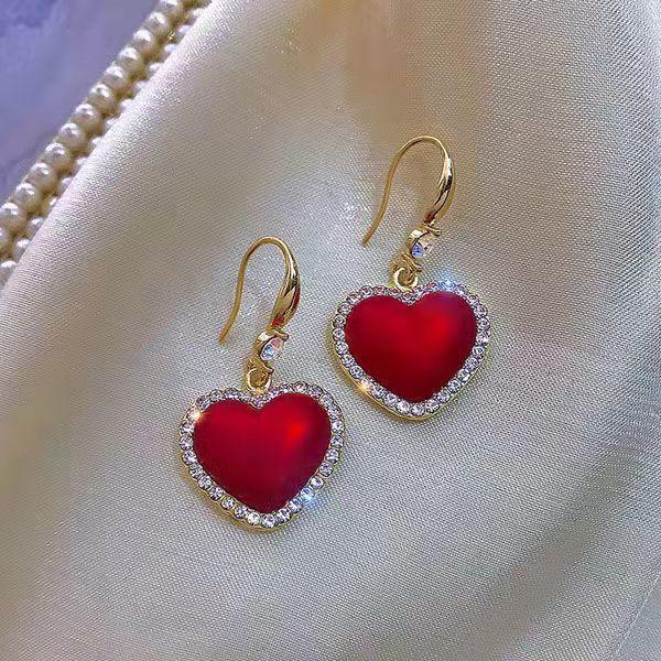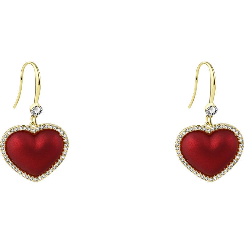 2024 Nuevos Aretes de Perla Roja de Moda con Forma de Corazón de Durazno para Primavera y Verano, Joyería de Oreja Versátil al Por Mayor