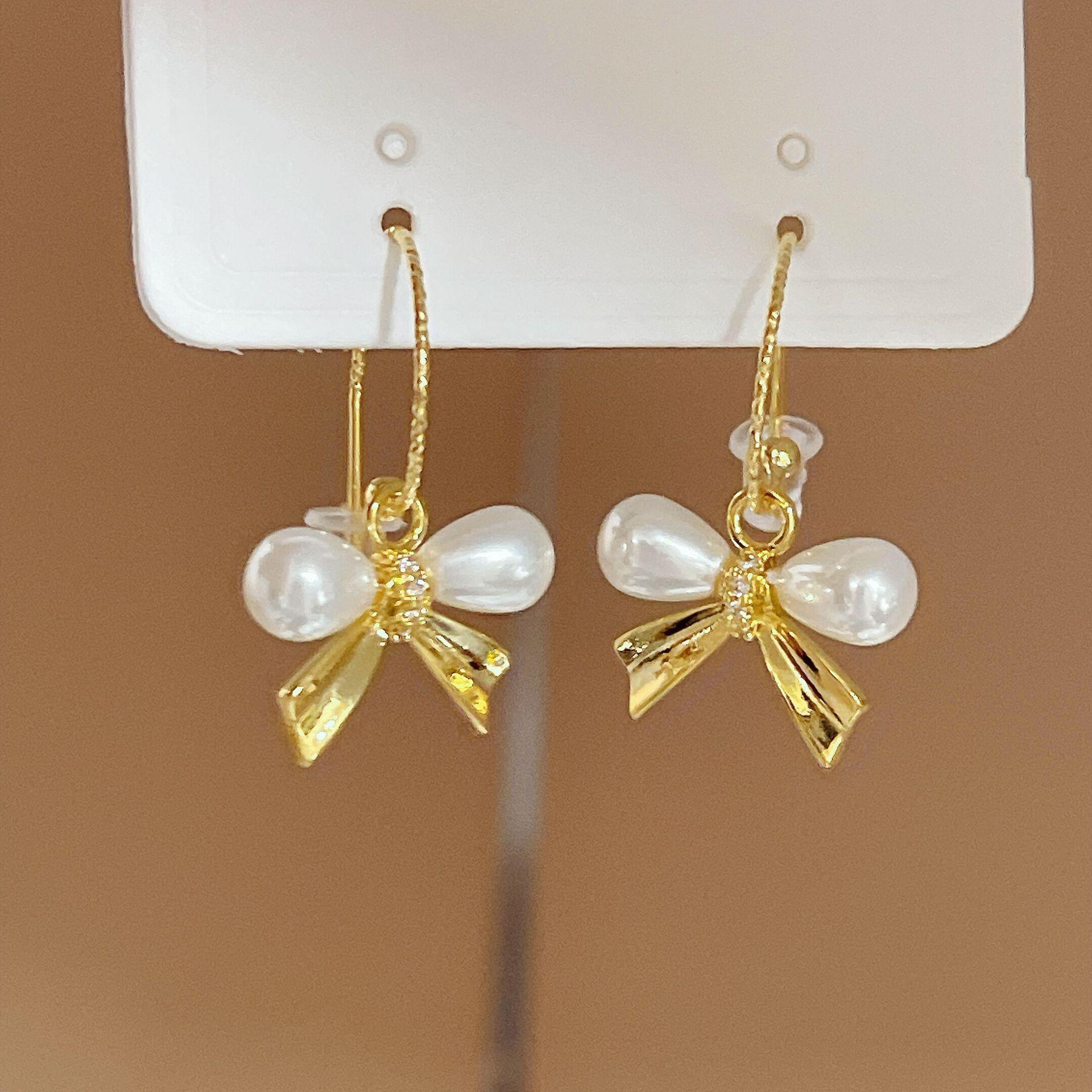 Pendientes coreanos elegantes y exquisitos con forma de C y lazo de perla, ligeros, lujosos, con diseño de nicho, a la moda, que combinan con todo.