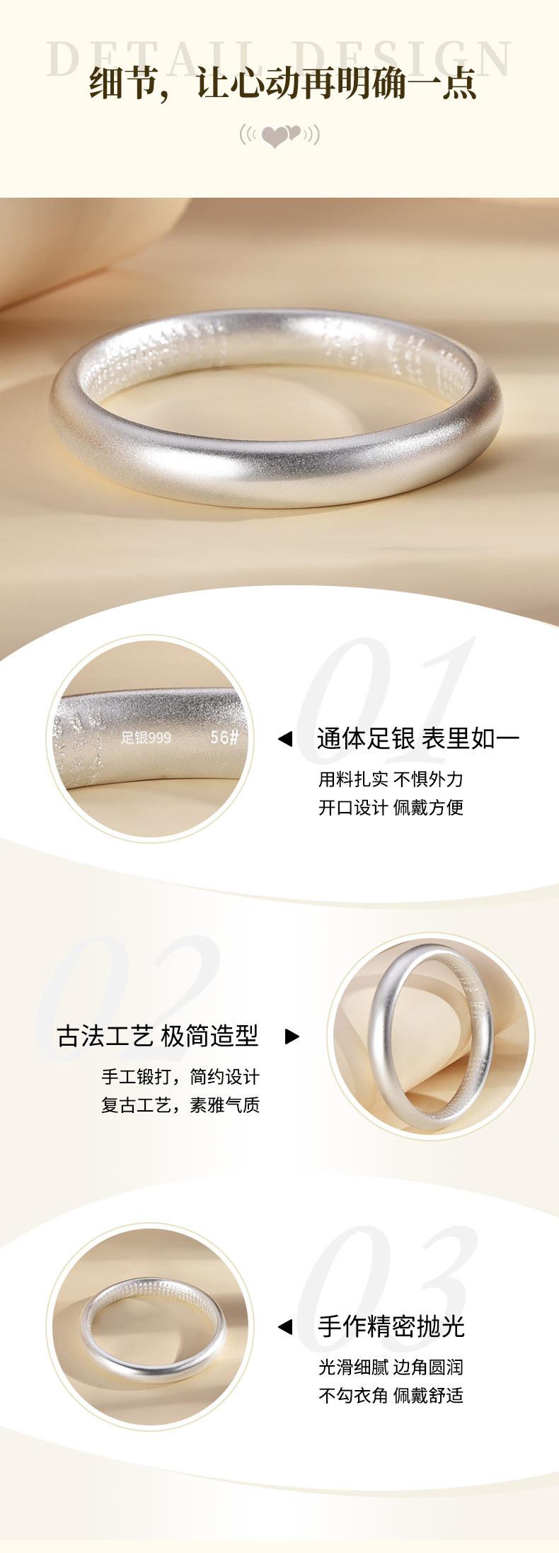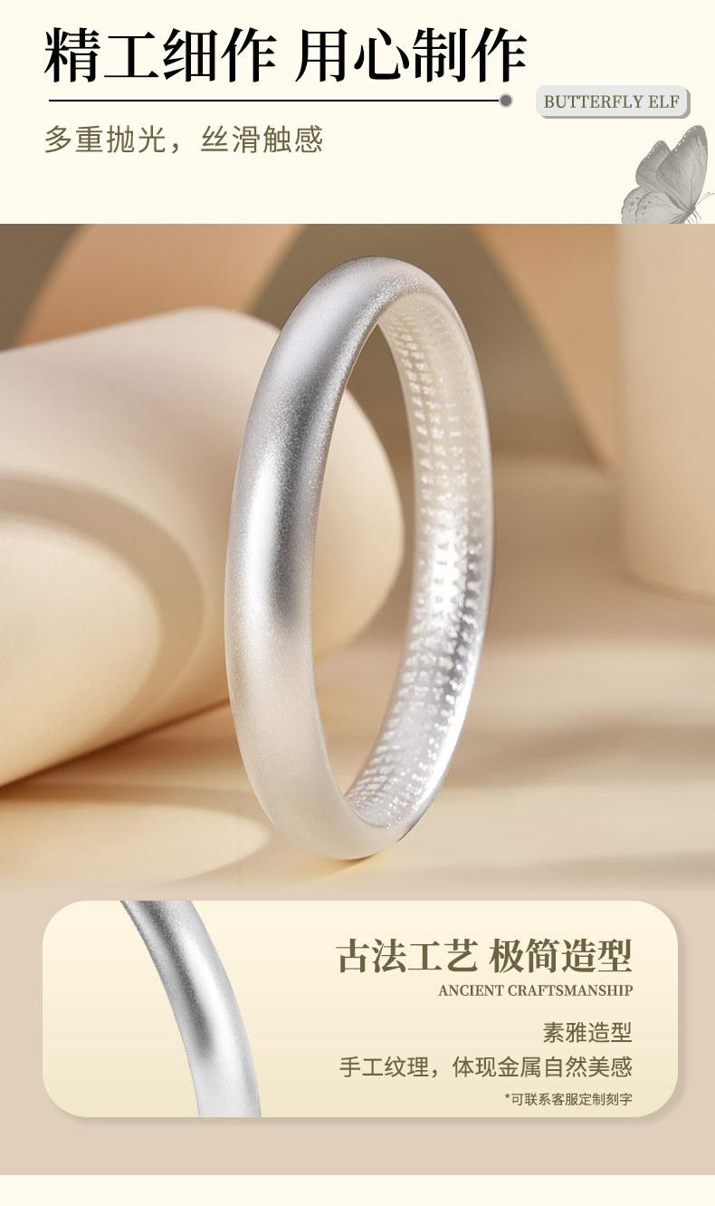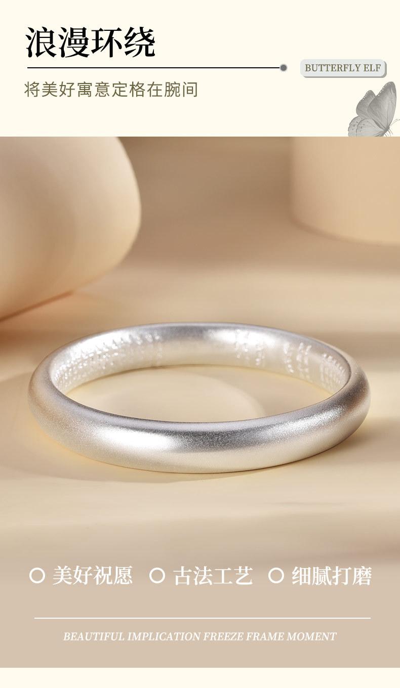 Pulsera de plata de ley 999 con anillo francés antiguo, pata trasera hueca de locha, pulsera de plata con superficie de arena, pulsera de neumático de estilo antiguo, boca cerrada mate