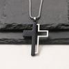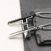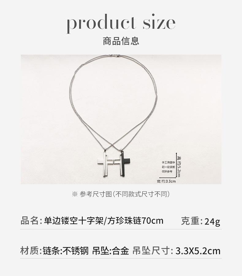 Unilateral hollow cross-white K/square pearl chain 70cm, Unilateral hollow cross-gun black/square pearl chain 70cm