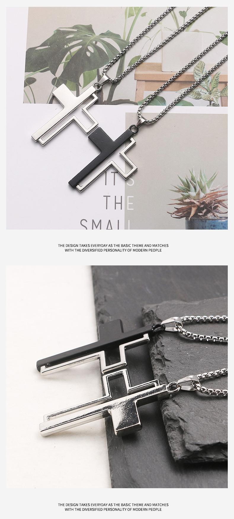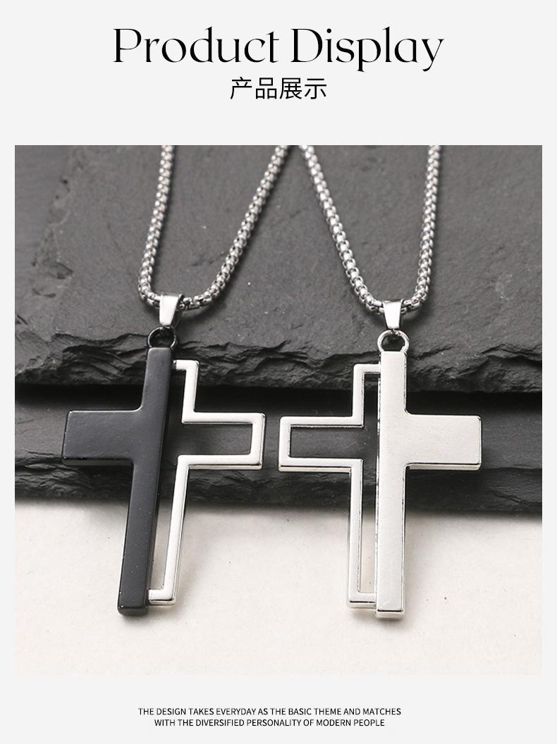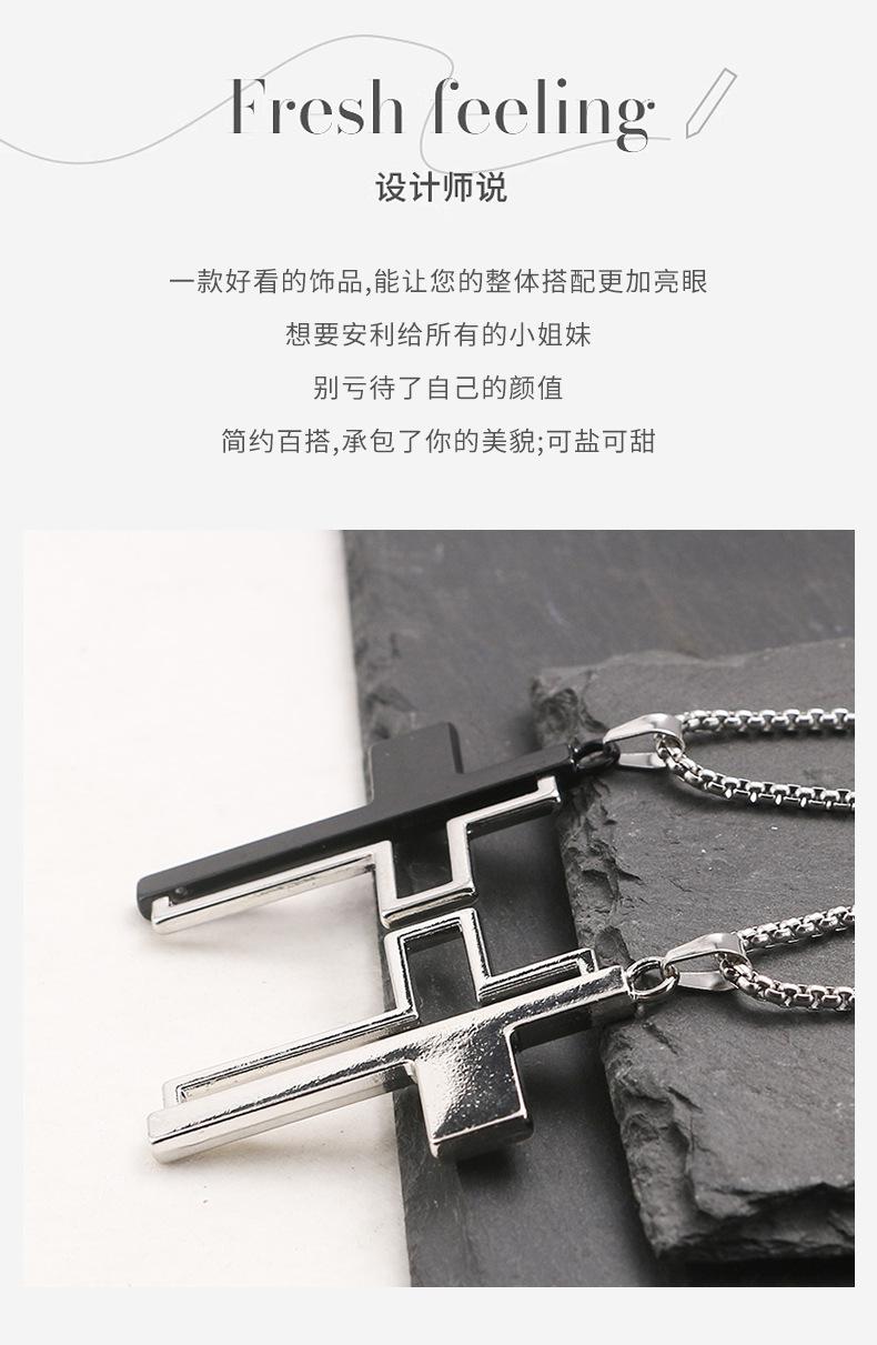 Collar con colgante de cruz de aleación, estilo coreano, unisex, personalizado, estilo hip hop, diseño medio hueco, cadena de lana con sentido