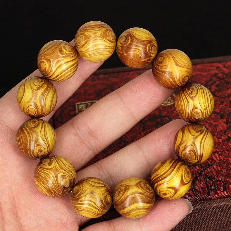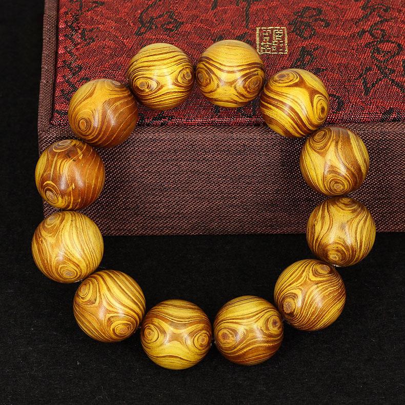 Nombre del Producto: Pulsera de Cuentas de Buda Ojos Cara de Fantasma Madera Dorada
