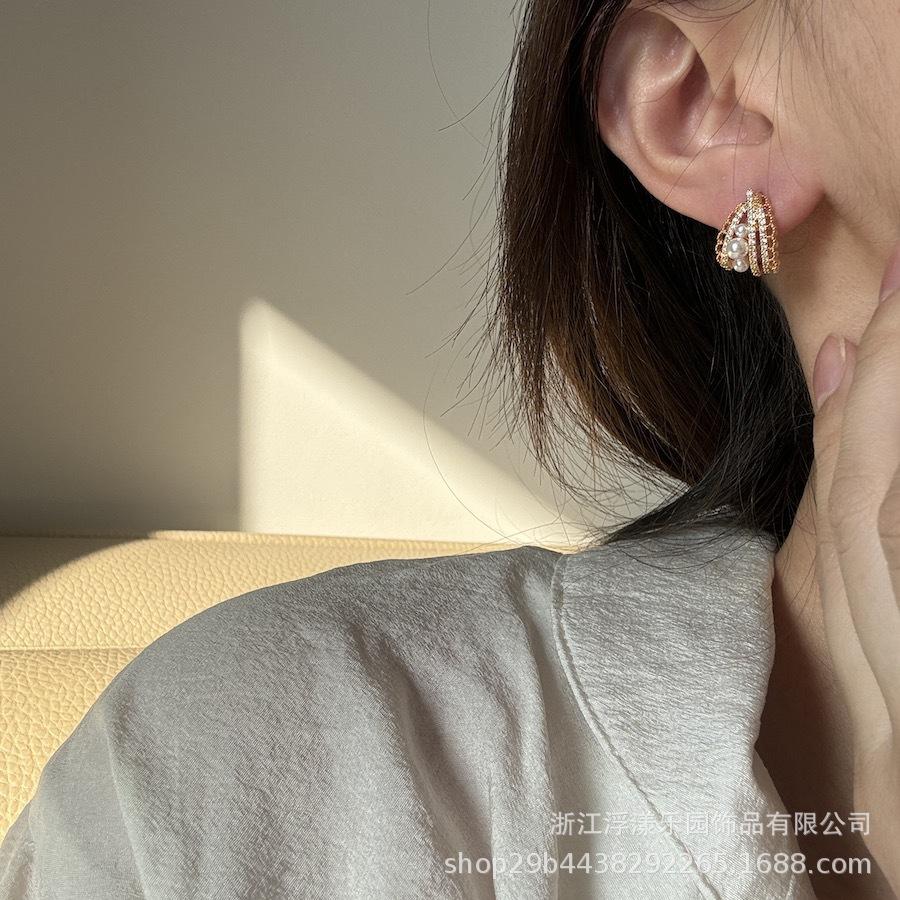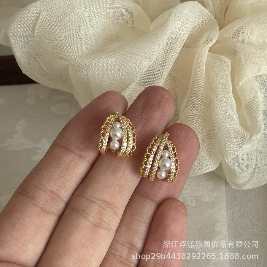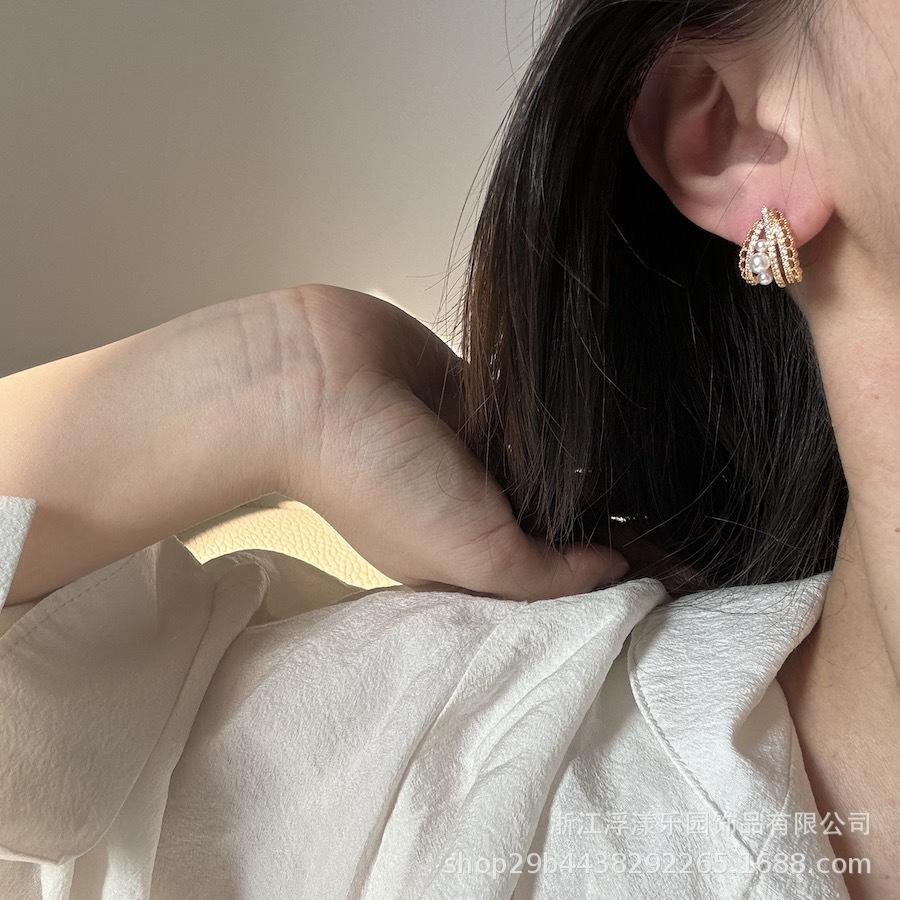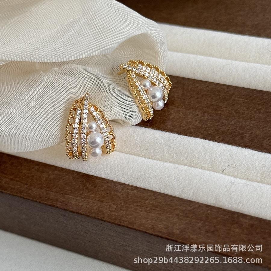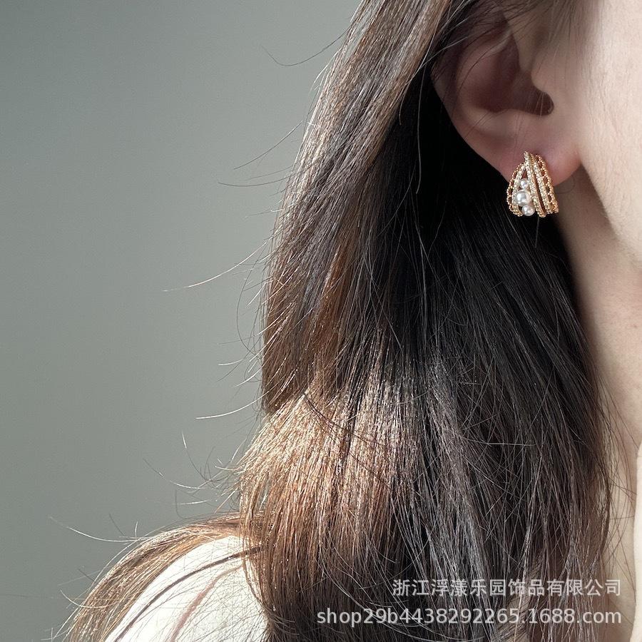Compra Pendientes de botón de perla de piedra blanca hueca para mujer, nuevos de primavera y verano, diseño de nicho, pendientes de estilo retro francés de gran sentido para mujer al por mayor en Joom.pro