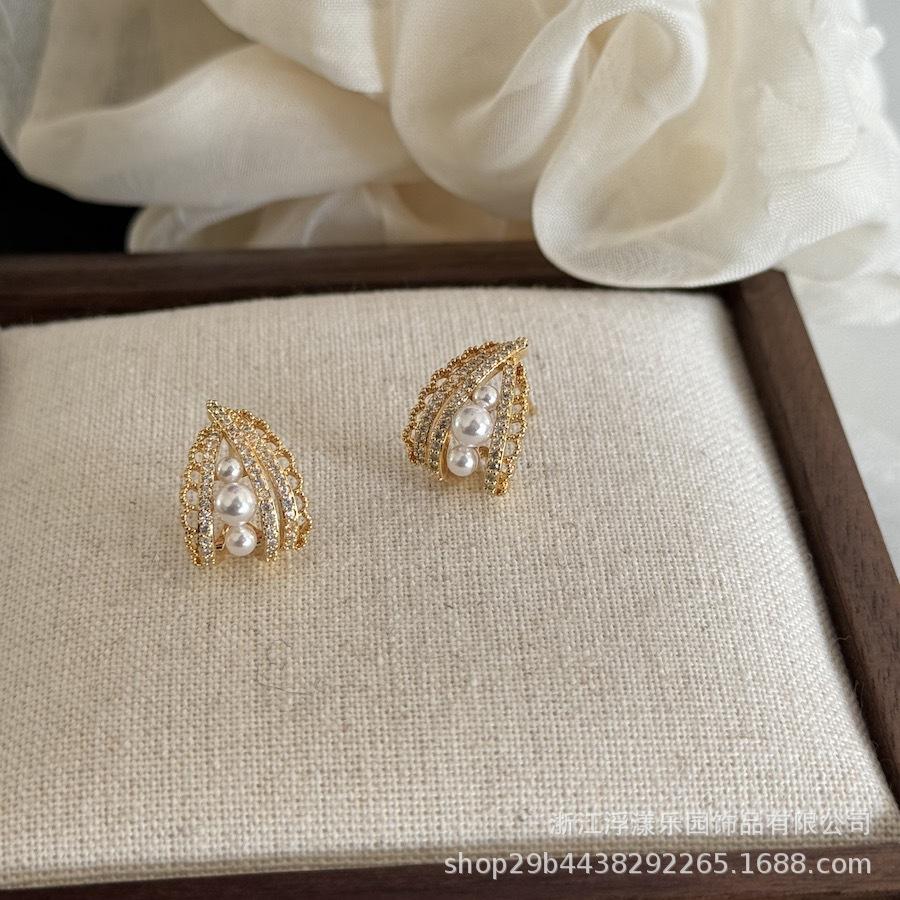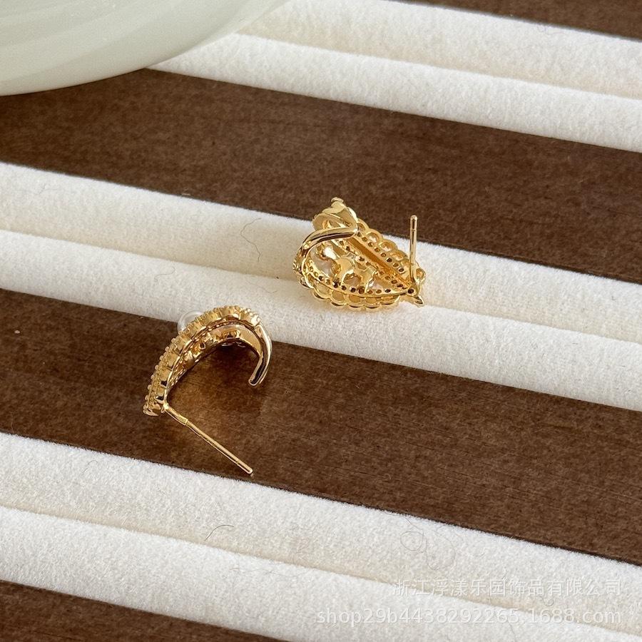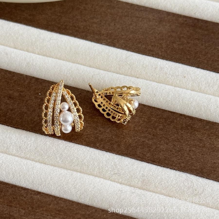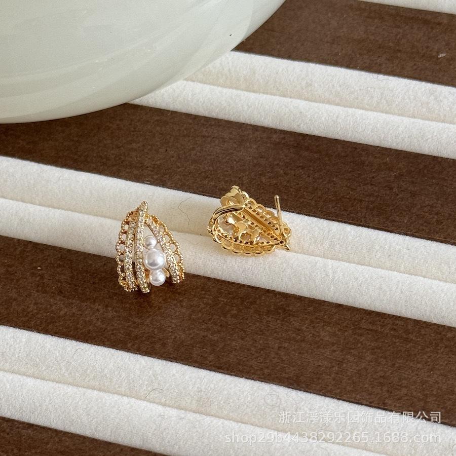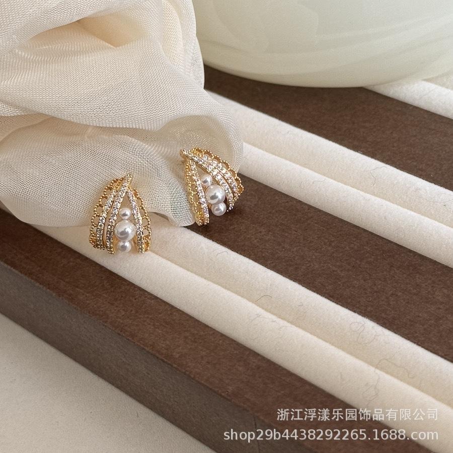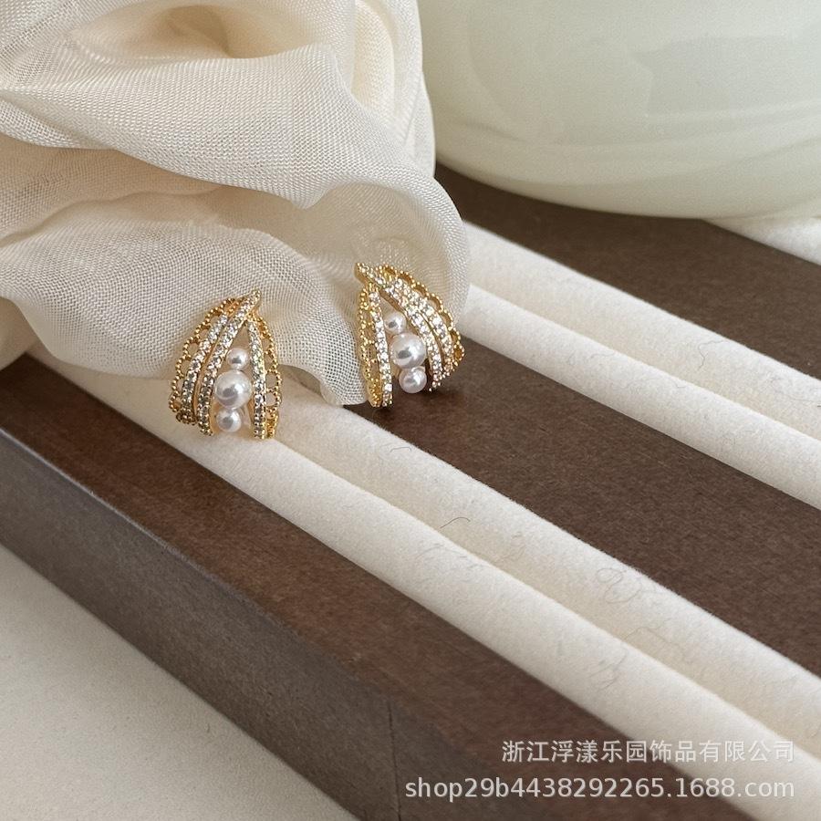 Compra Pendientes de botón de perla de piedra blanca hueca para mujer, nuevos de primavera y verano, diseño de nicho, pendientes de estilo retro francés de gran sentido para mujer al por mayor en Joom.pro
