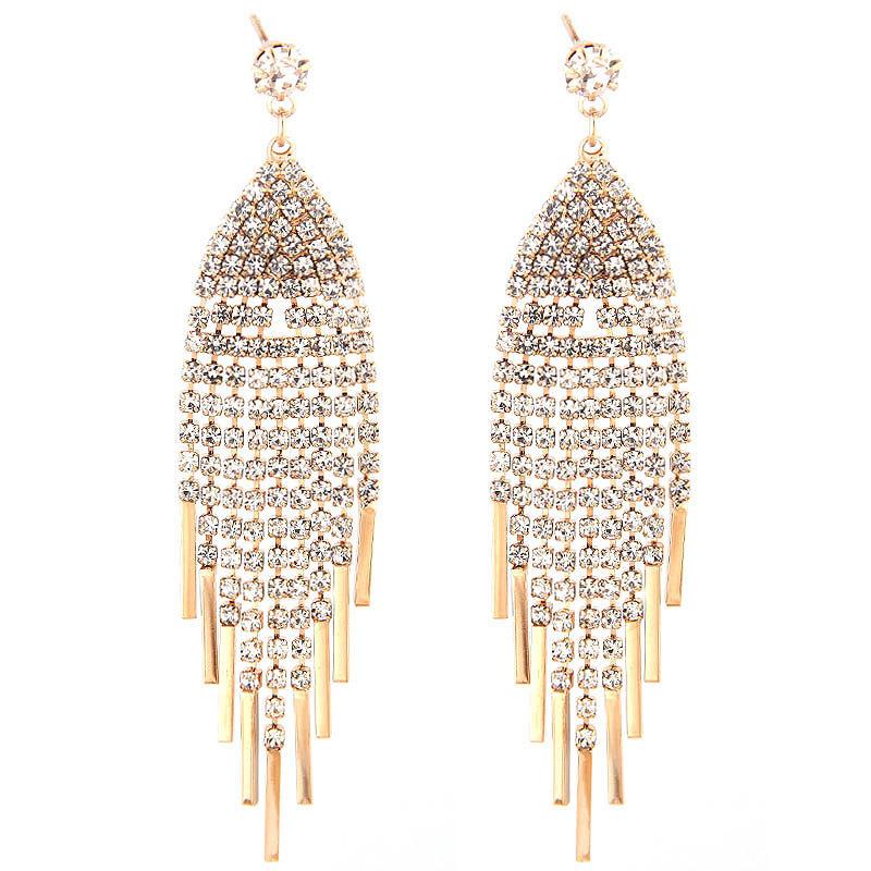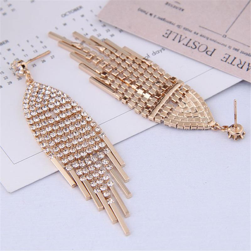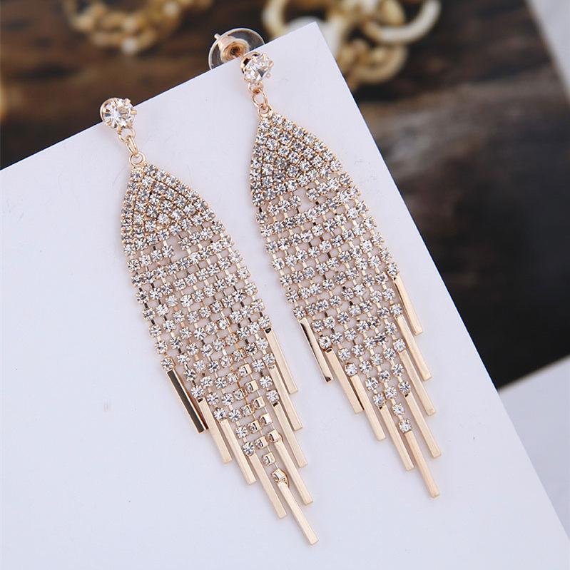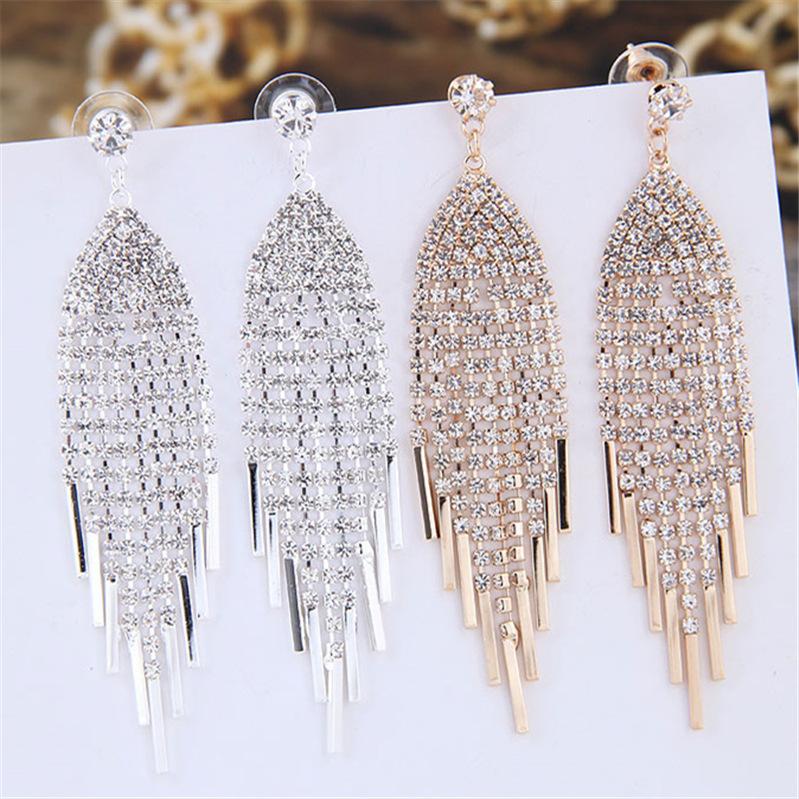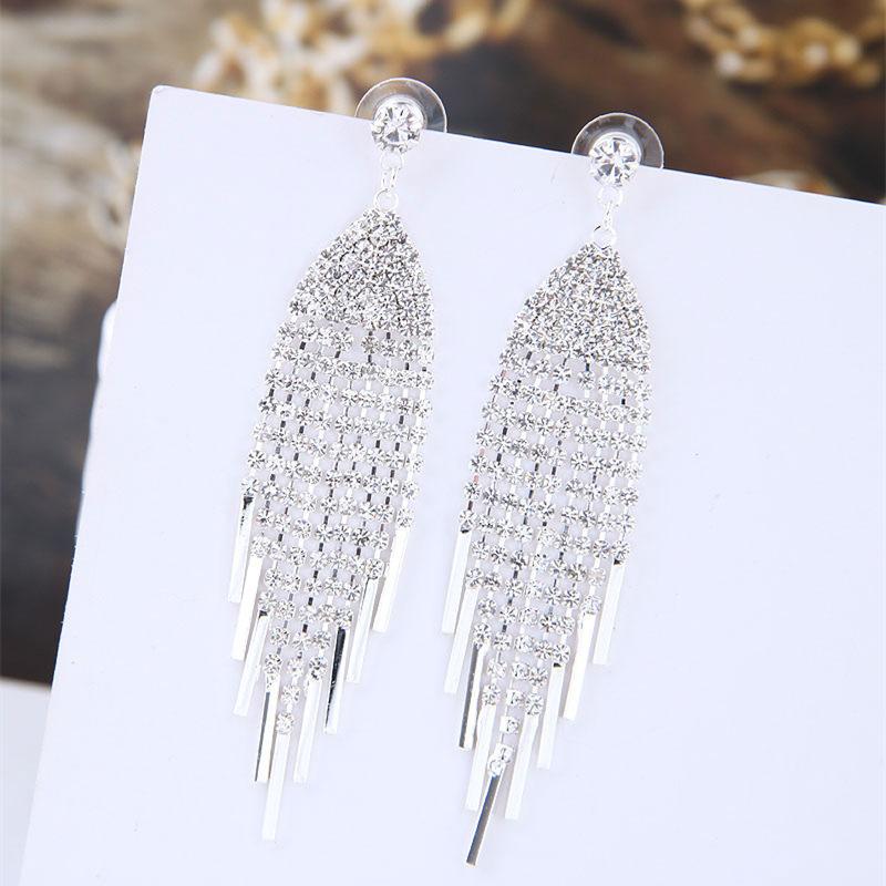 Pendientes largos con borlas de estilo europeo y americano, con exquisitos diamantes, pendientes de diamantes de imitación, para vestido de novia E8228