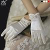 Guantes de novia de boda con lazo de encaje blanco y negro, guantes de boda cortos y largos de satén de alta calidad.