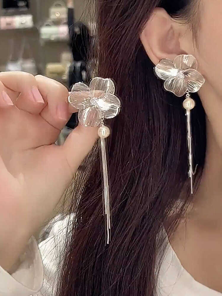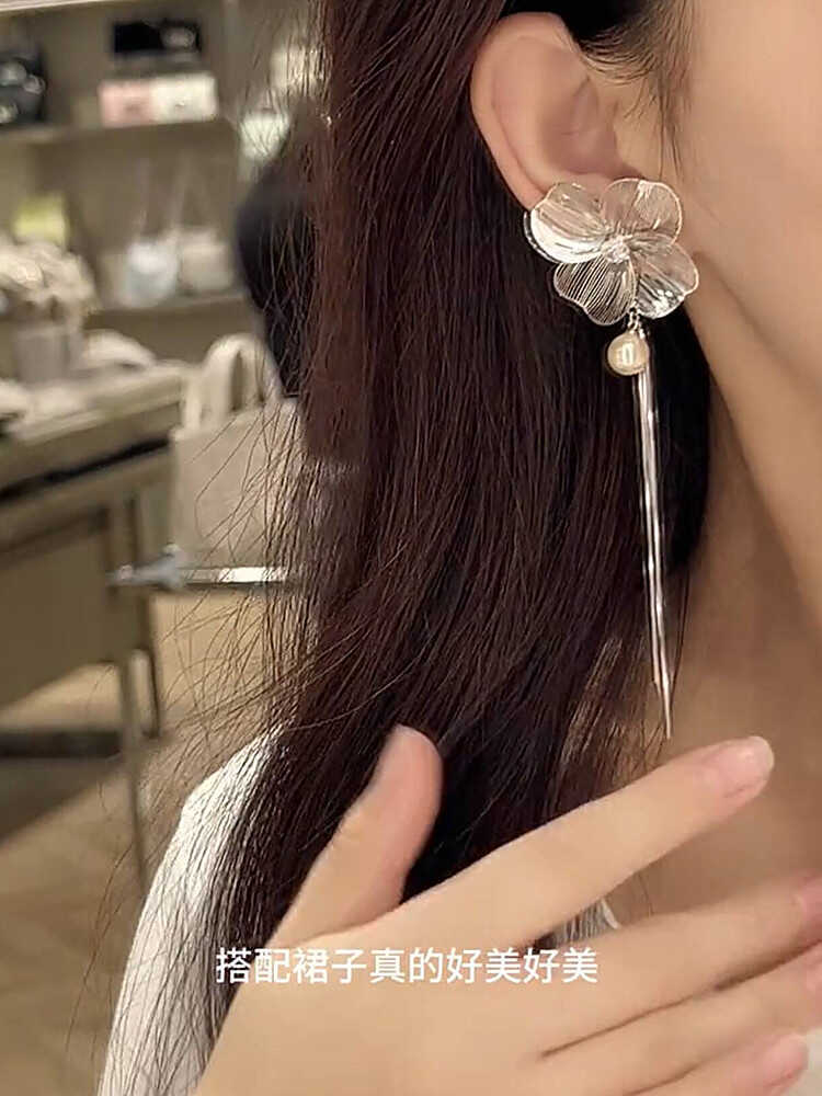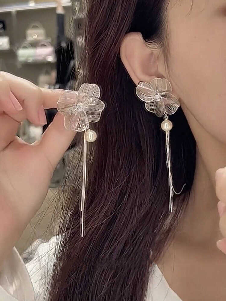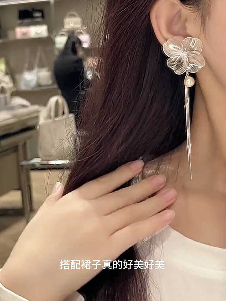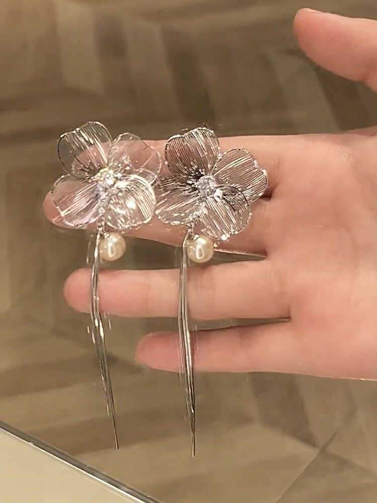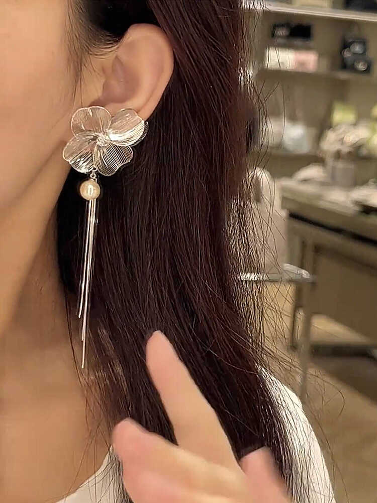 Compra Super Fairy Hollow Flower Tassel Pearl S925 Brincos de Prata Feminino Nicho Exclusivo Exagerado Elegante Brincos al por mayor en Joom.pro