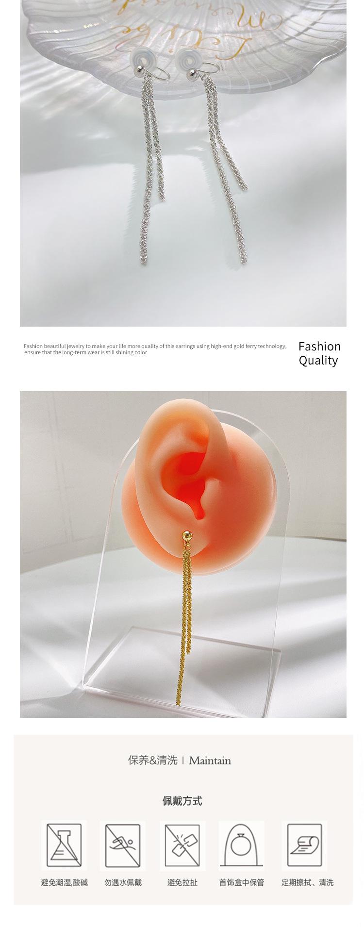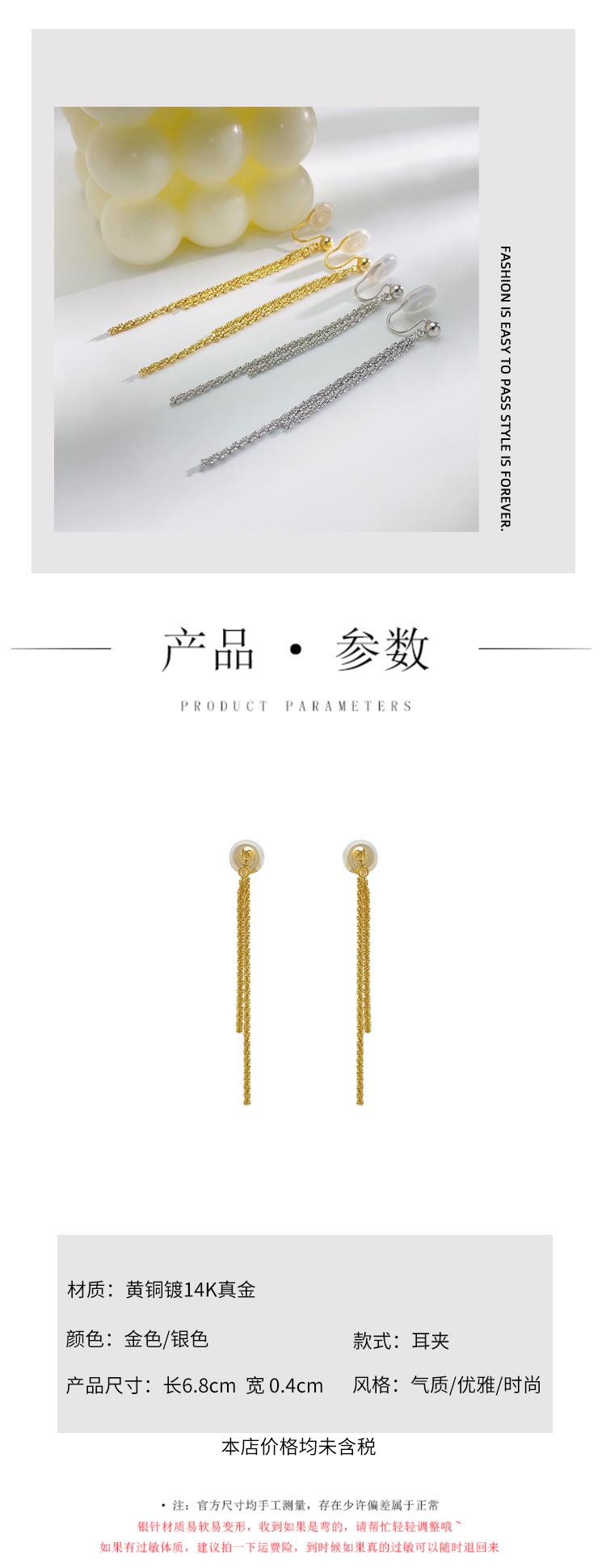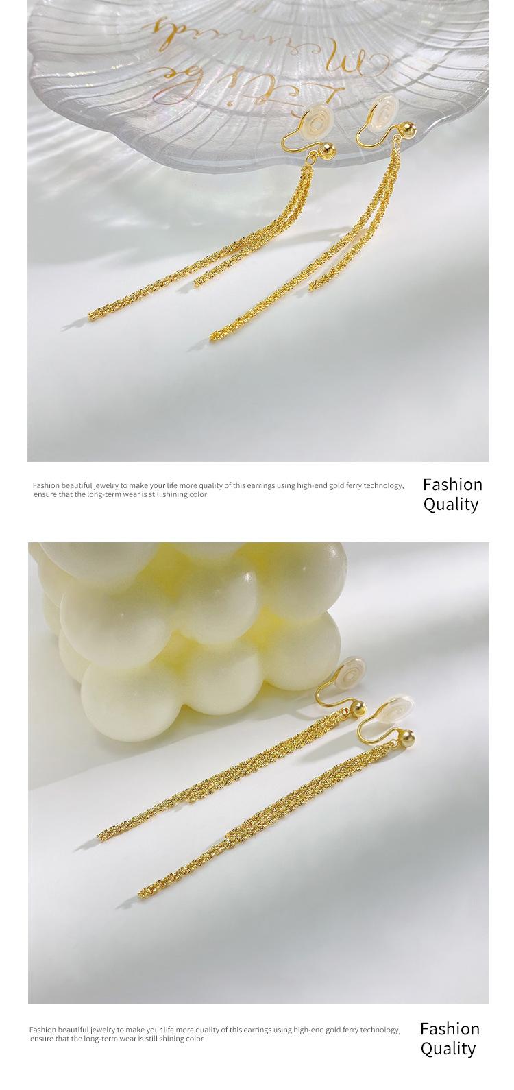2025 Nuevo Celebridad de Internet Pendientes de Clip para Oreja con Borla Brillante Delgada de Moda para Verano para Mujer Exquisitos Indoloros