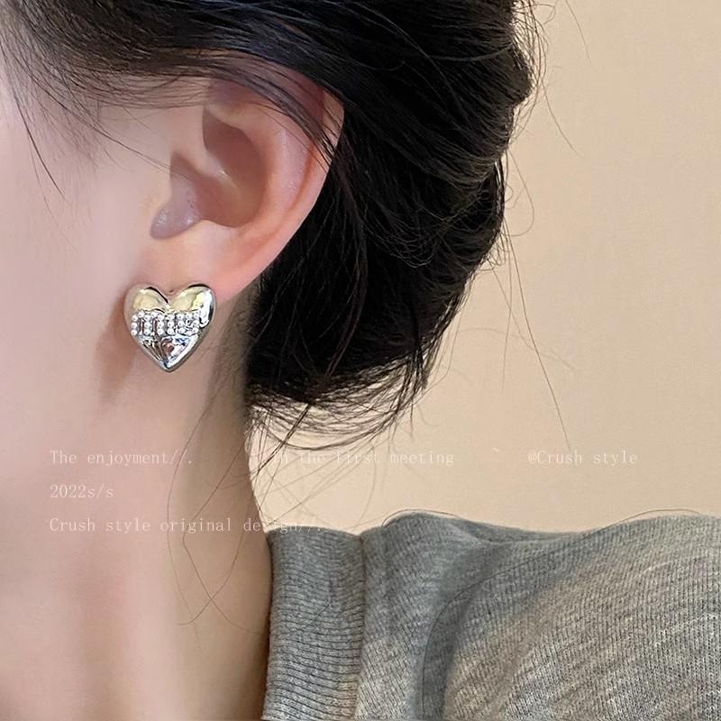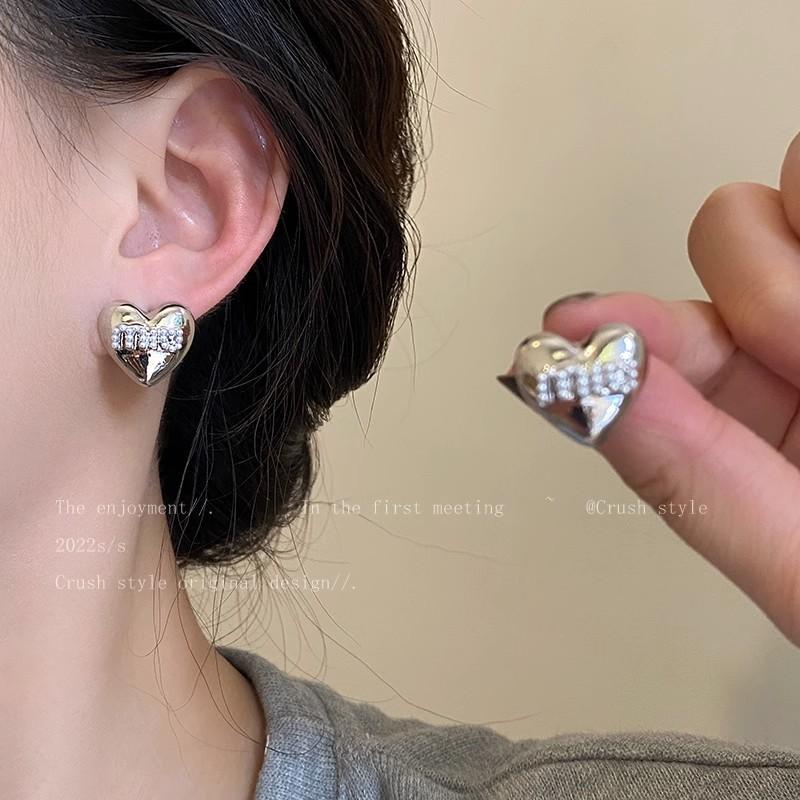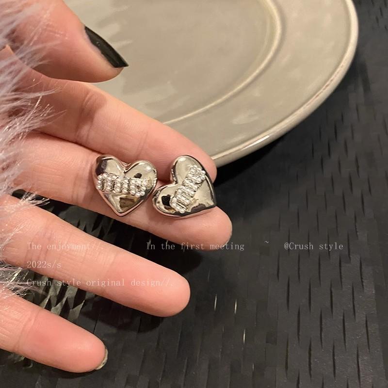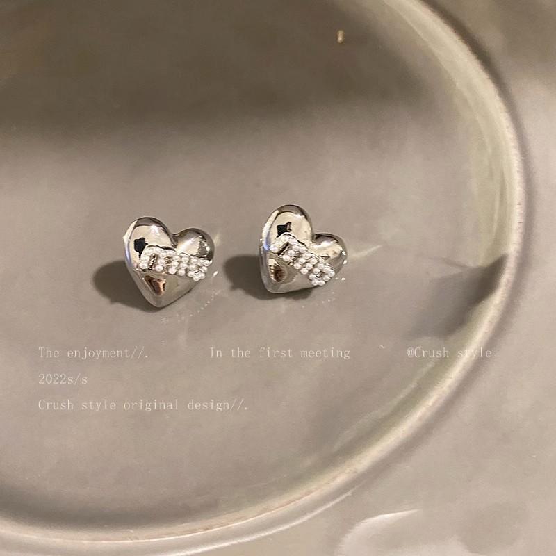 Exquisitos Aretes de Tuerca de Corazón con Letra Estilo Japonés y Coreano para Mujer, Aretes Dulces Versátiles Estilo Ins, Accesorios de Oreja de Lujo Ligero