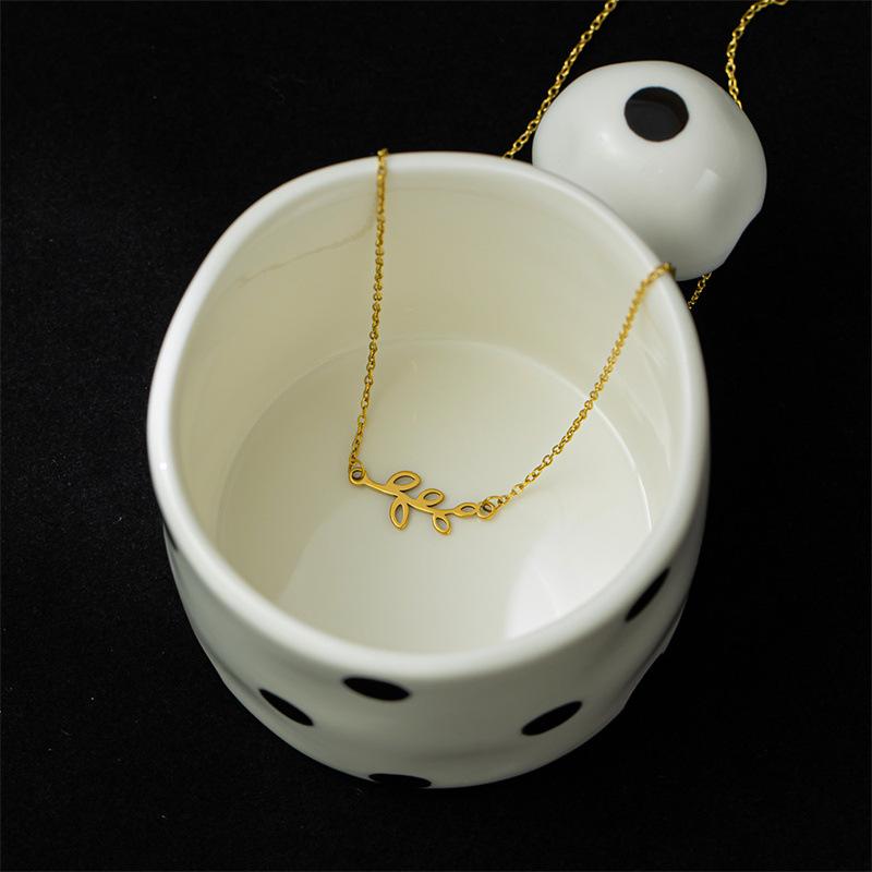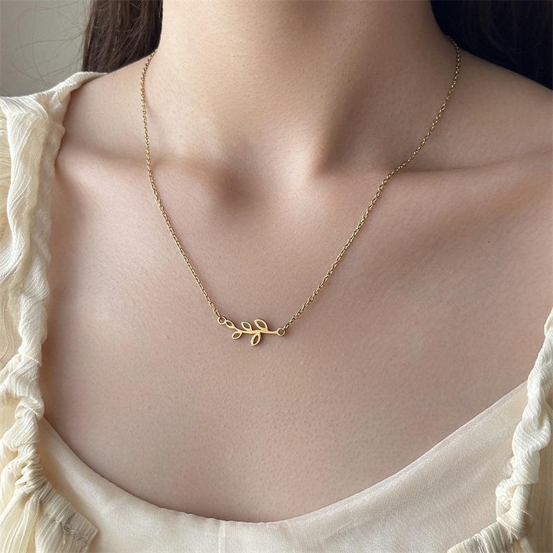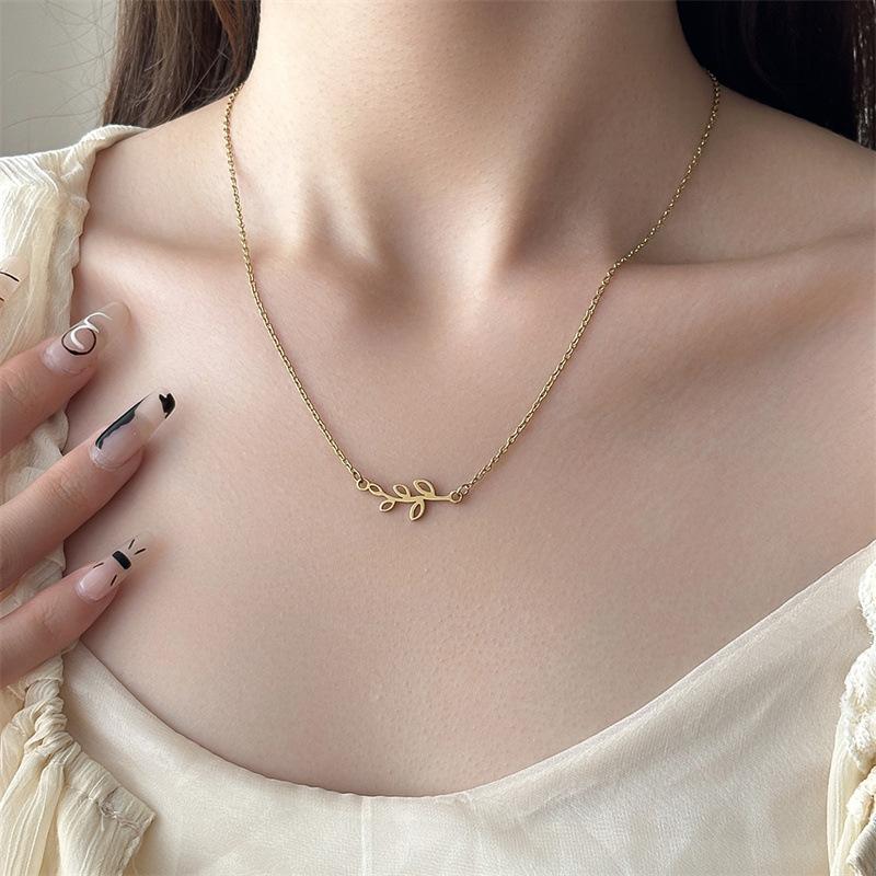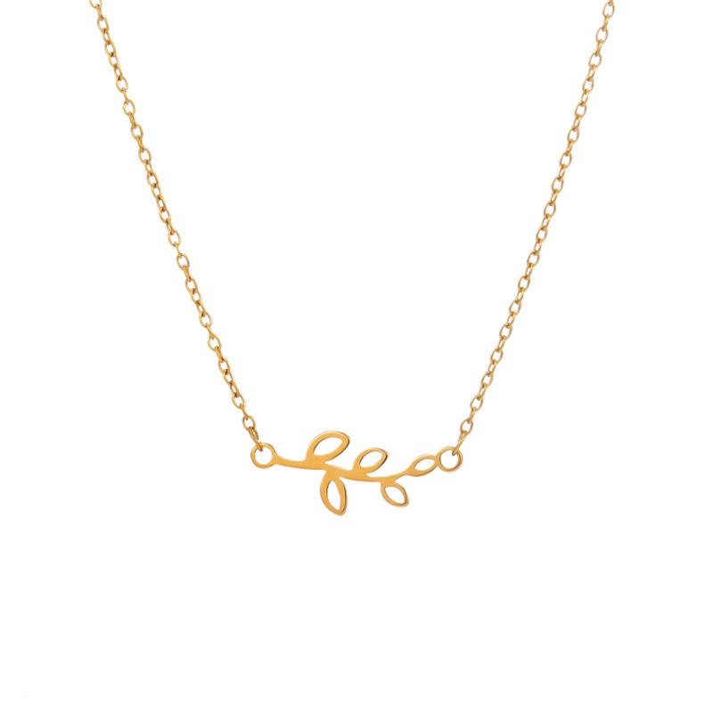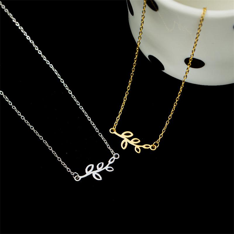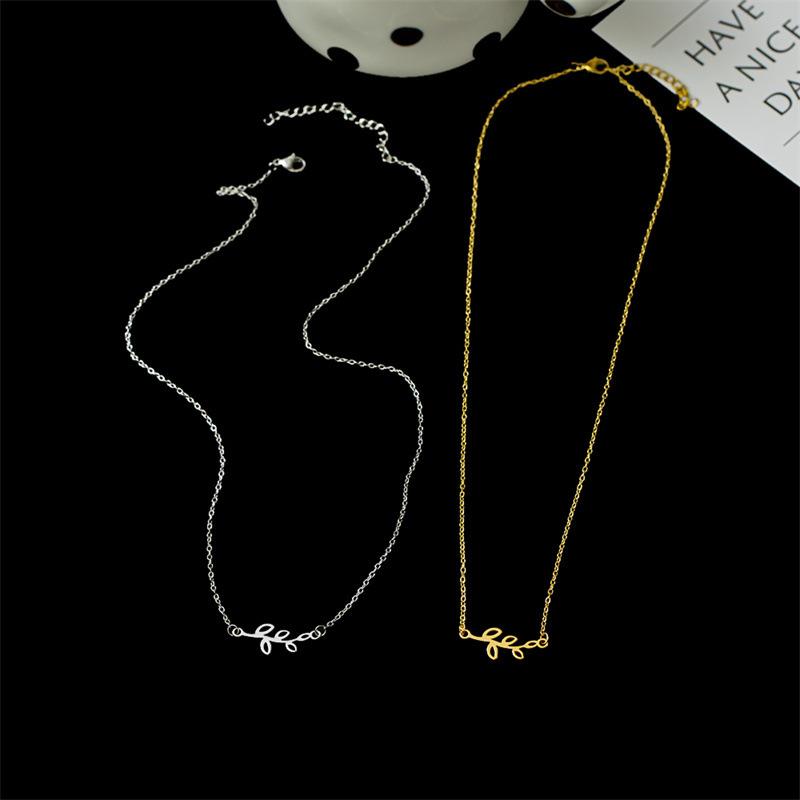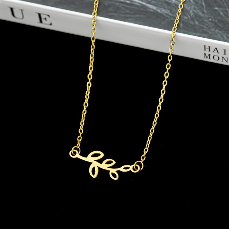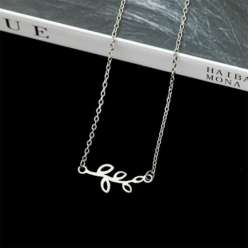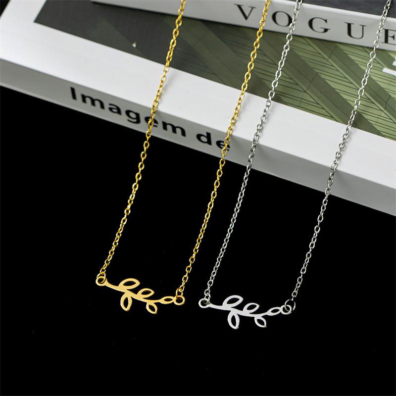 Collar de acero inoxidable con hojas personalizadas de nueva moda europea y americana para mujer, colgante simple de hojas brillantes, estilo fresco ins