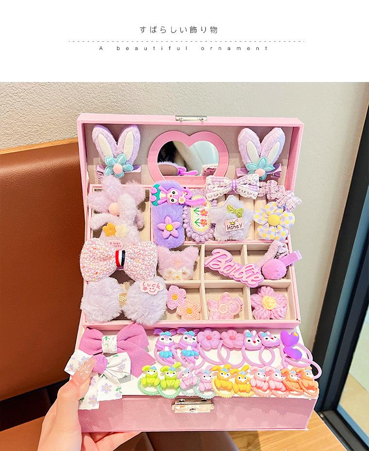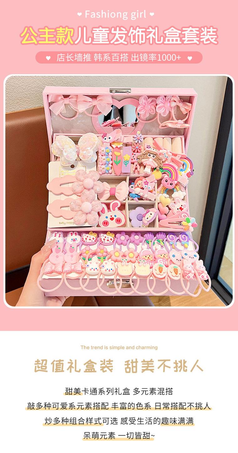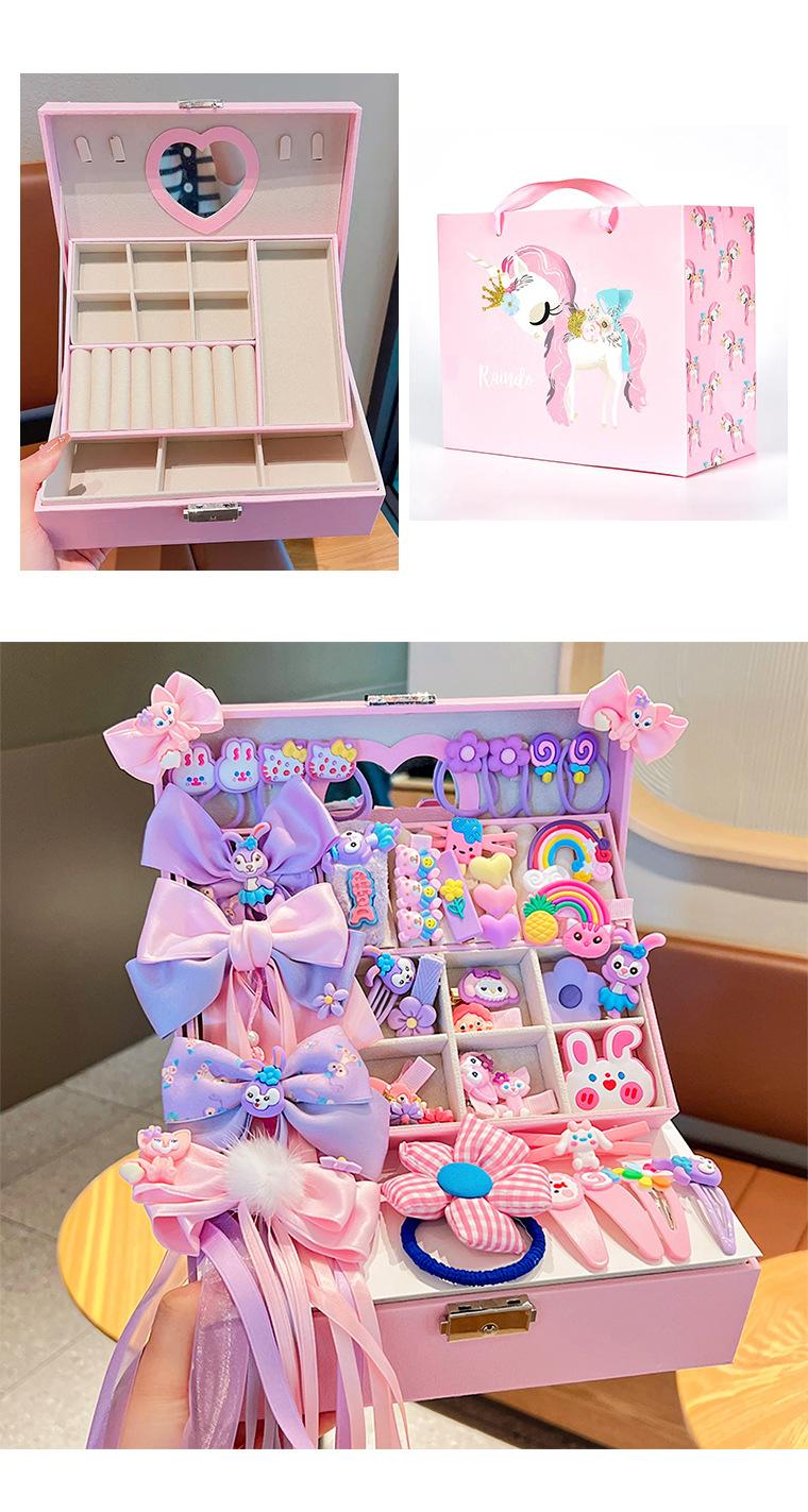| Bonito juego de accesorios para el cabello de niña, caja de regalo, horquilla para niña, horquilla para el cabello, regalo de cumpleaños de princesa, tocado de goma, joyero |