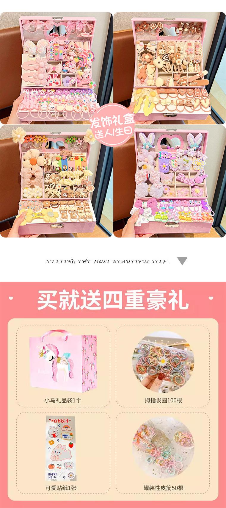 | Nuevo juego de caja de regalo de accesorios para el cabello para niñas, banda de goma para el cabello, regalo de cumpleaños para bebés, horquilla, accesorios para el cabello, caja de joyería |