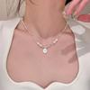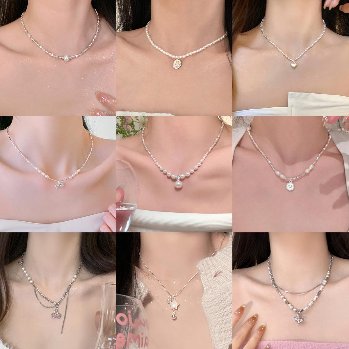 Collar de perlas de plata rotas, diseño pequeño, elegante y sencillo, cadena de clavícula para mujer, con diamantes pequeños y ligeros, de lujo y exquisito.