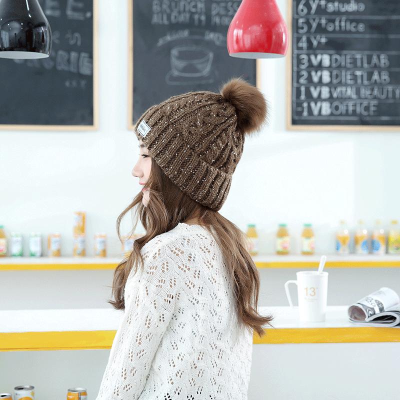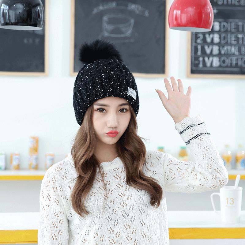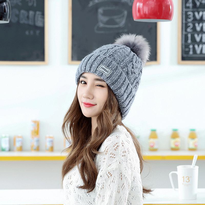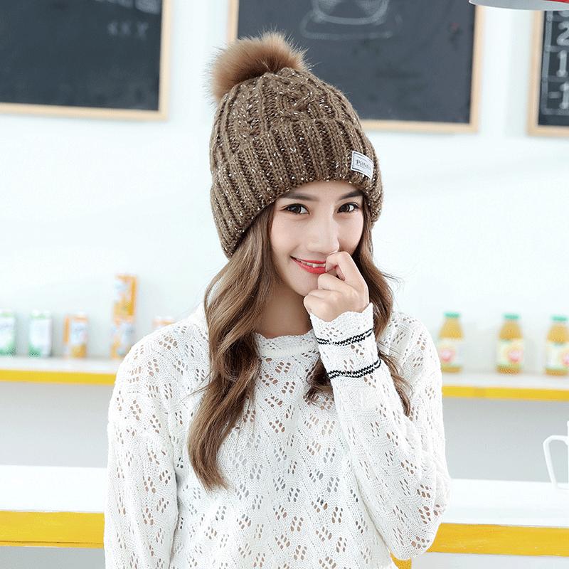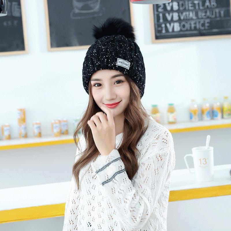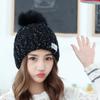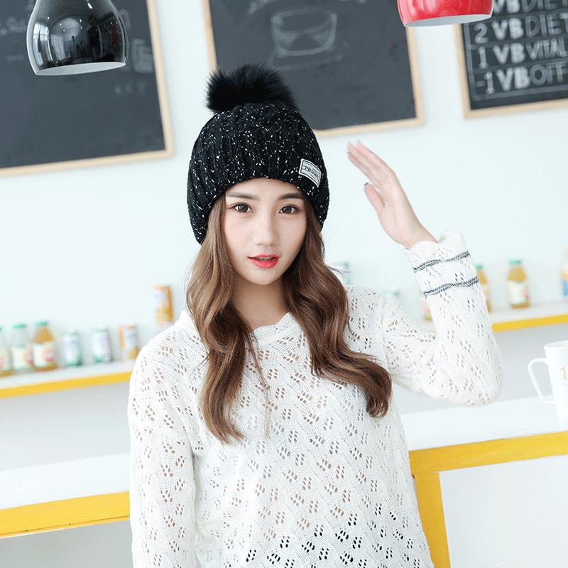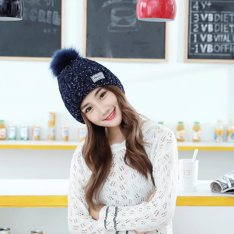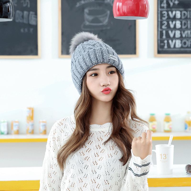Sombrero Nuevo de Lana Sombrero Coreano para Mujer Otoño e Invierno Sombrero de Lana Tejido con Letra Sombrero Cálido Grueso con Forro Polar