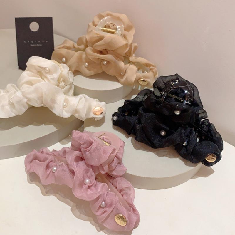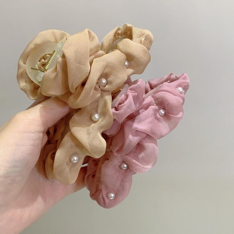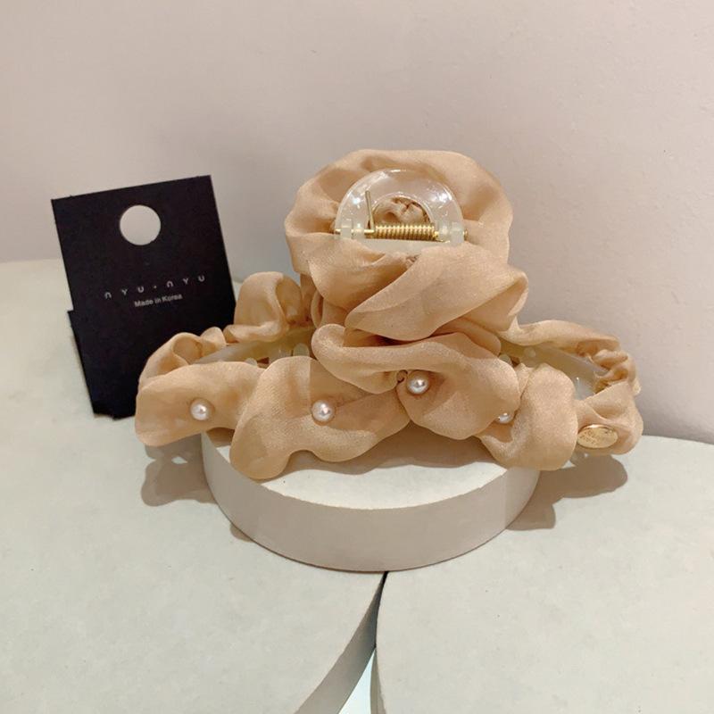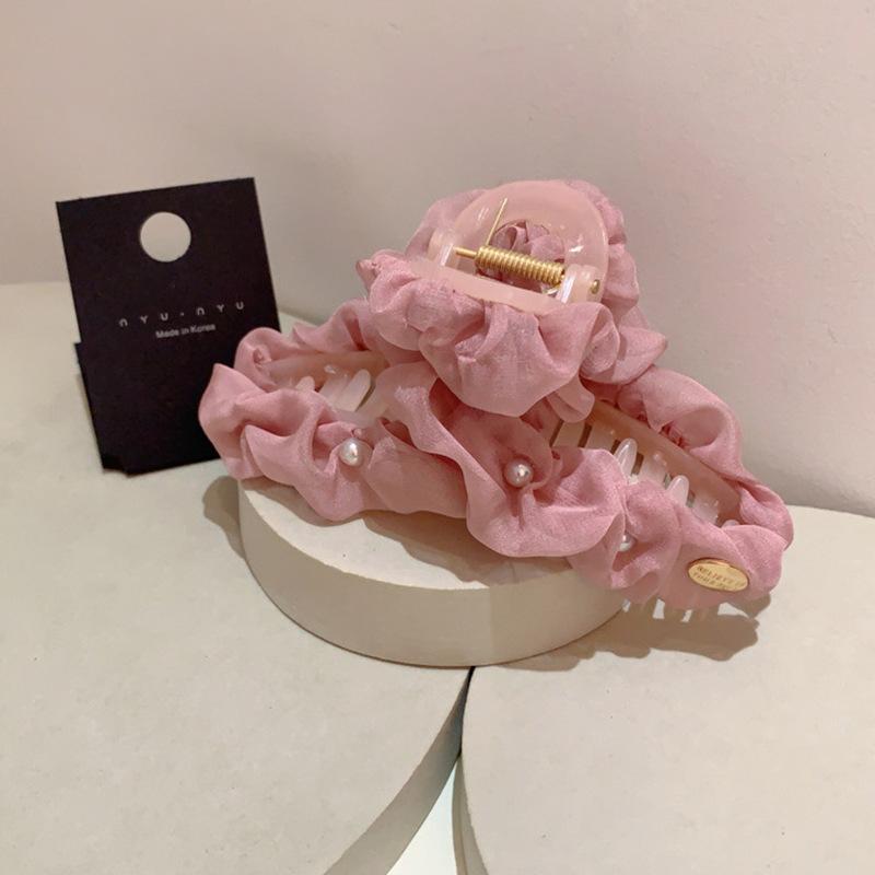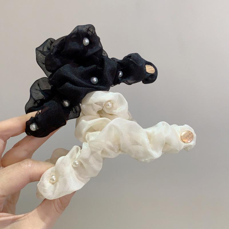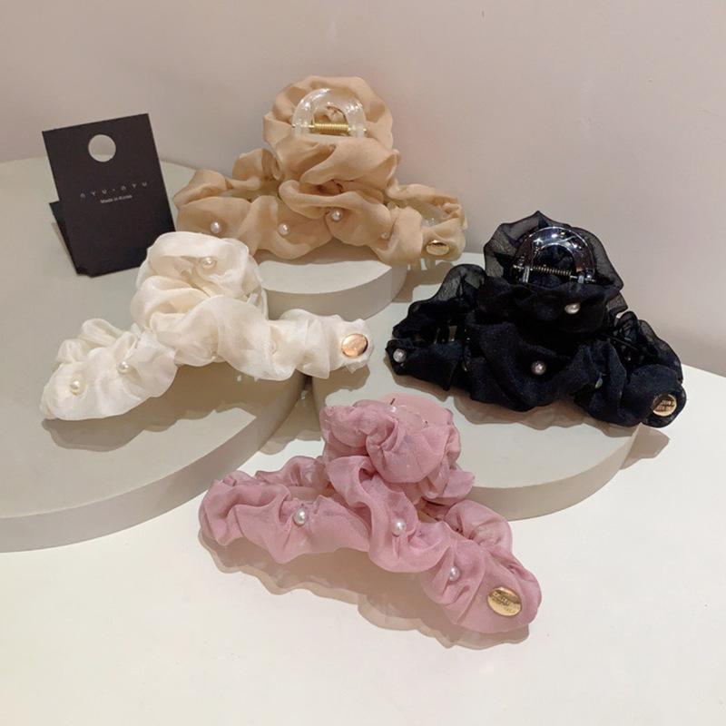 Horquilla de malla con perlas de hada dulce, nueva moda coreana, pinza de tiburón de alta gama que combina con todo.
