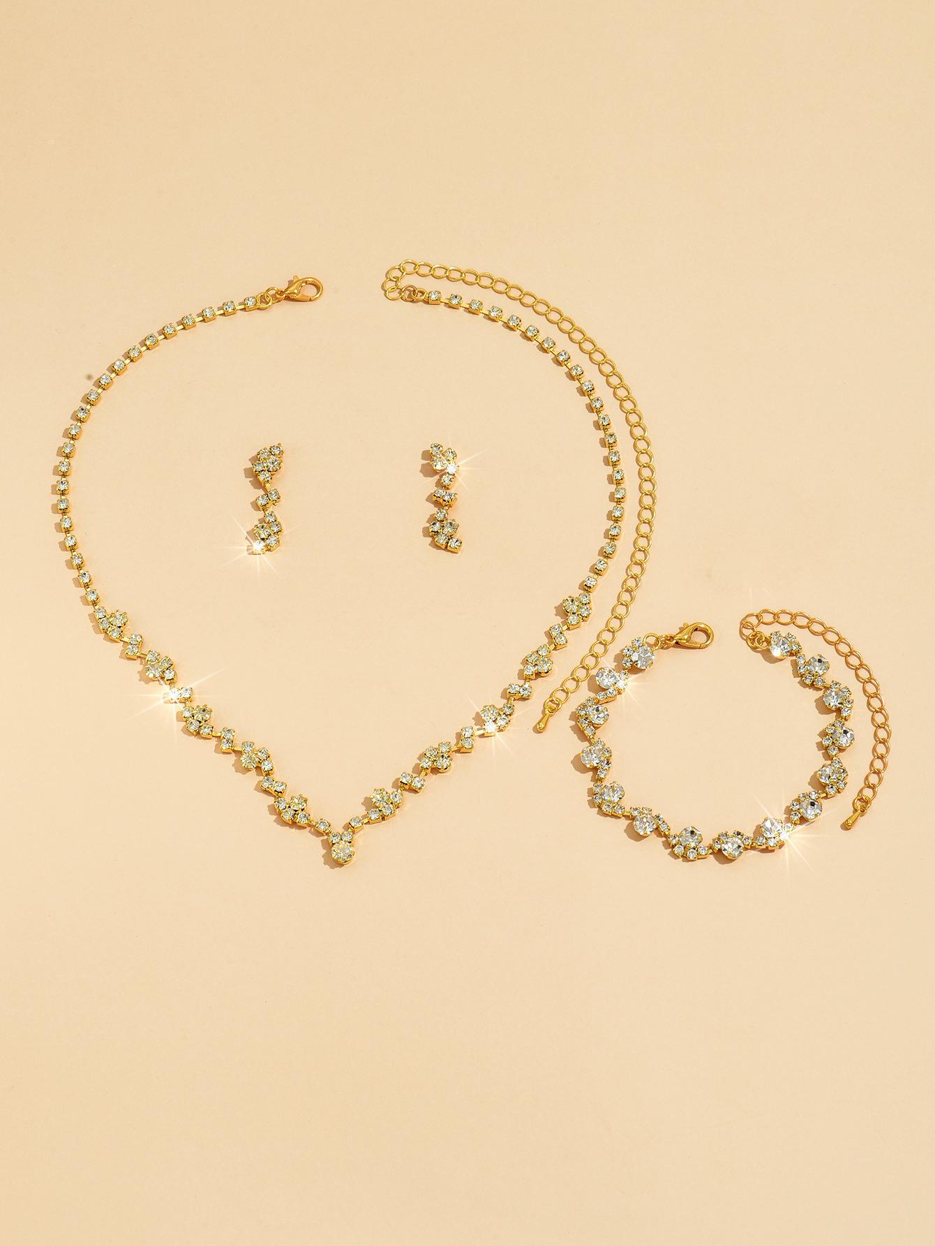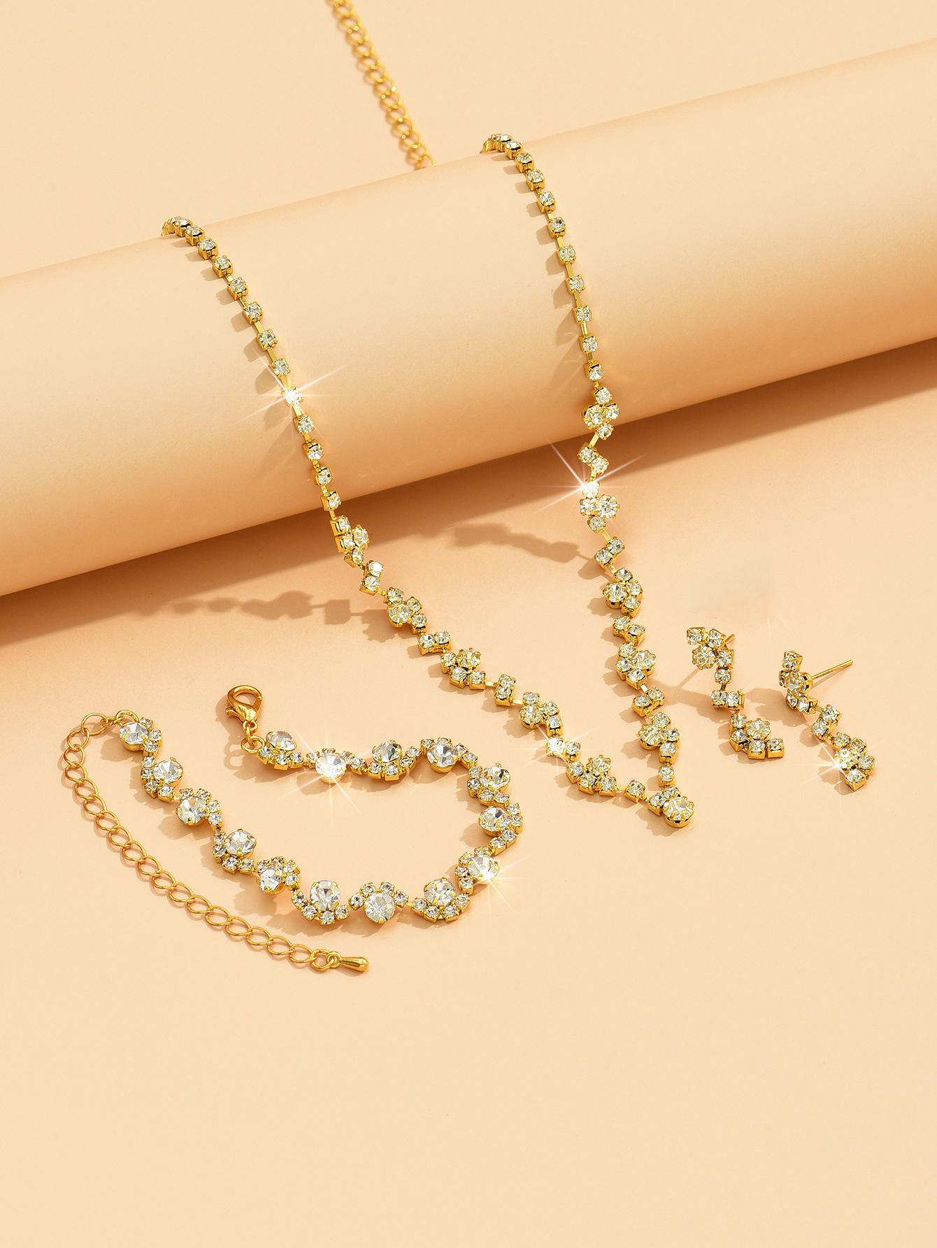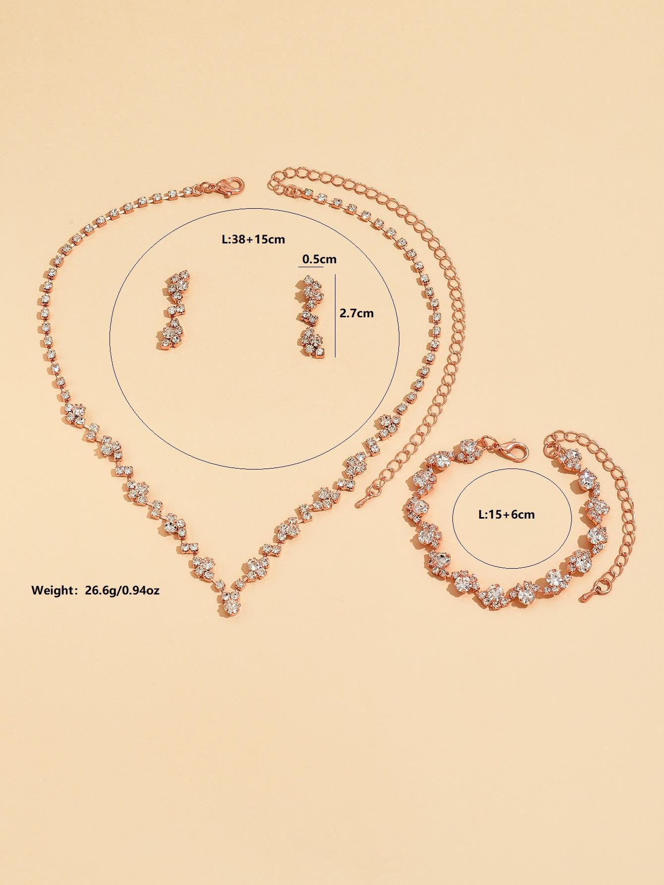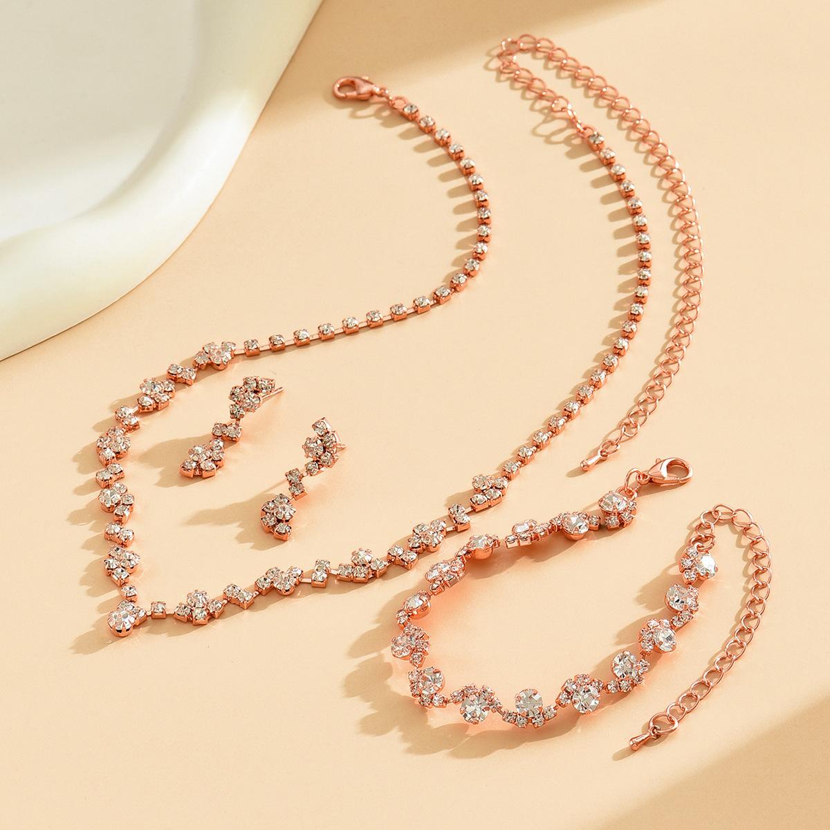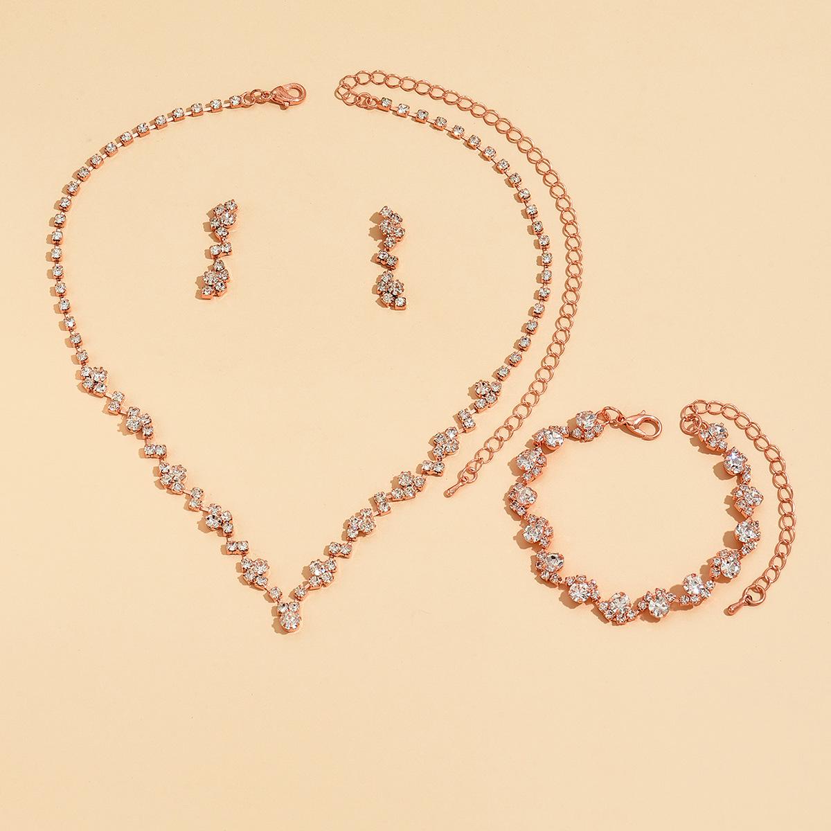 Joyería al por mayor, conjunto de collar, pendientes y pulsera de tres piezas de oro rosa, suministro transfronterizo.