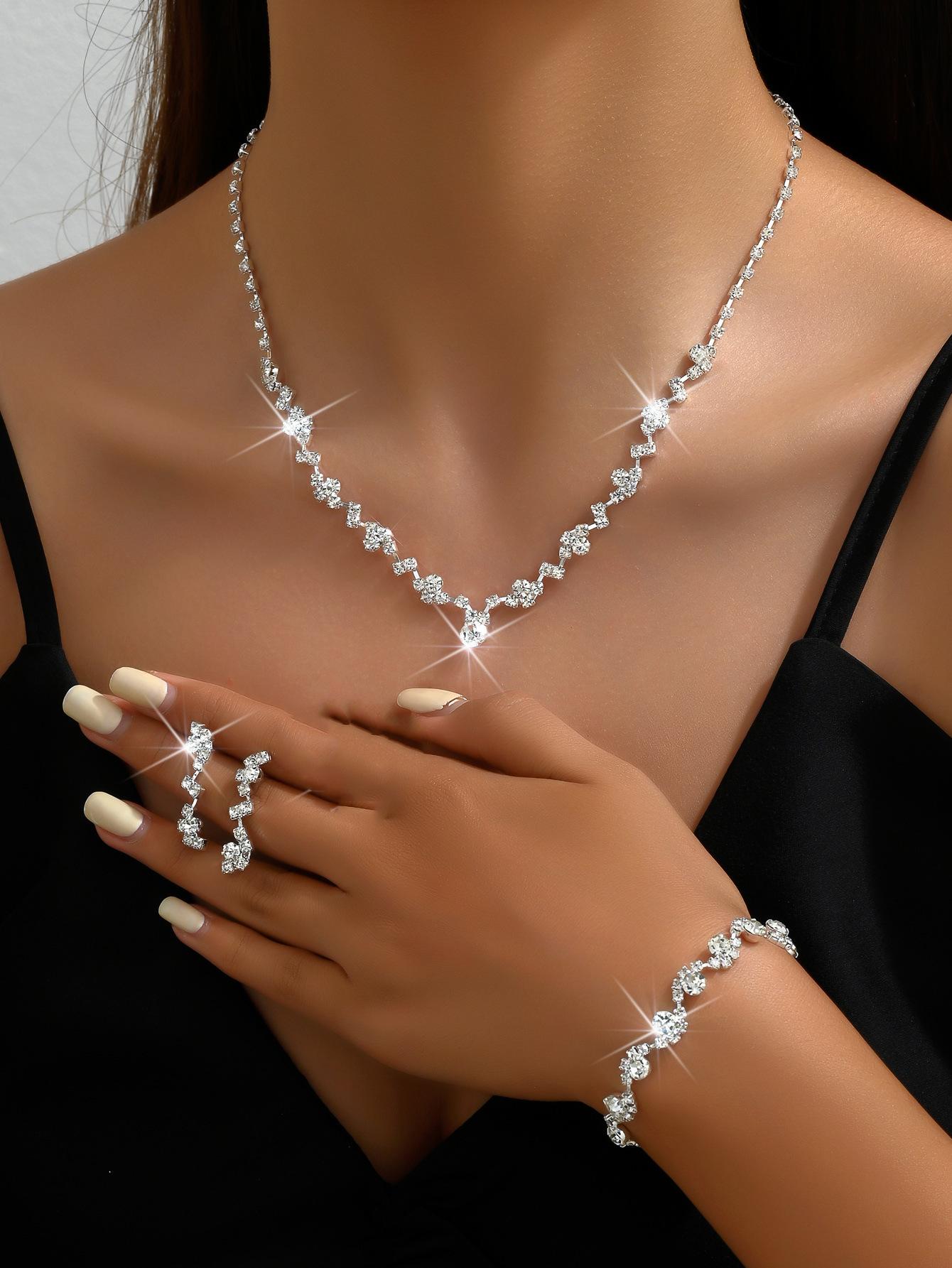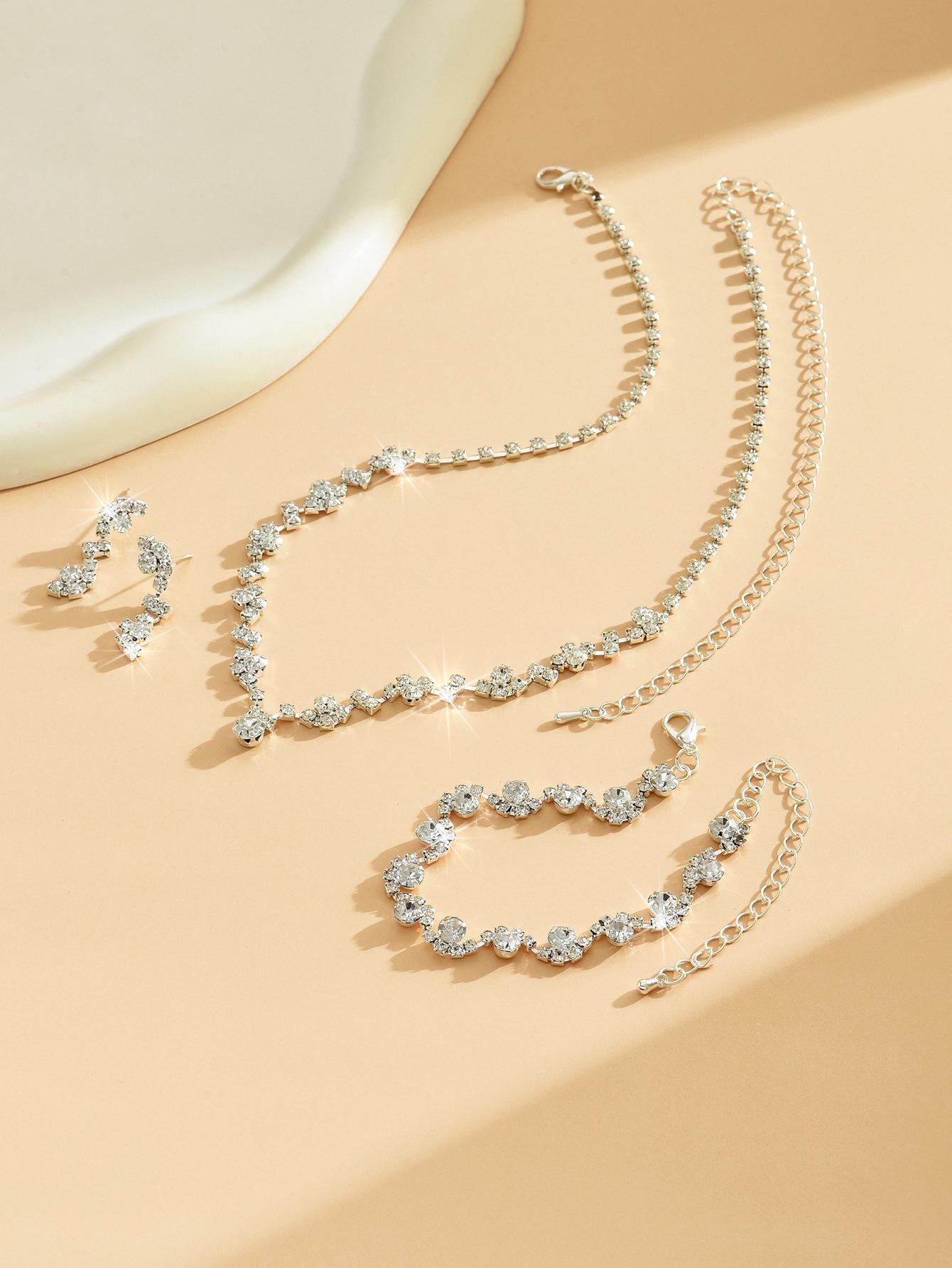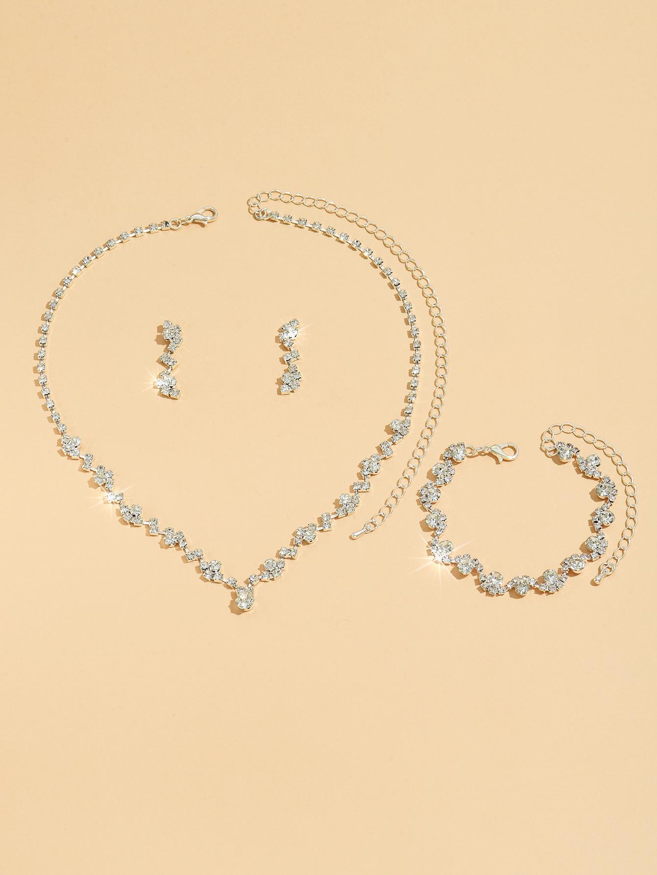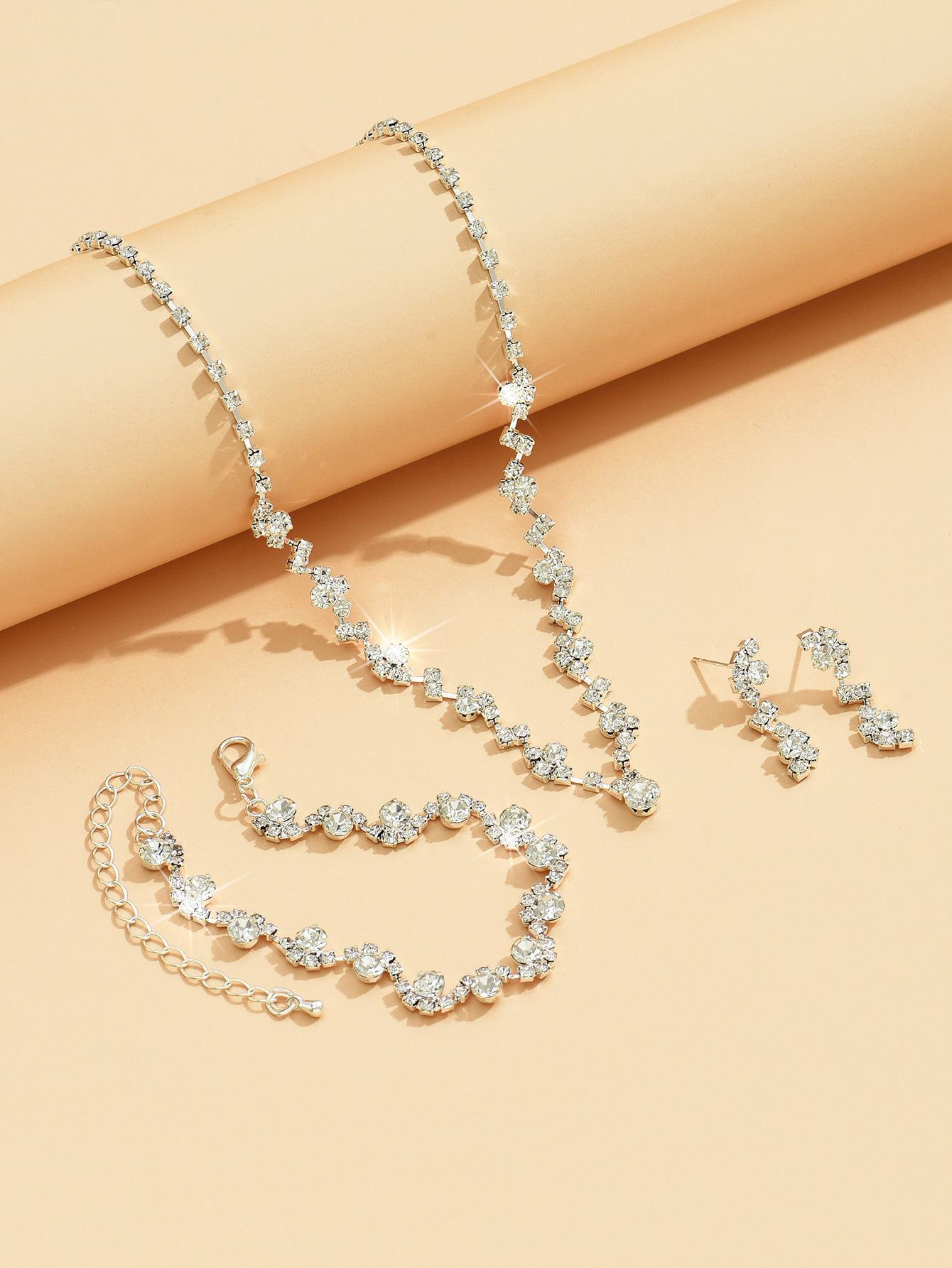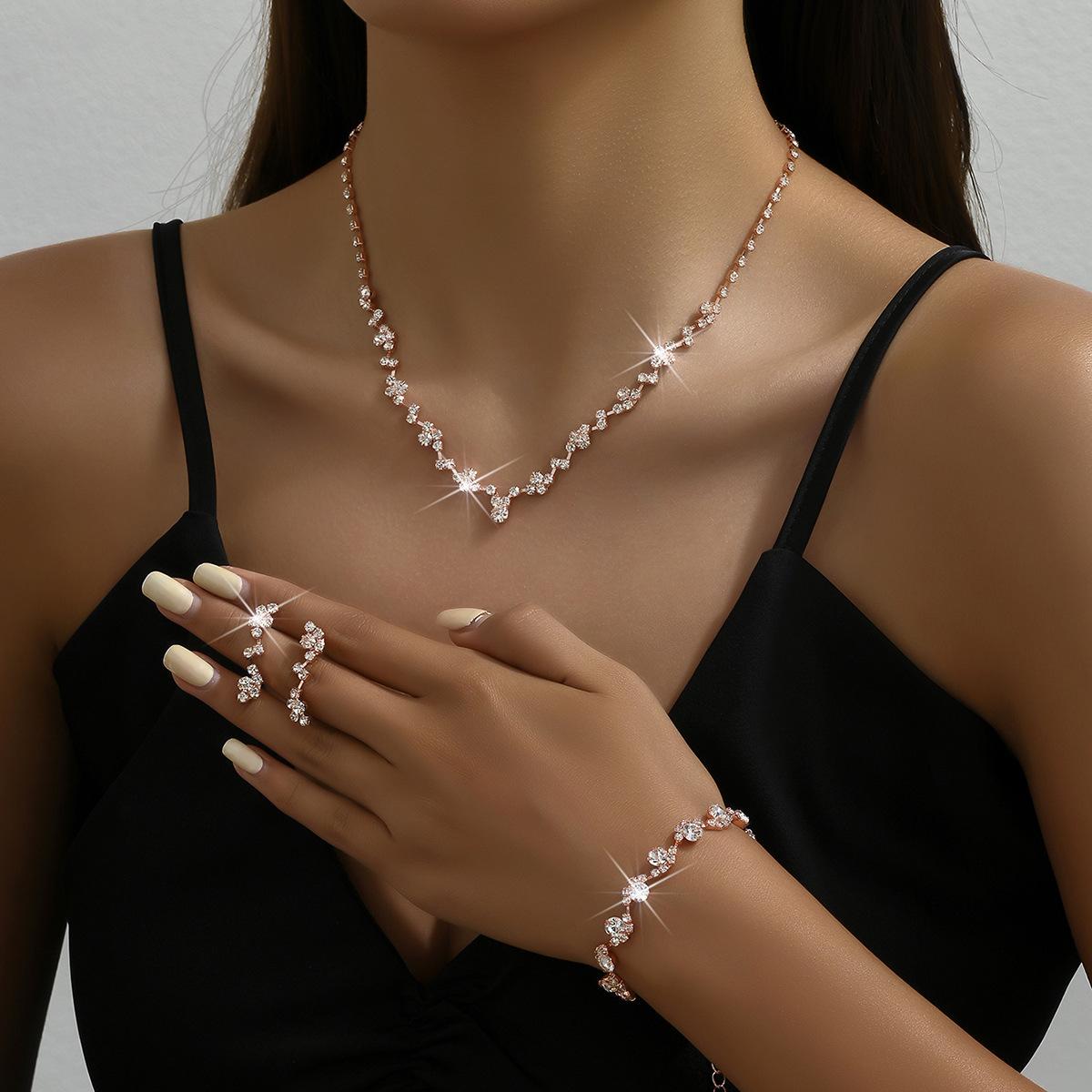 Joyería al por mayor, conjunto de collar, pendientes y pulsera de tres piezas de oro rosa, suministro transfronterizo.