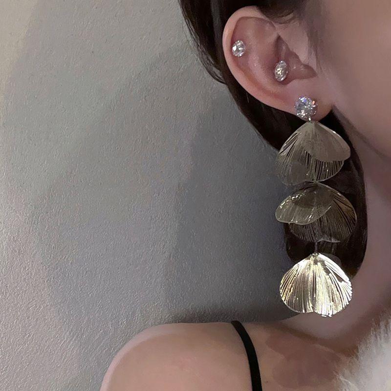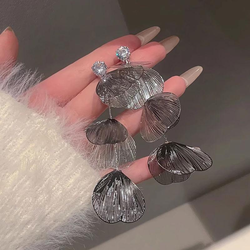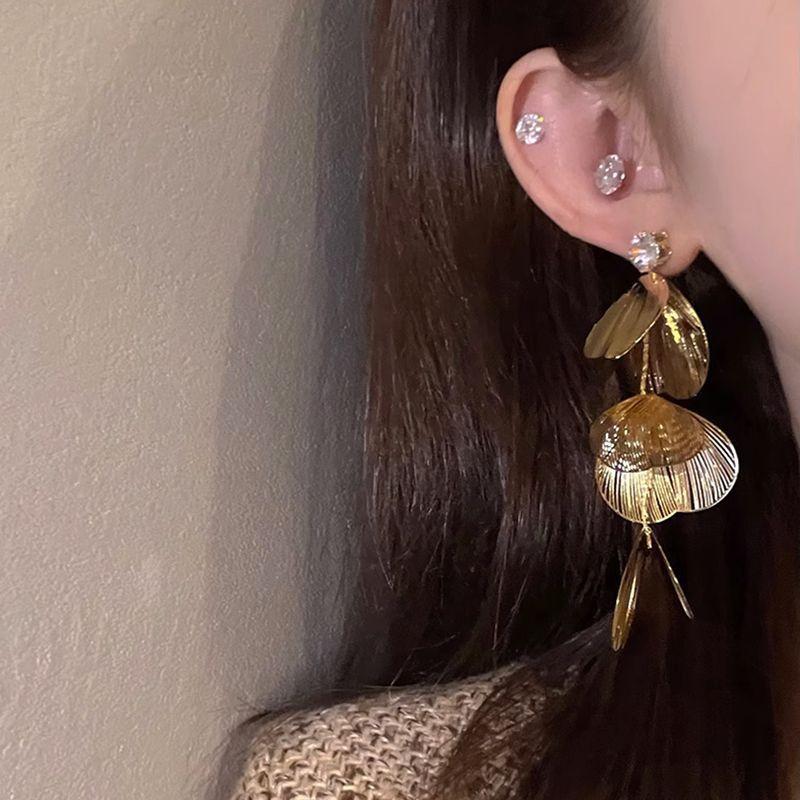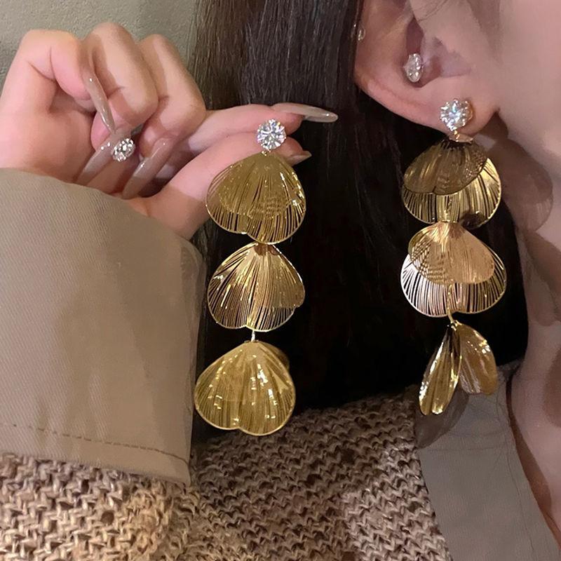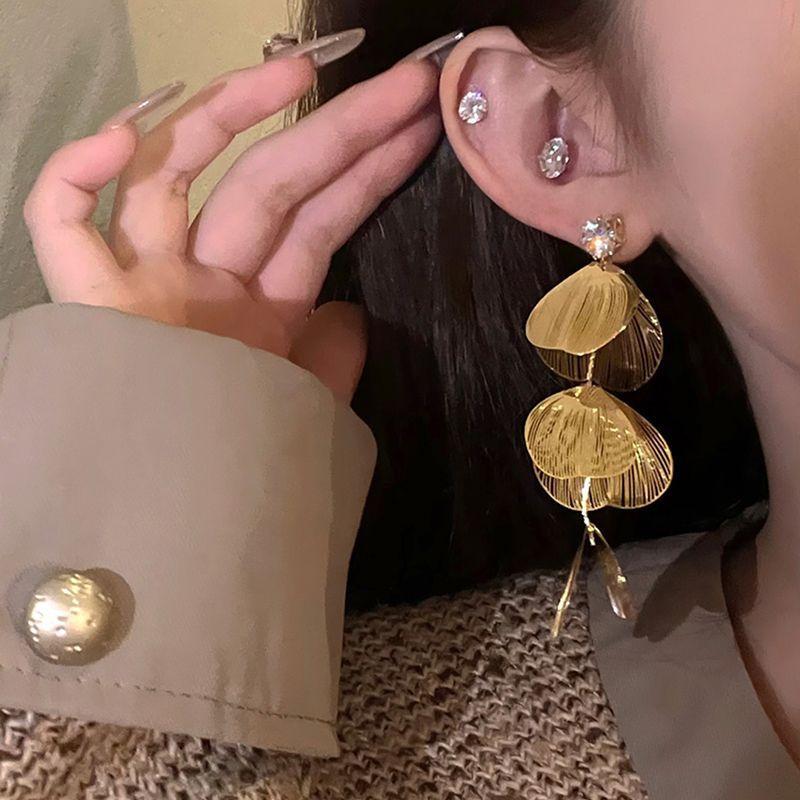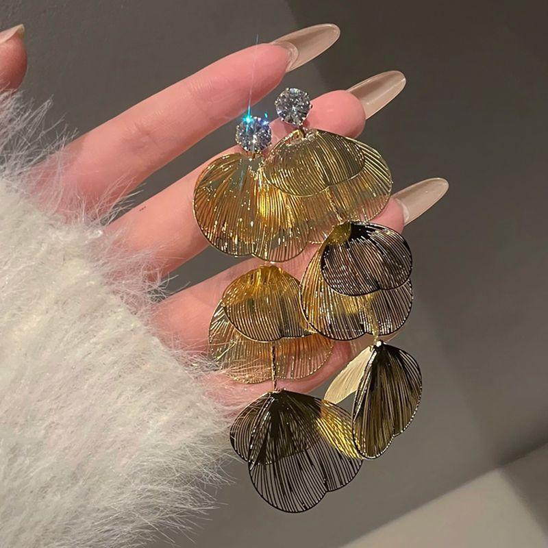 Pendientes de flores huecas con diamantes, ligeros, de lujo, de moda europea y americana, con personalidad, elegantes, pendientes largos retro de nicho.