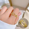 Compra [Oro Real] Anillo de Cadena de Lujo Ligero con Diamantes Completos Apertura Ajustable Joyería Simple Anillo Japonés Anillo de Pareja al por mayor en Joom.pro