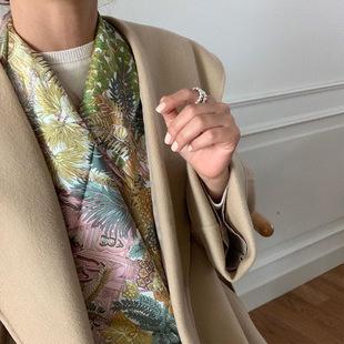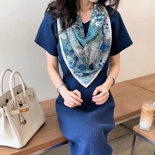 Pañuelo de seda temperamento diosa postre francés primavera y otoño nuevo seda imitada sarga seda pañuelo cuadrado chal OL doble uso