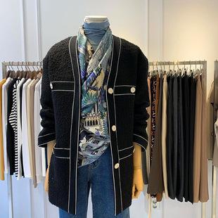 Pañuelo de seda coreano nuevo 2020 para mujer negro dorado armadura de guerrero para ir al trabajo pañuelo cuadrado grande ropa de trabajo chal versátil doble uso