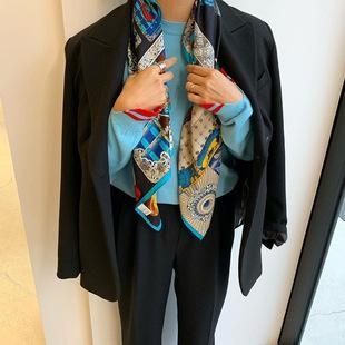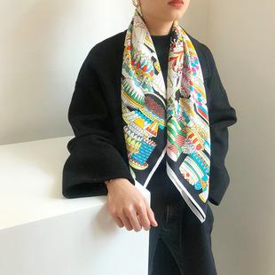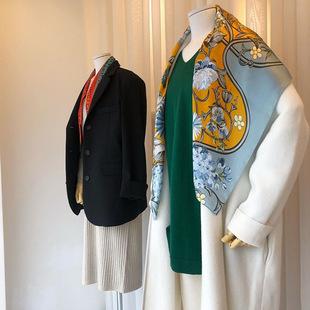 Dongdaemun nueva bufanda comercio exterior sarga seda 90*90 bufanda cuadrada grande chal temperamento floral bufanda de seda bufanda ins femenina