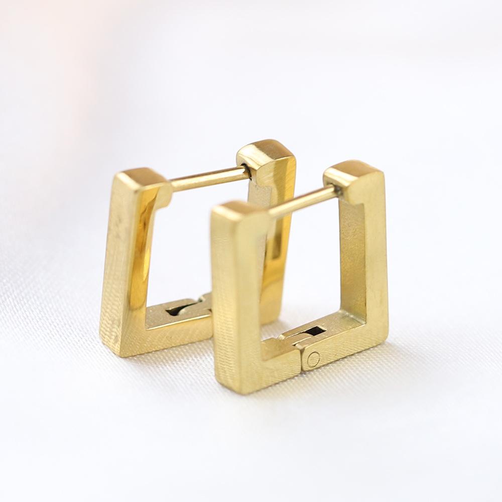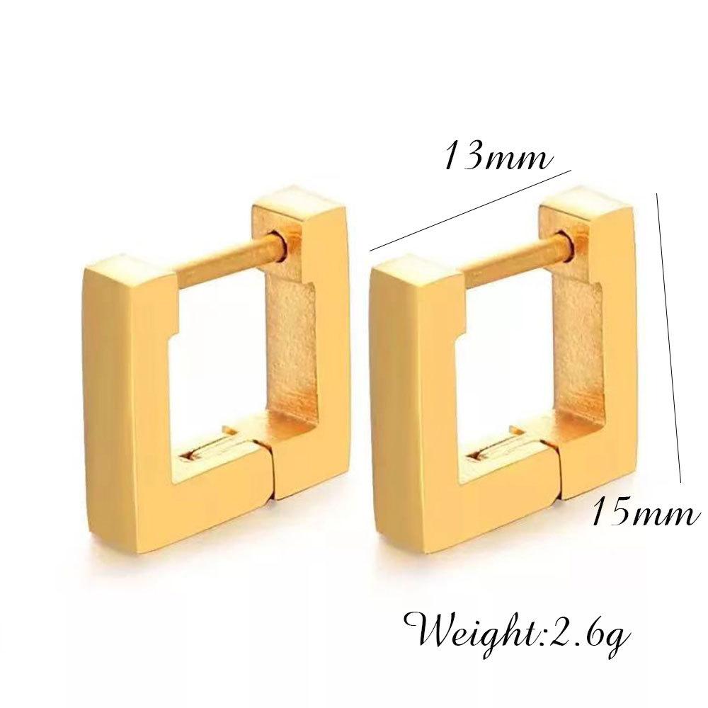Aretes Cuadrados Geométricos Simples Europeos y Americanos de 15 mm Acero Inoxidable Moda Versátil Acero Titanio Aretes para Pareja Hebillas Creativas para Oreja