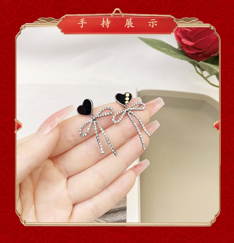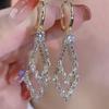 Pendientes largos de estilo frío elegantes y combinables con todo, de alta gama, con forma de gota de diamante y lazo para mujer