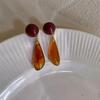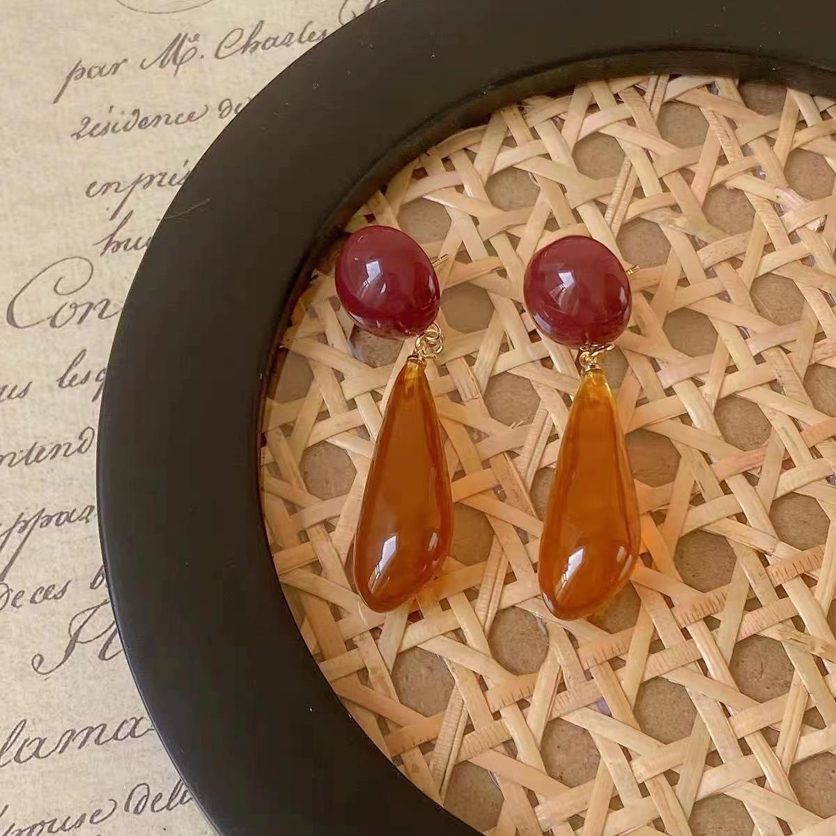 Pendientes retro franceses con forma de gota de aceite de color vino tinto y aguja de plata 925, pendientes de cinco piezas con personalidad sencilla y temperamento moderno para dama.