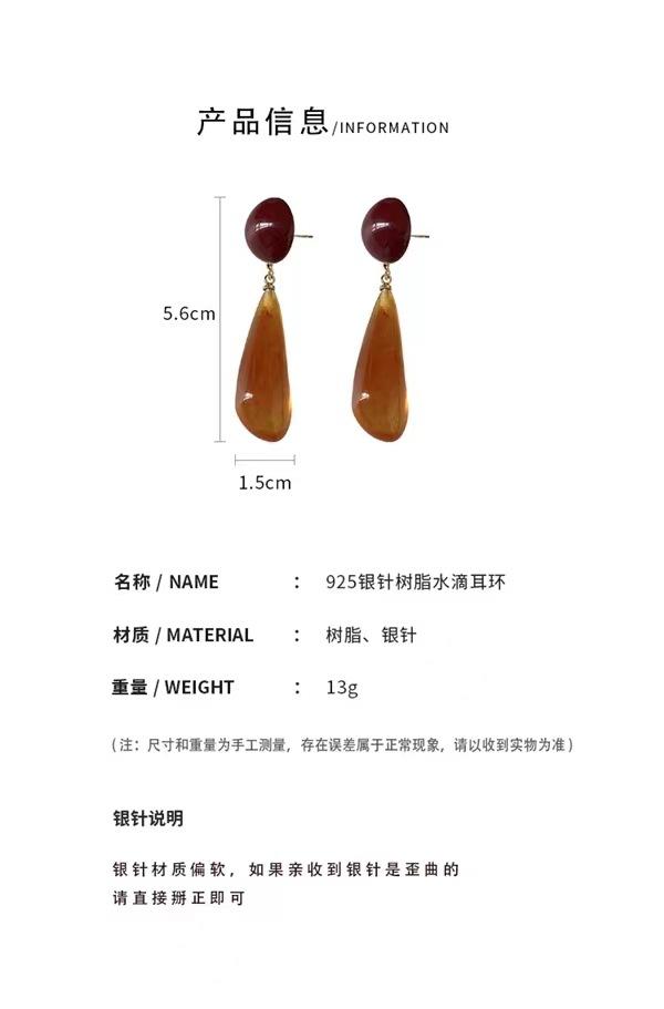Nuevos Pendientes Colgantes de Resina de Otoño e Invierno con Aguja de Plata S925, Moda Coreana, Simples, Nicho, Elegantes, Retro