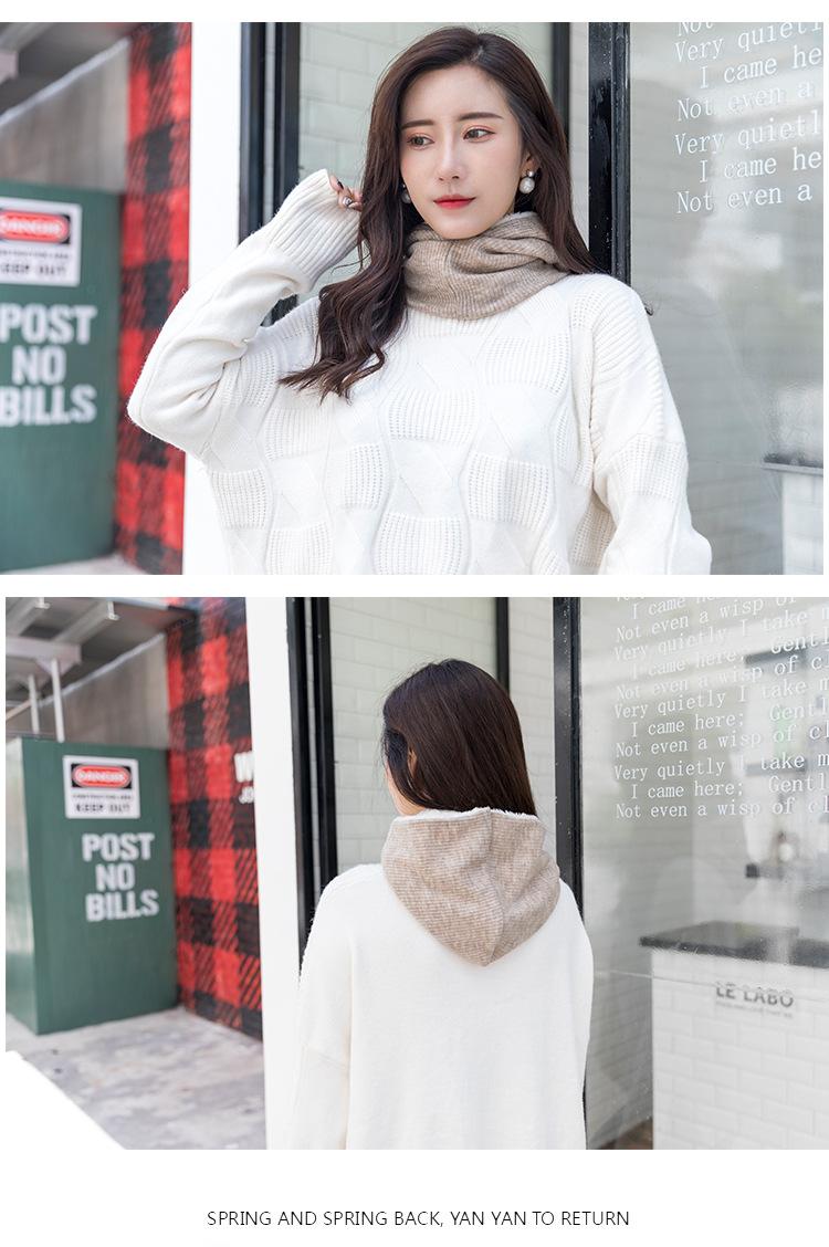 En stock, bufanda de otoño e invierno, jersey cálido para exteriores, moda para parejas, gorro de cuello, bufanda con capucha y forro polar monocromático, con borde cruzado