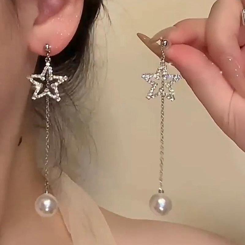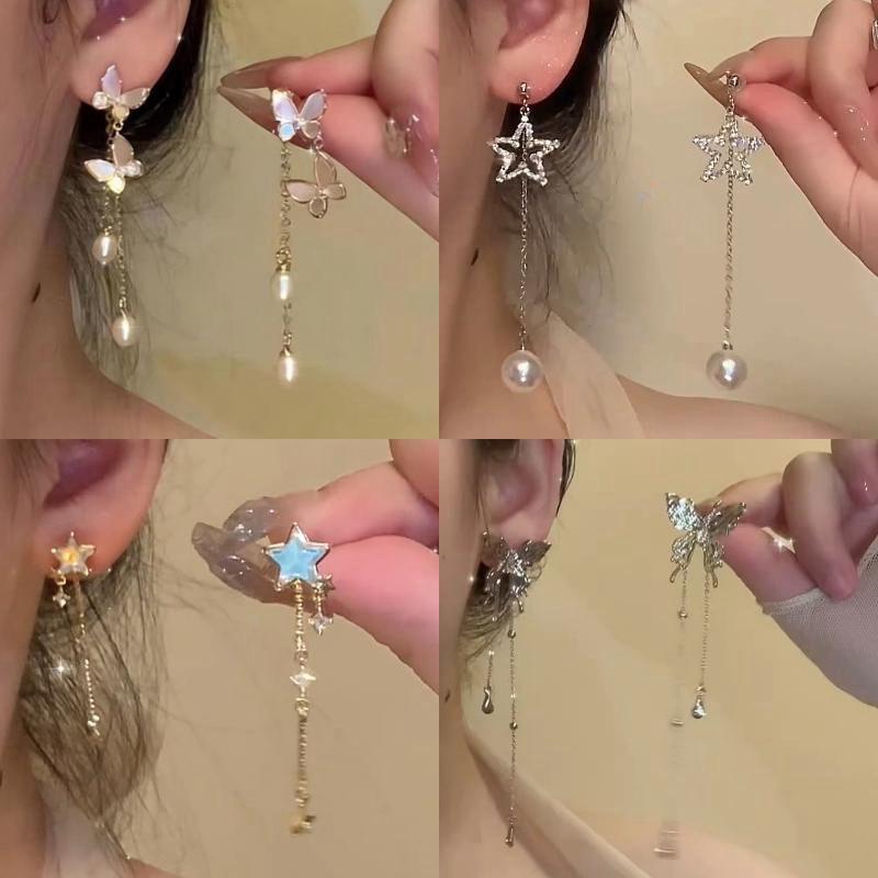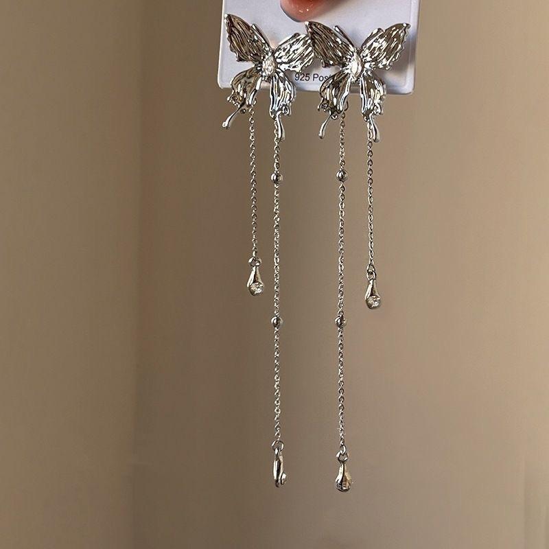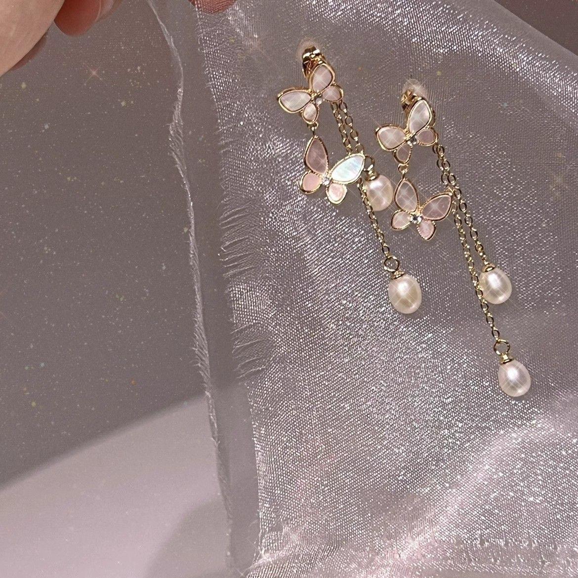 Pendientes largos con borlas de mariposa y perlas de Super Hada, ligeros, de lujo, con temperamento adelgazante, nuevo estilo 2023, pendientes de estilo frío que combinan con todo para mujer