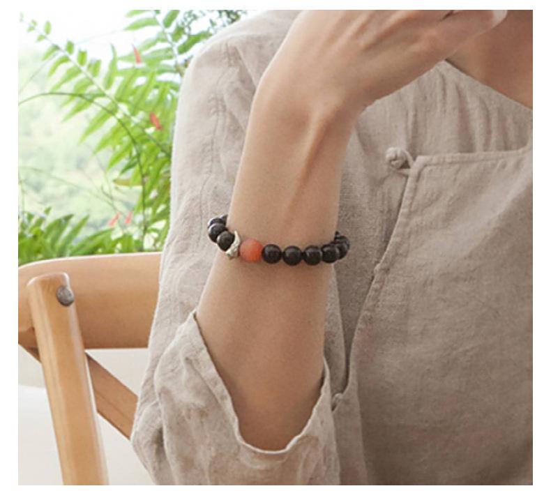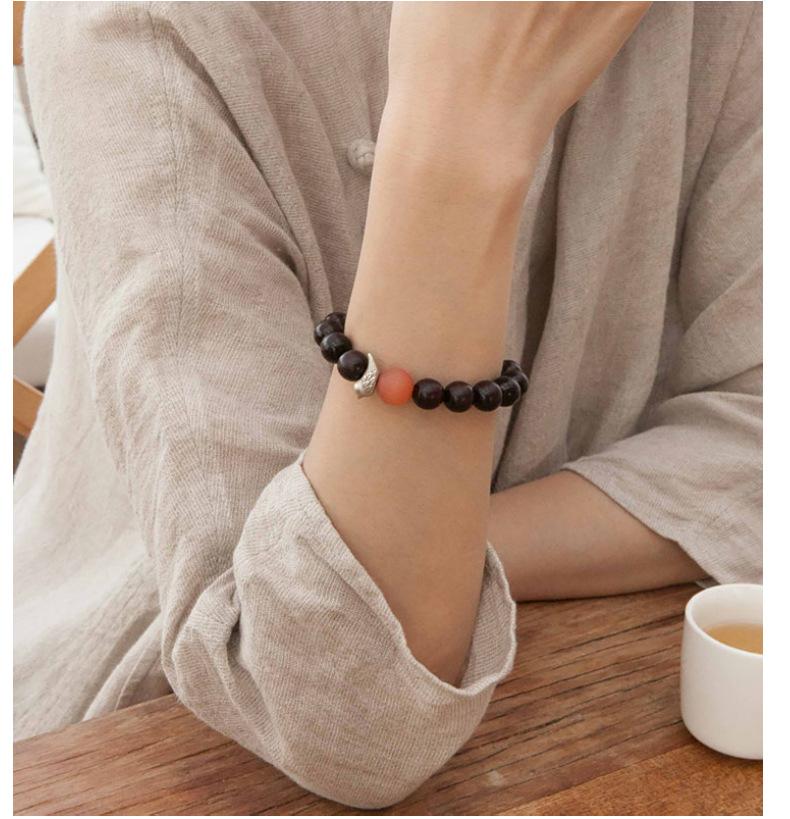 Pulsera de oro indio antiguo natural de estrella de hoja pequeña de palo de rosa de 10 mm, anillo único, vidrio ojo de gato, pulsera de temperamento artístico retro