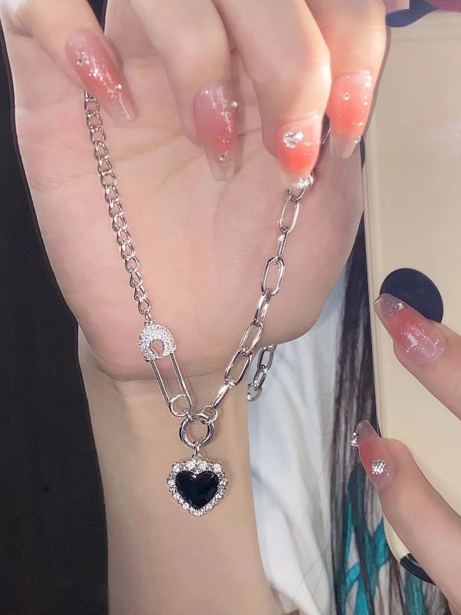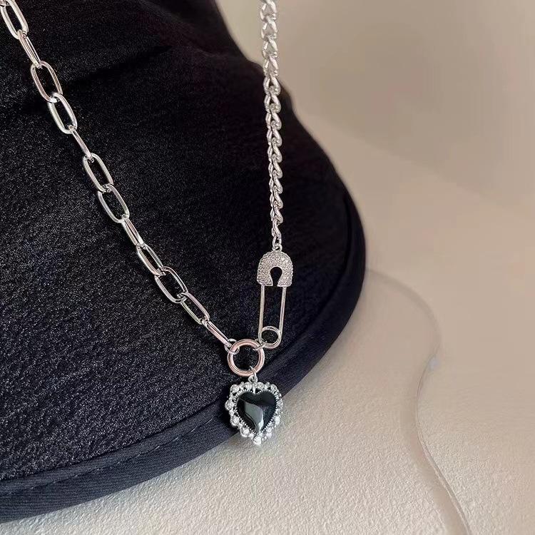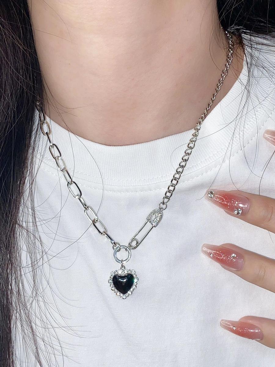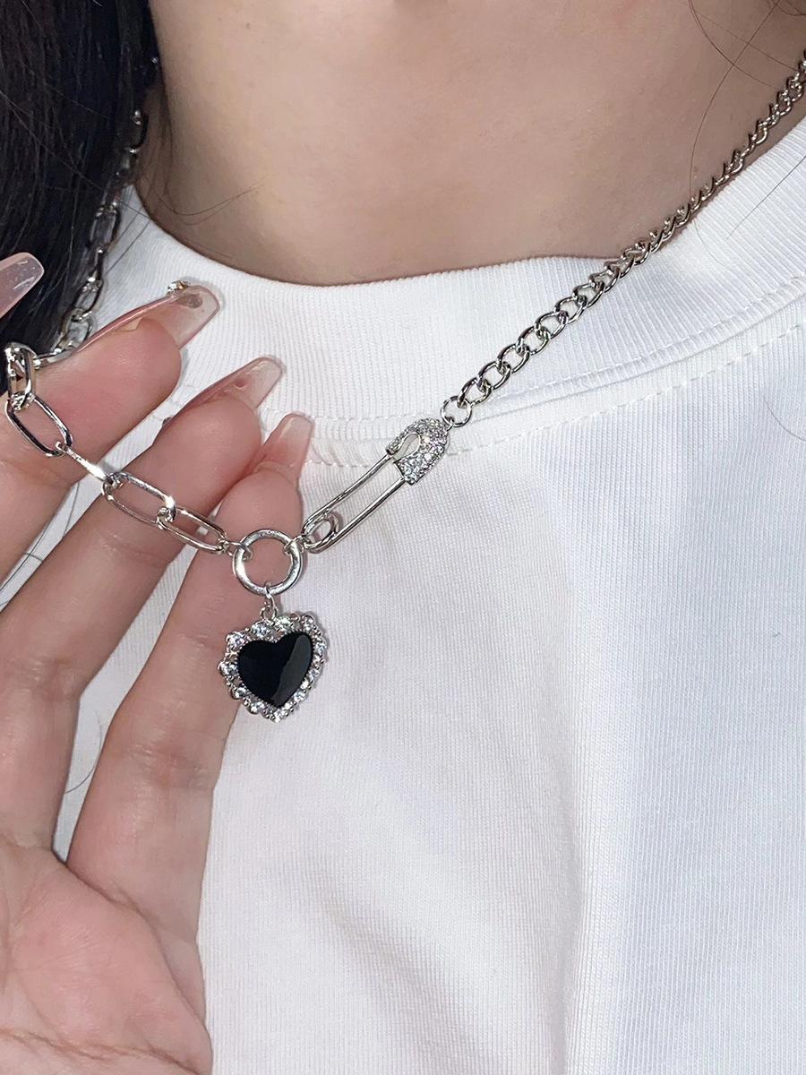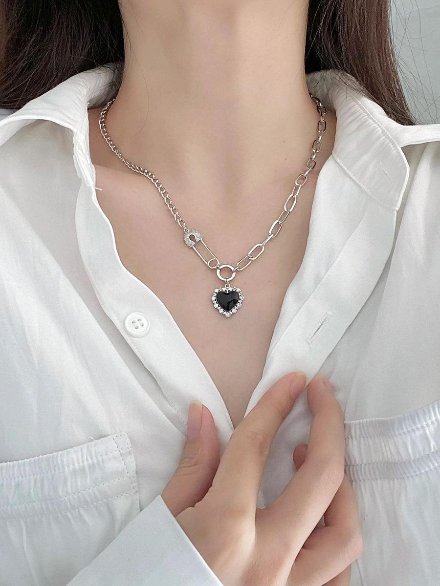 Collar Retro Negro Amor para Mujer Estilo Trendy Dulce Cool Chica Caliente Decorativo Cadena Clavícula Corazón Accesorios Colgante