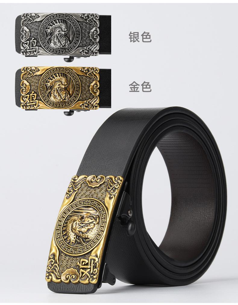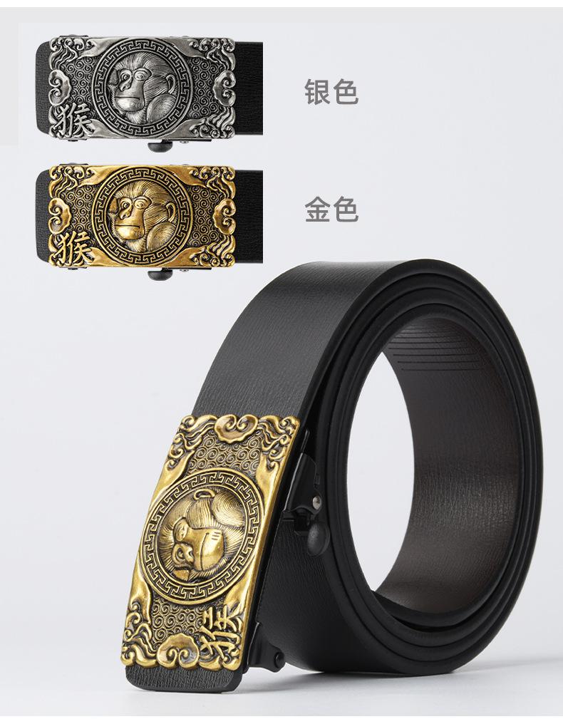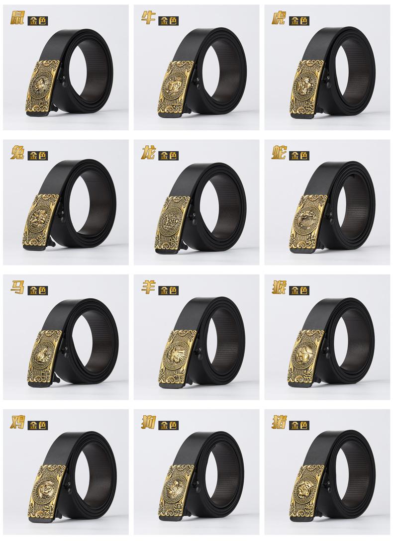 Cinturón de piel de vaca retro del zodiaco para hombre, cinturón con hebilla automática para hombre, clásico de fábrica en stock, venta al por mayor