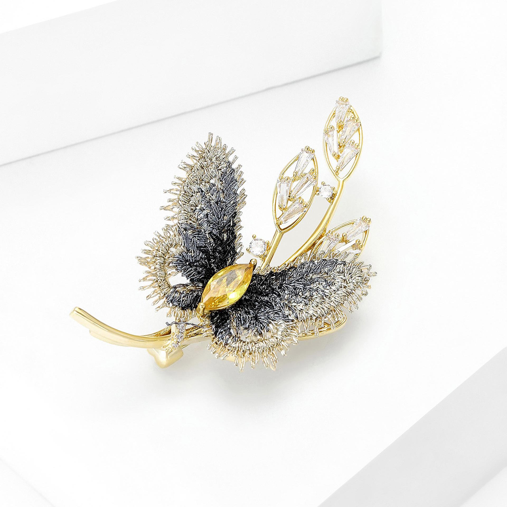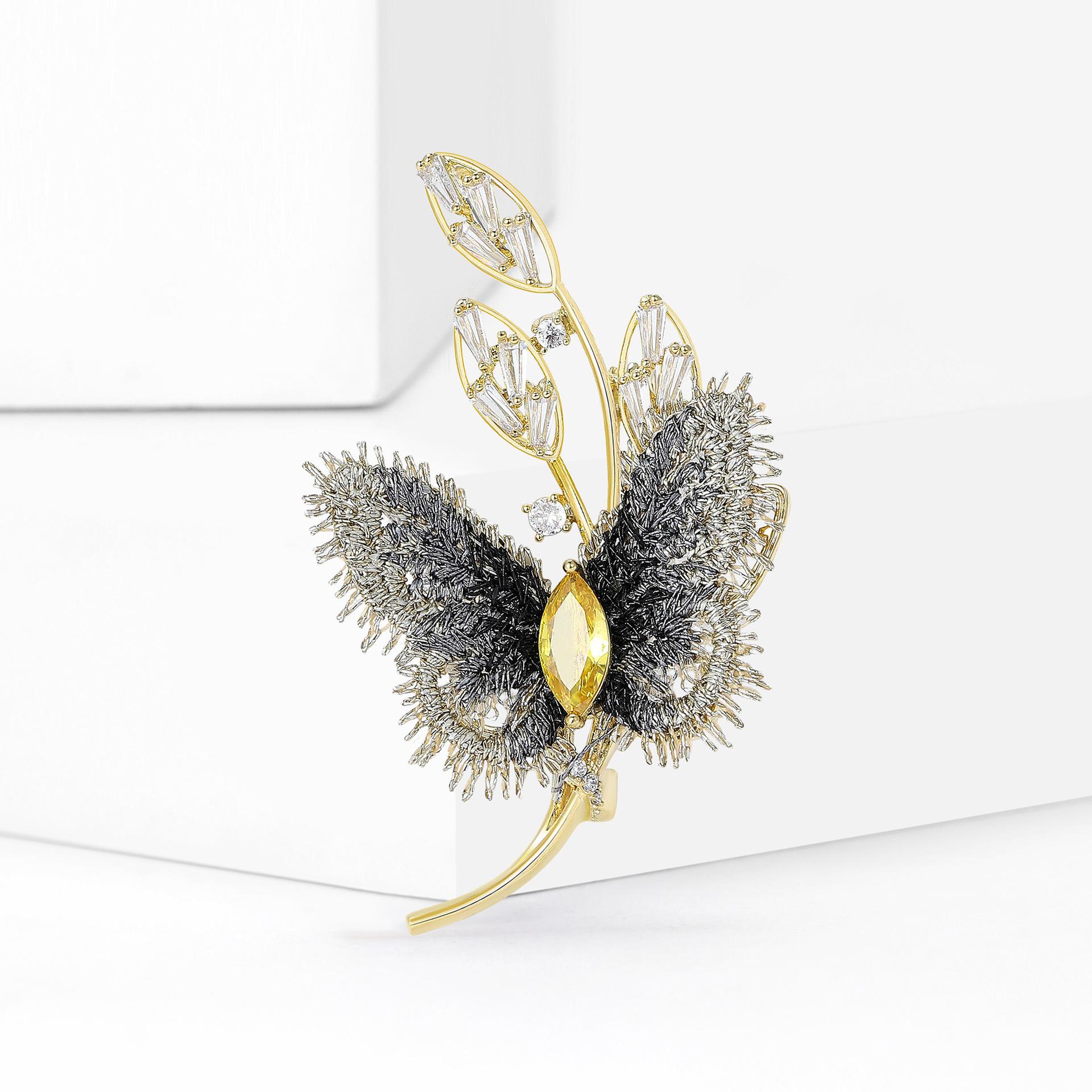Temperamento Japonés y Coreano ins Elegante Tela Bordada Broche de Mariposa de Zircón Moda Vestido de Dama Vestido Alfiler de Joyería