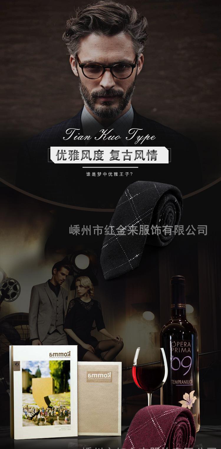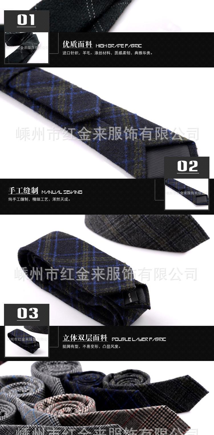 Shaoxing Shengzhou Tie Comercio Exterior Transfronterizo Accesorios de Moda para Hombre Casual de Negocios a Cuadros Gris Oscuro Corbata de Lana Coreana